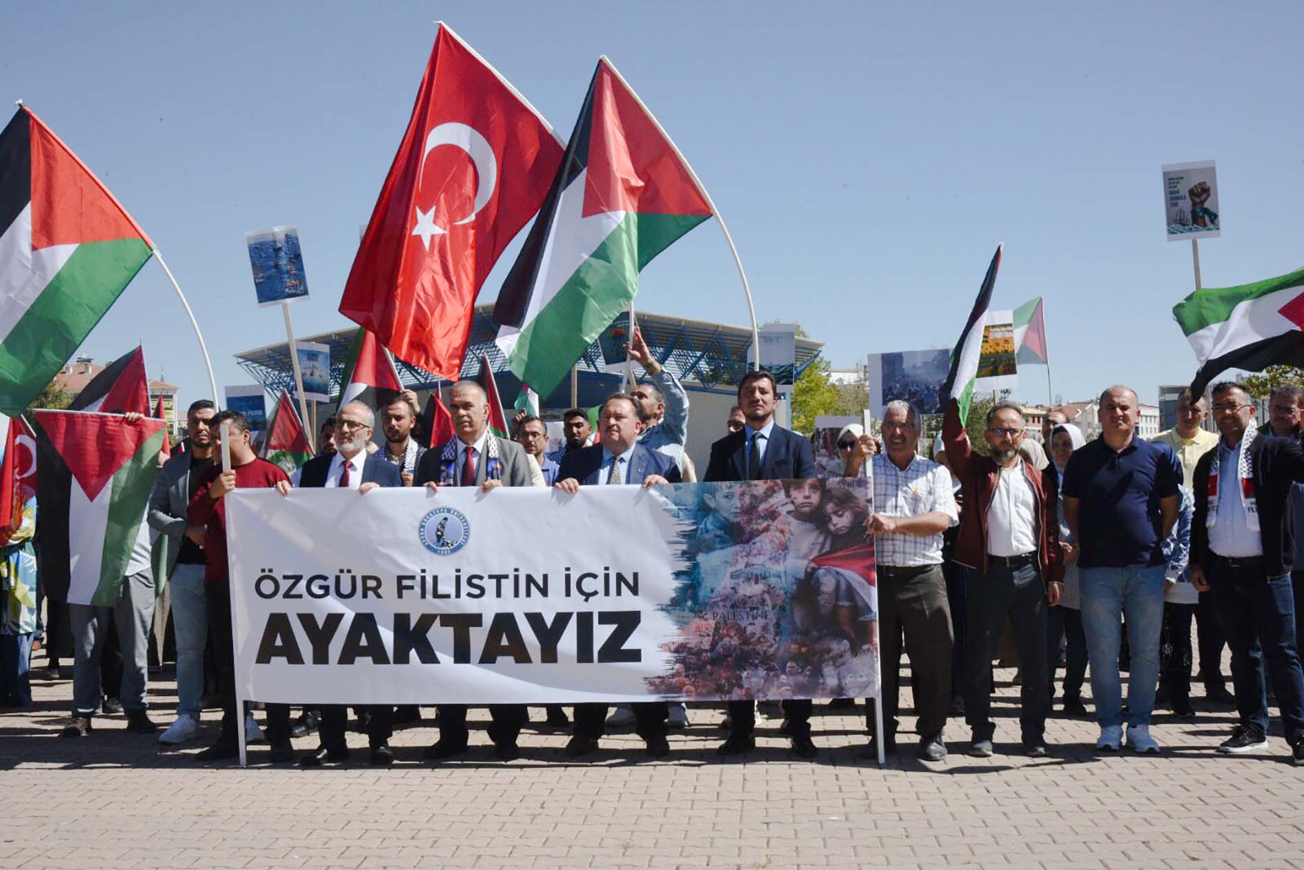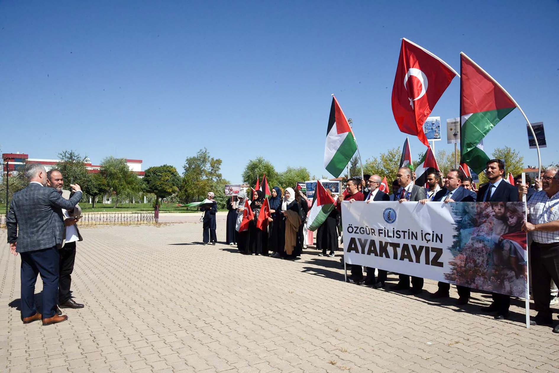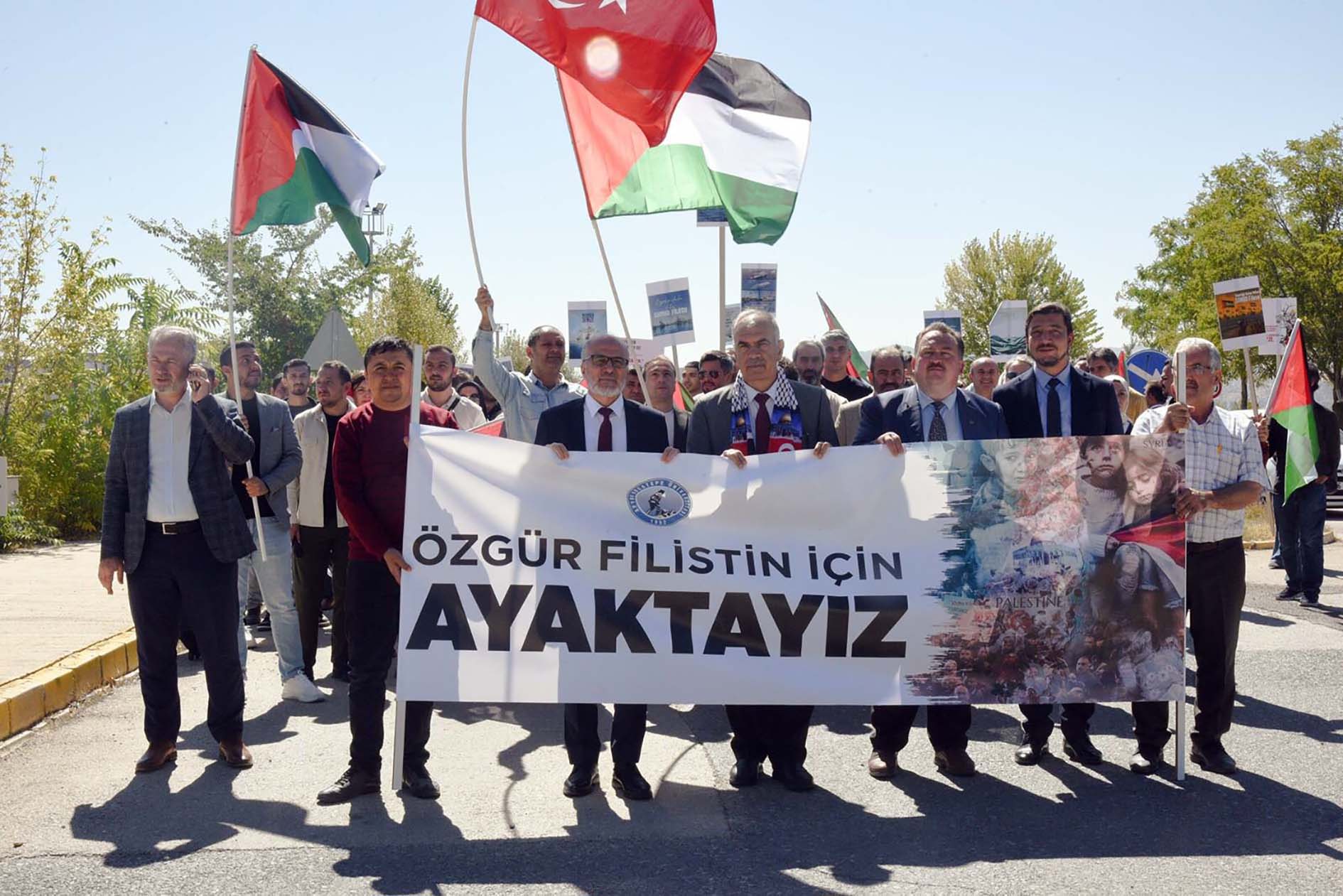 Afyon Kocatepe Üniversitesi (AKÜ) akademik ve idari personeli ile öğrencileri, İsrail’in Gazze’ye yönelik saldırılarını protesto etmek ve Küresel Sumud Filosu’na destek vermek amacıyla eğitim-öğretim yılının ikinci gününde de yürüyüşlerine devam etti.