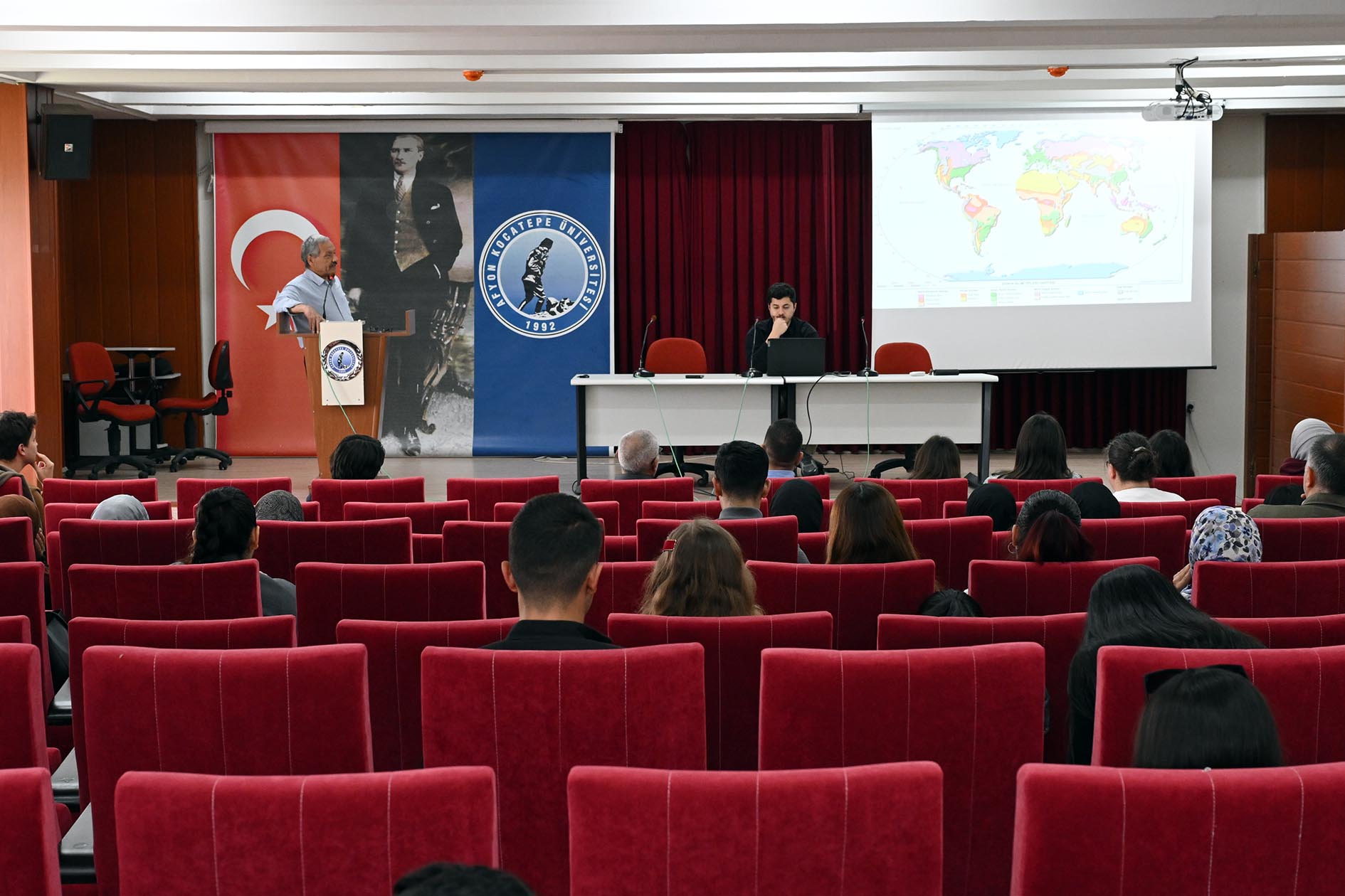 Erdal Akar Konferans Salonunda düzenlenen, Fen Edebiyat Fakültesi Coğrafya Bölüm Başkanı Prof. Dr. Mehmet Ali Özdemir, Fen Edebiyat Fakültesi Coğrafya Bölümü Öğretim Üyesi Prof. Dr. Fatma Kafalı Yılmaz ve Fen Edebiyat Fakültesi Coğrafya Bölümü Dr. Öğretim Üyesi Okan Bozyurt’un konuşmacı olarak yer aldığı seminere; Fen Edebiyat Fakültesi Dekan Yardımcısı Dr. Öğretim Üyesi Hülya Kaymak, akademik ve idari personel ile öğrenciler katıldı.