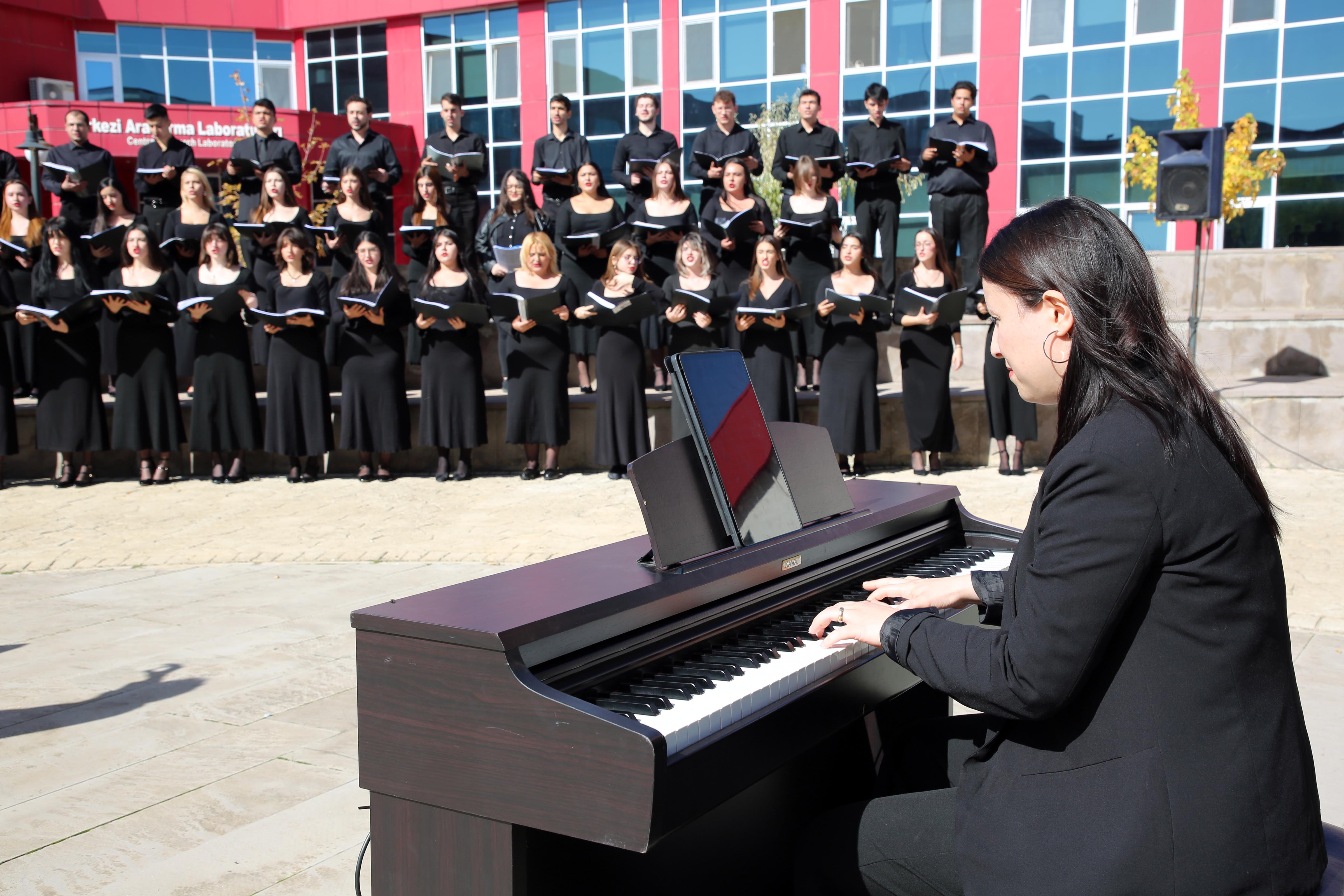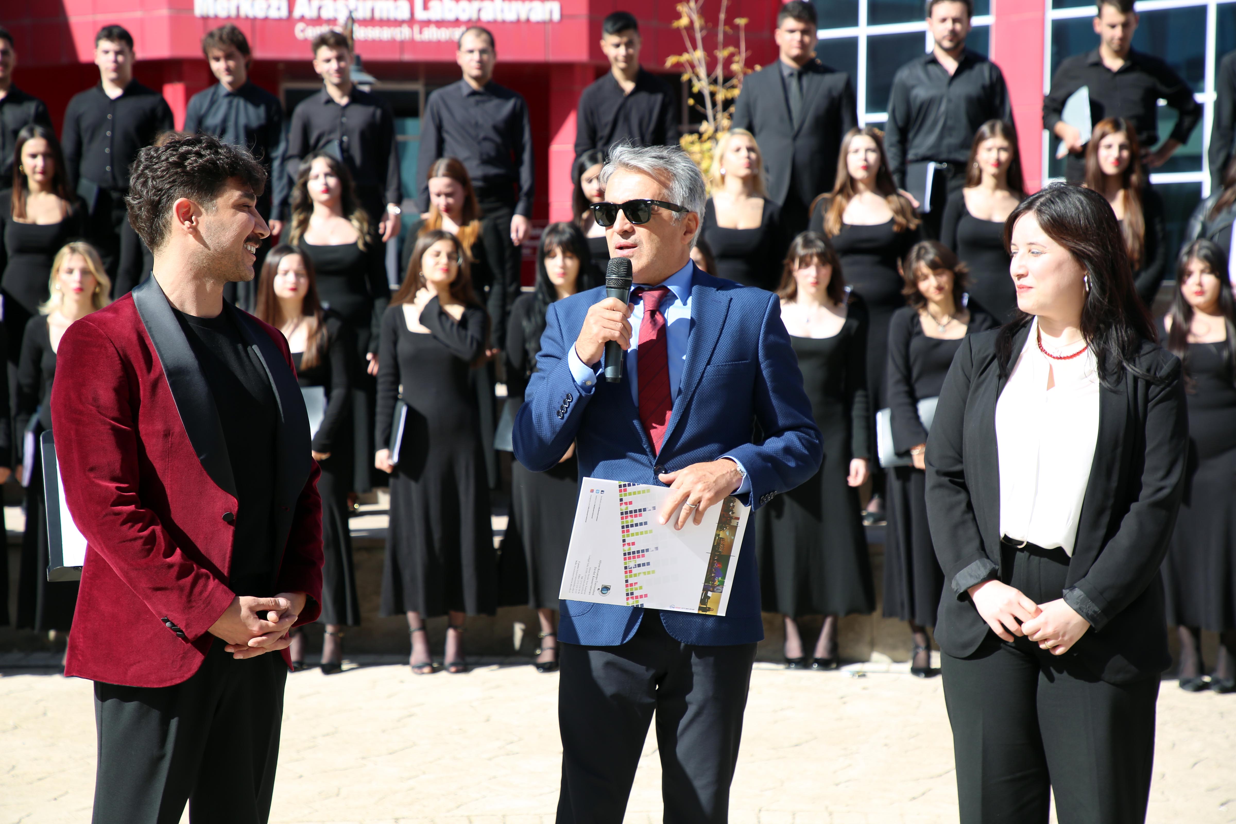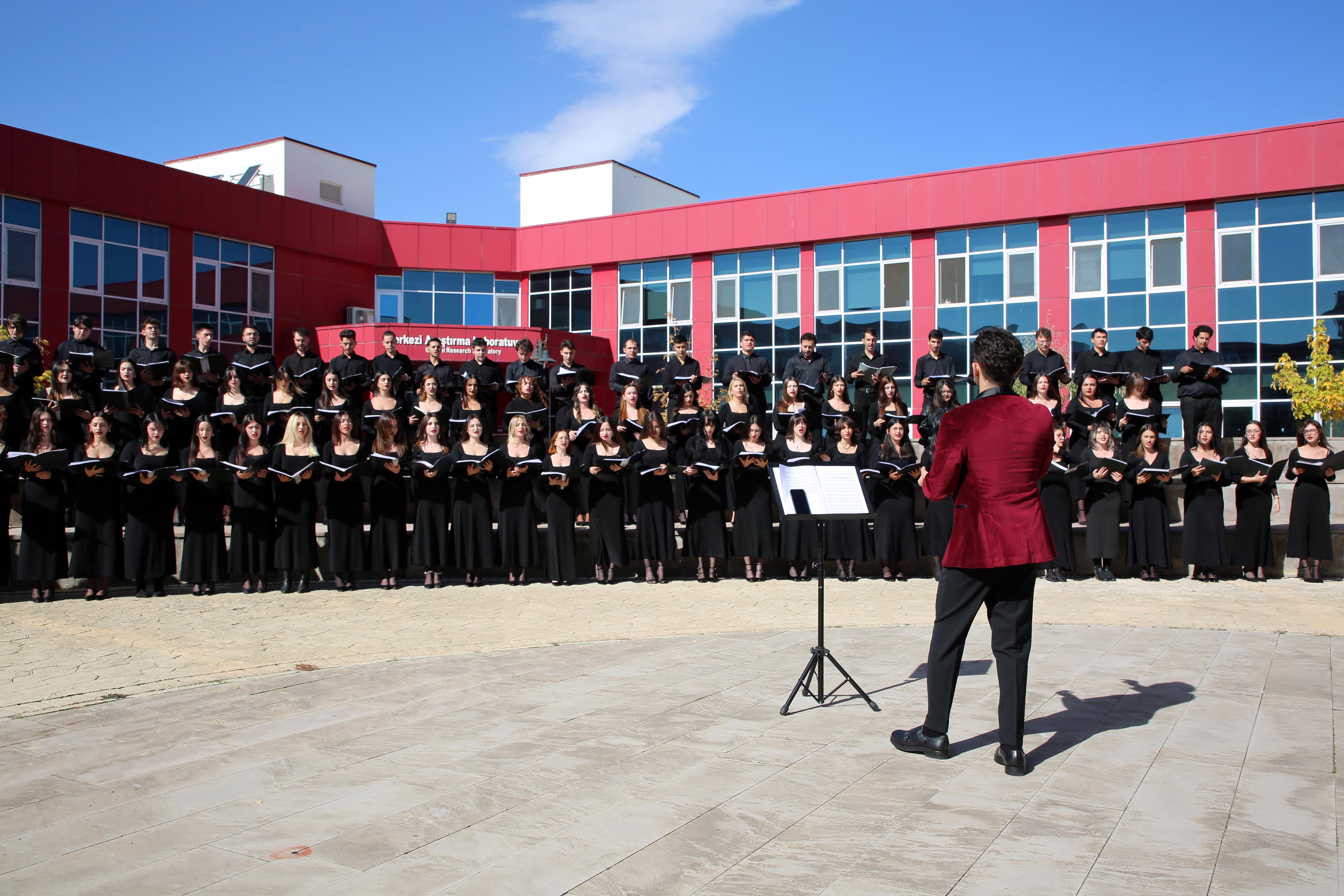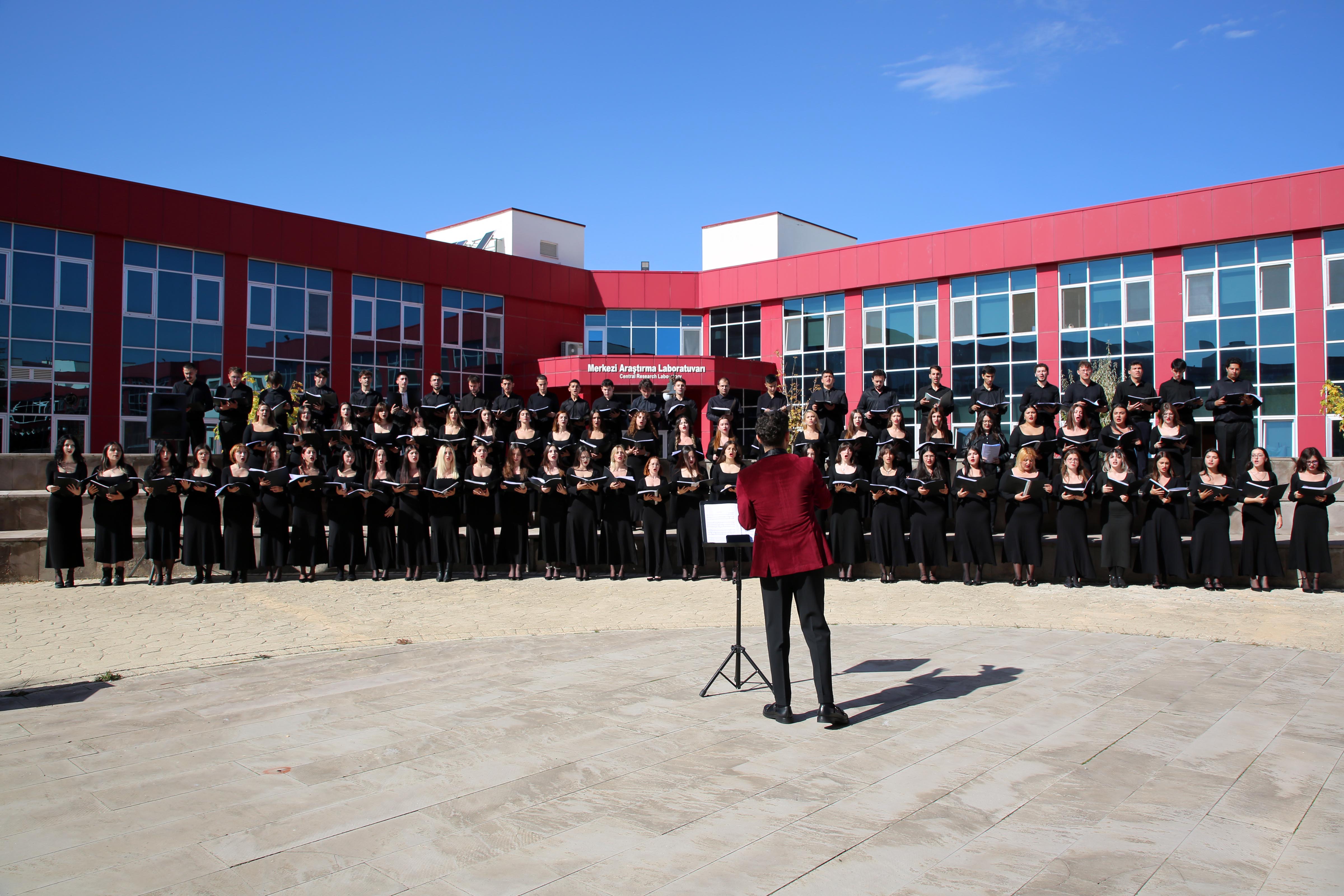 Etkinlik, Gazi Mustafa Kemal Atatürk, aziz şehitler ve ebediyete irtihal eden bilim insanları anısına yapılan saygı duruşu ve İstiklal Marşı’nın okunmasıyla başladı. Ardından, Şef Öğr. Gör. Kerem Aksen yönetiminde ve Korrepetitör Öğr. Gör. Aysel Gökçe Eryılmaz eşliğinde sahne alan koro, özenle hazırlanan repertuvarıyla dinleyicilere unutulmaz bir müzik ziyafeti sundu.