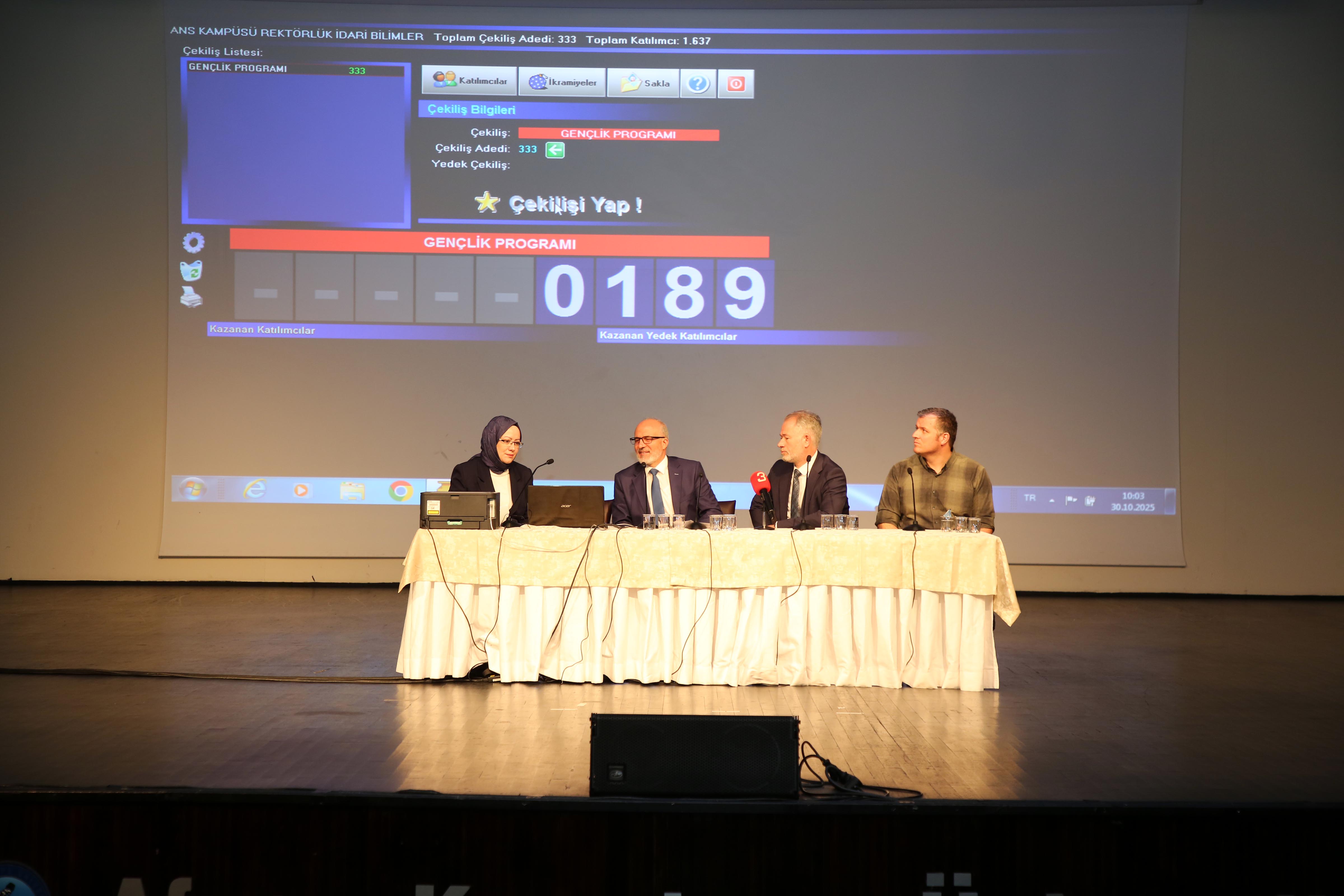 AKÜ birimlerinde görev almak için 22-26 Ekim 2025 tarihleri arasında başvuru yapan toplam 4 bin 170 öğrenci arasından 1032 öğrencinin ismini belirlemek için yapılan kura, noter huzurunda elektronik kura yöntemiyle gerçekleştirildi.