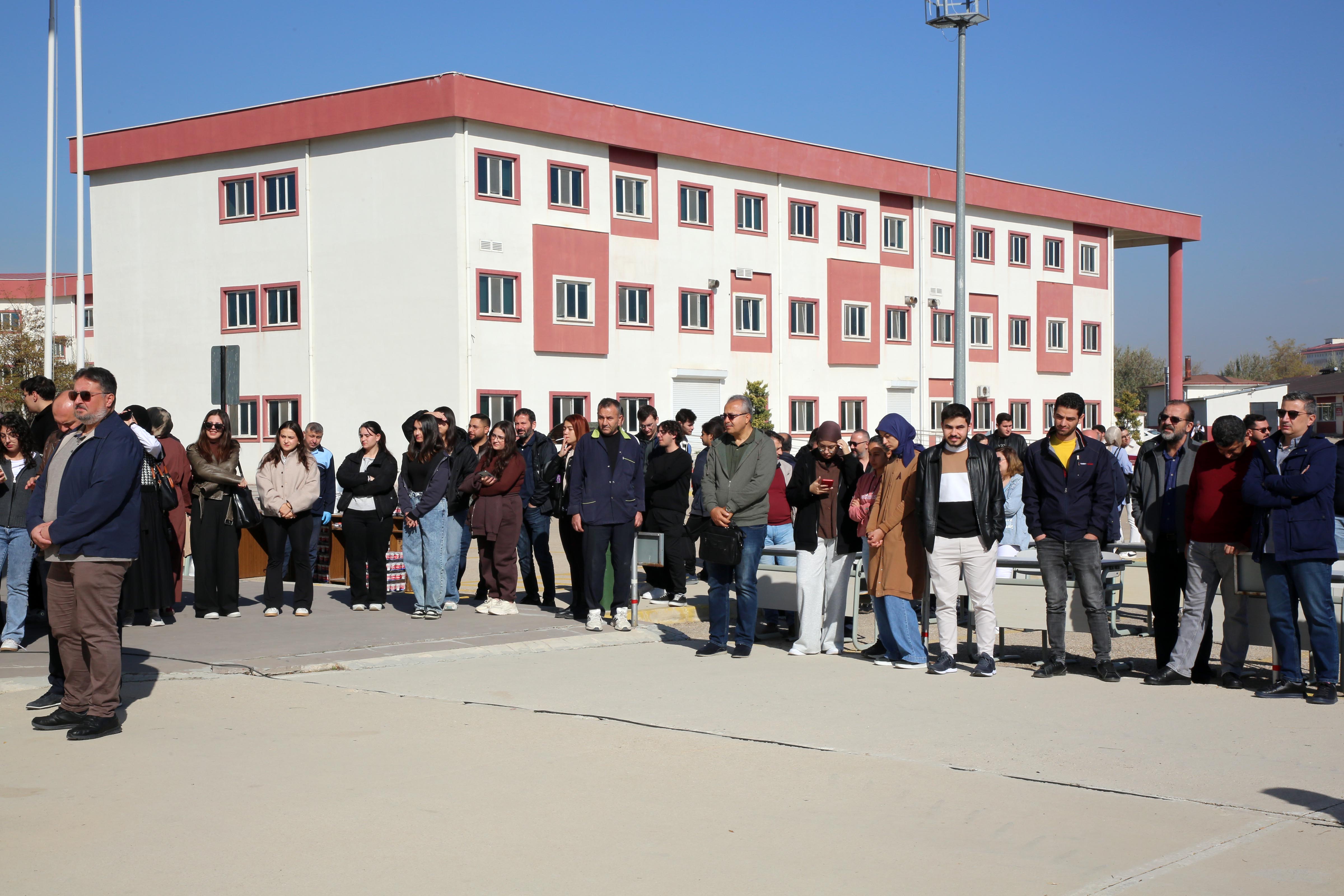Mühendislik Fakültesi önünde gerçekleştirilen etkinliğe Mühendislik Fakültesi Dekanı Prof. Dr. İsmail Zorluer, Dekan Yardımcıları Doç. Dr. Said Mahmut Çınar ve Dr. Öğretim Üyesi Sadık Kağa, bölüm başkanları, akademik ve idari personel ile öğrenciler katıldı.