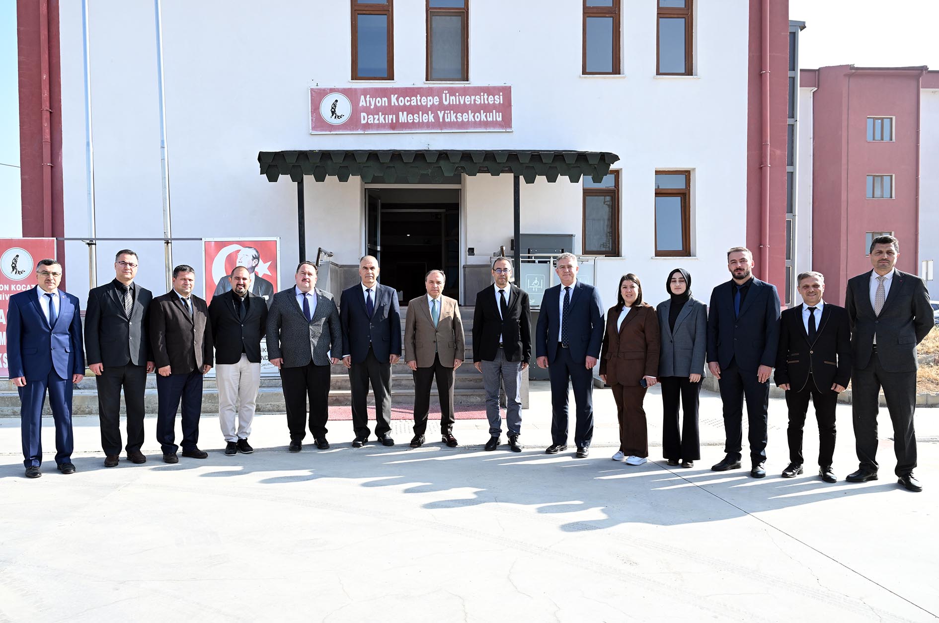 Rektör Karakaş ve beraberindeki heyet, Dazkırı Kaymakamlığı ile Dazkırı Belediyesini ziyaret ettikten sonra Dazkırı MYO’da görev yapan akademisyenler ve öğrencilerle bir araya geldi. Ziyarette, Dazkırı MYO Müdürü Prof. Dr. Cahit Gürer tarafından okulun fiziki altyapısı, eğitim-öğretim süreçleri, toplumsal katkı faaliyetleri ve ihtiyaçları hakkında bilgi verildi. Karakaş, Dazkırı MYO akademik personeli ile bir araya geldiği toplantıda şu değerlendirmelerde bulundu: