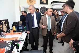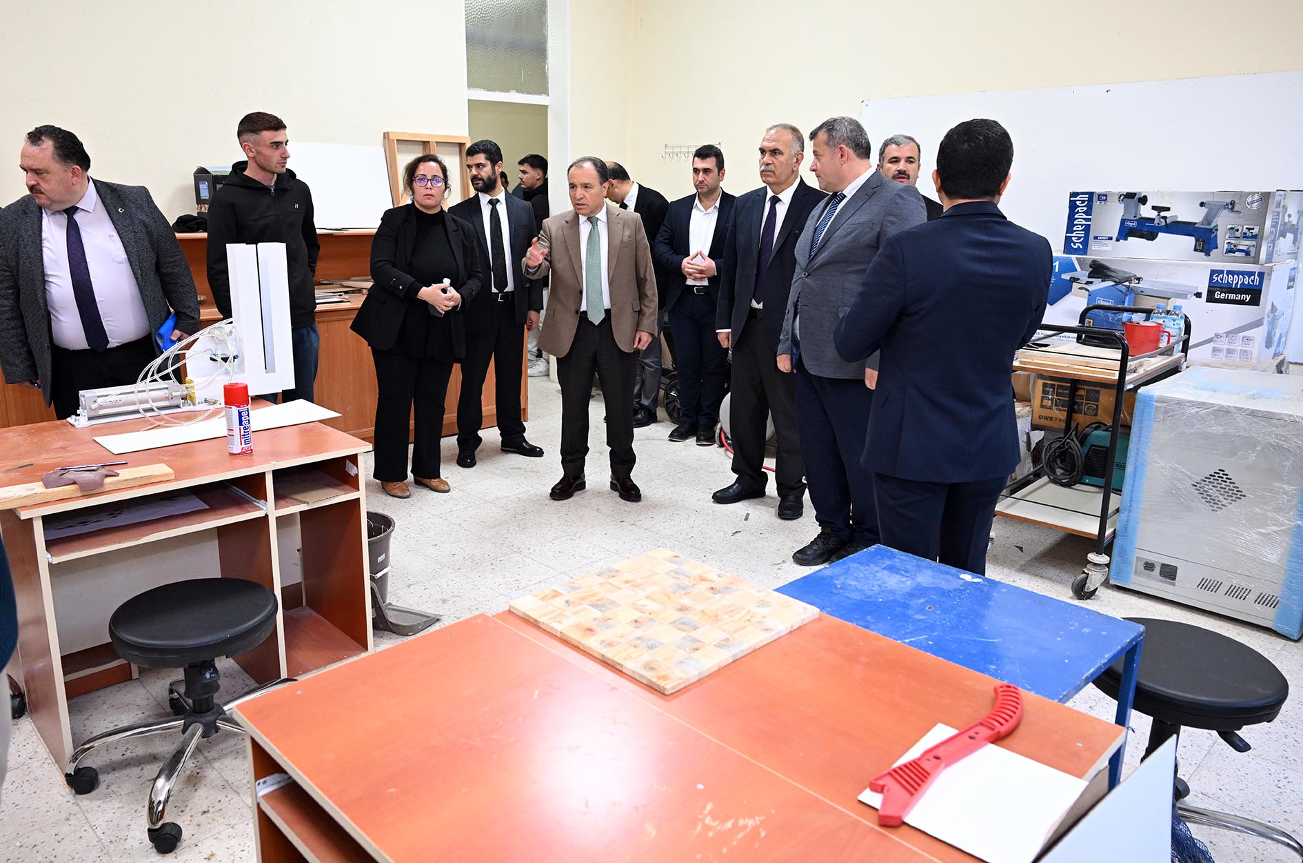 Rektör Karakaş ve beraberindeki heyet, Dinar UBYO ve Dinar MYO ziyaretlerinde Moda Tasarım ve Üretim Atölyesi, Desen-Tasarım Laboratuvarı, Bilgisayar Laboratuvarı ile Endüstriyel Tasarım Bölümü Laboratuvarını yerinde inceledi ve Dinar UBYO Müdürü Doç. Dr. Serkan Göksu ile Dinar MYO Müdürü Doç. Dr. İsmail Ciğerci’den bilgiler aldı.