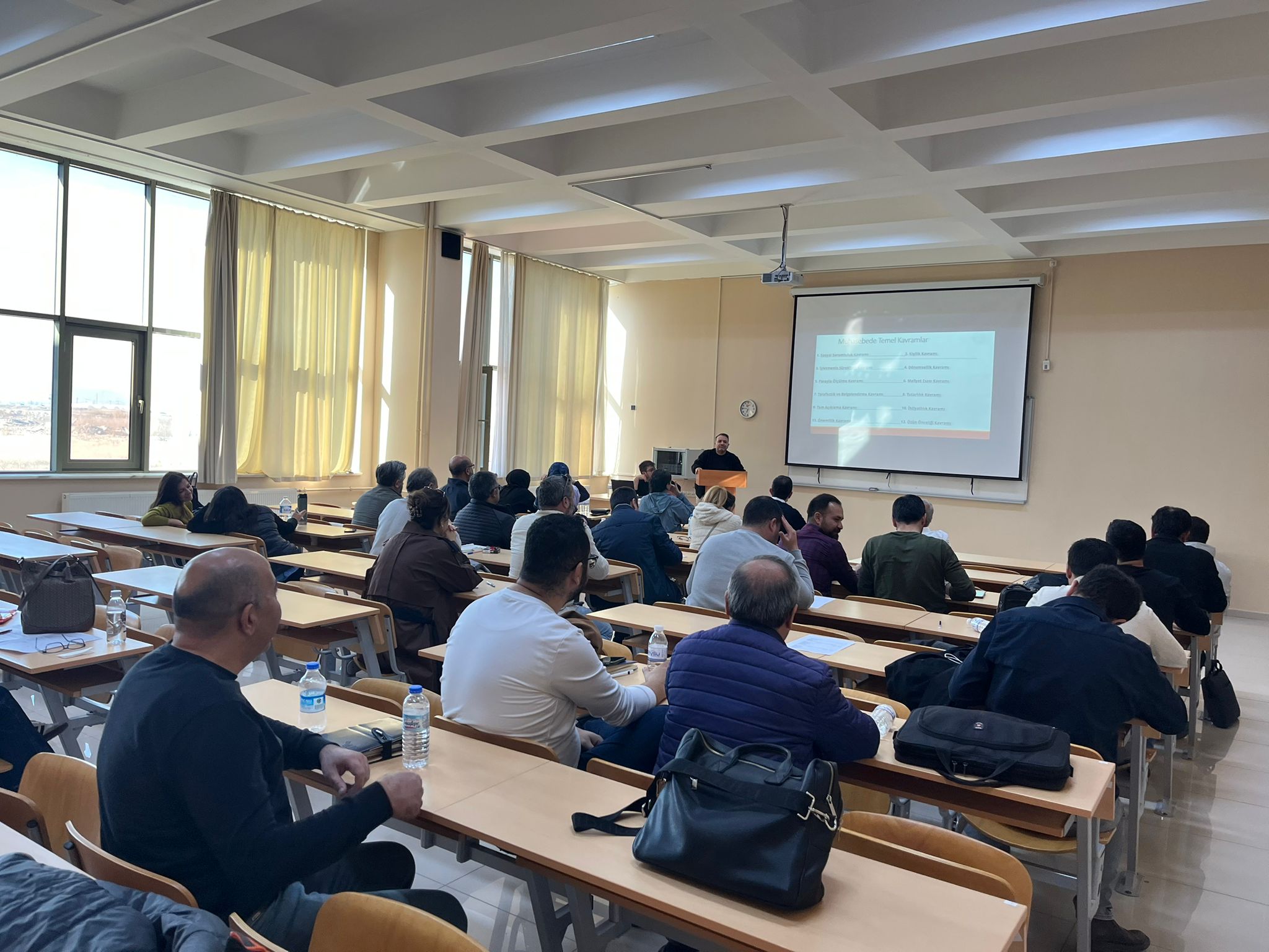 Konkordato süreçlerinde görev alacak uzmanların yetkinliklerini artırmayı ve uygulamadaki güncel gelişmelere hâkim profesyoneller yetiştirmeyi amaçlayan eğitim; Prof. Dr. Cantürk Kayahan, Prof. Dr. İhsan Cemil Demir, Prof. Dr. Tuğrul Kandemir, Doç. Dr. Ayşe Kılınç, Doç. Dr. Osman Uslu, Dr. Öğretim Üyesi Hasibe Sena Akkışla ve Öğr. Gör. Abdullah Akcanlı tarafından verildi. Eğitim kapsamında konkordato hukuku, mali analiz, denetim, raporlama ile komiserlik görev ve sorumluluklarına ilişkin kapsamlı bilgiler aktarıldı.
