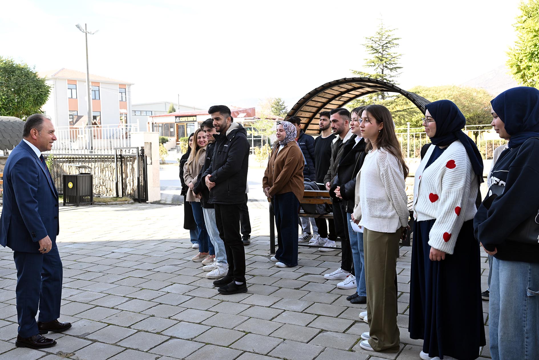 Rektör Karakaş ve beraberindeki heyet, Emirdağ Kaymakamlığı ve Emirdağ Belediyesi ziyaretinin ardından Emirdağ Meslek Yüksekokulunda öğrencilerle bir araya geldi. Görüşmede Karakaş, üniversite yönetimi olarak ilçelerdeki okulları ziyaret etmeyi önemsediklerini belirtti. Karakaş, “Okullarımızla ilişkilerimizi güçlendirmek adına sizlerle ve hocalarımızla bir araya gelerek talep ve önerilerinizi alıyoruz. Öğrenci, akademisyen ve yönetici olarak herkesin bakış açısı farklı; sizin baktığınız yerden bizim göremediğimiz hususlar olabiliyor” dedi. Toplantıda öğrenciler ise MYO’da düzenlenecek konferanslar için ilgili uzmanların davet edilmesi, bilgisayar ihtiyacının karşılanması ile Harita ve Kadastro Programında kullanılmak üzere ölçüm ve GPS cihazlarının model ve işlevselliğine ilişkin taleplerini iletti.