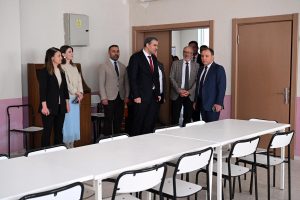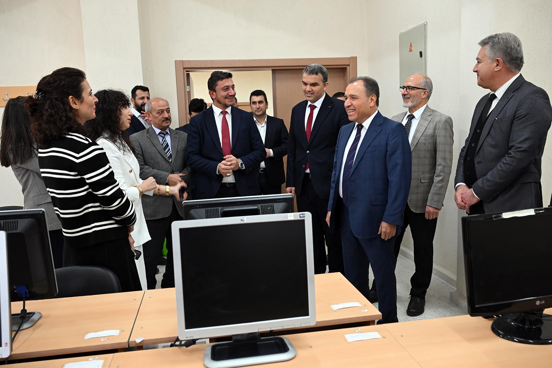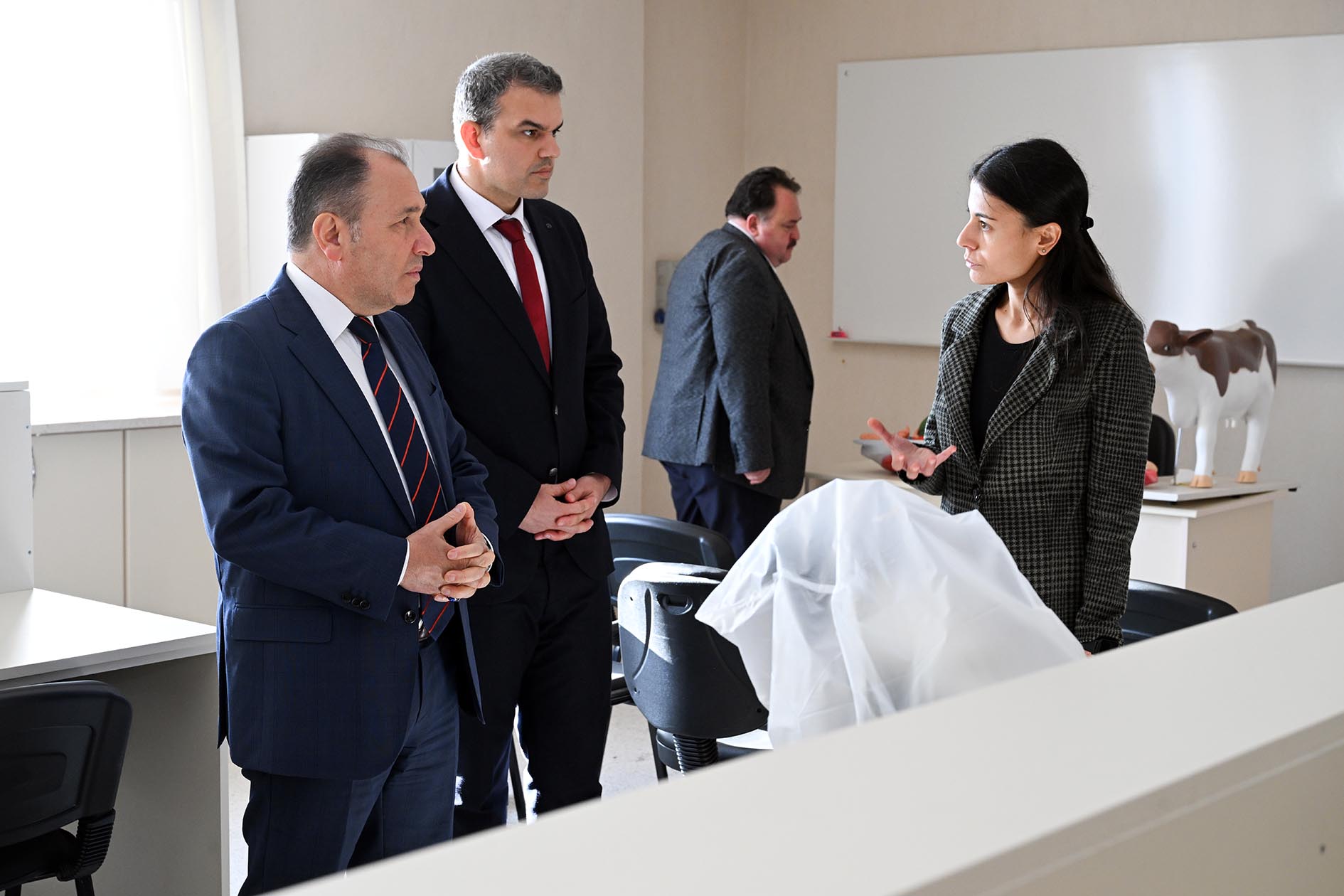 Rektör Karakaş ve beraberindeki heyet, Prof. Dr. Nijad Bilge Gençlik, Kültür ve Spor Merkezi ile hayırsever İş İnsanı Fehmi Zeki Denizli’nin katkılarıyla açılan mutfak ve laboratuvarları gezdi. Laboratuvarlar için bilgisayar, karartma perde ve ofis mobilyası taleplerini alan Karakaş, akademisyenlerle de bir toplantı gerçekleştirdi. Toplantıda Emirdağ MYO Müdürü Doç. Dr. Mustafa Köse, kurumlar arası iş birlikleri ile birim bünyesinde yürütülen etkinliklere ilişkin bir sunum yaptı. Akademisyenlerin talep ve değerlendirmelerini dinleyen Rektör Karakaş, altyapı bütçesi doğrultusunda doğal gaz planlaması yapılacağını belirterek, “Hazır olan ilçeler var; geride çok fazla okulumuz da kalmadı. Sırayla hepsini tamamlayacağız” dedi. Öğrencilerle gerçekleştirilen görüşmelerde ölçüm ve GPS cihazlarına yönelik taleplerin iletildiğini hatırlatan Karakaş, bu ihtiyacın bütçe imkânları çerçevesinde karşılanacağını ifade etti. Projeksiyon cihazı, fotokopi makinesi ve çok fonksiyonlu yazıcı gibi ihtiyaçların giderildiğini vurgulayan Karakaş, 2025 bütçesiyle birkaç talep dışında büyük ölçüde tüm ihtiyaçların karşılanacağını söyledi.