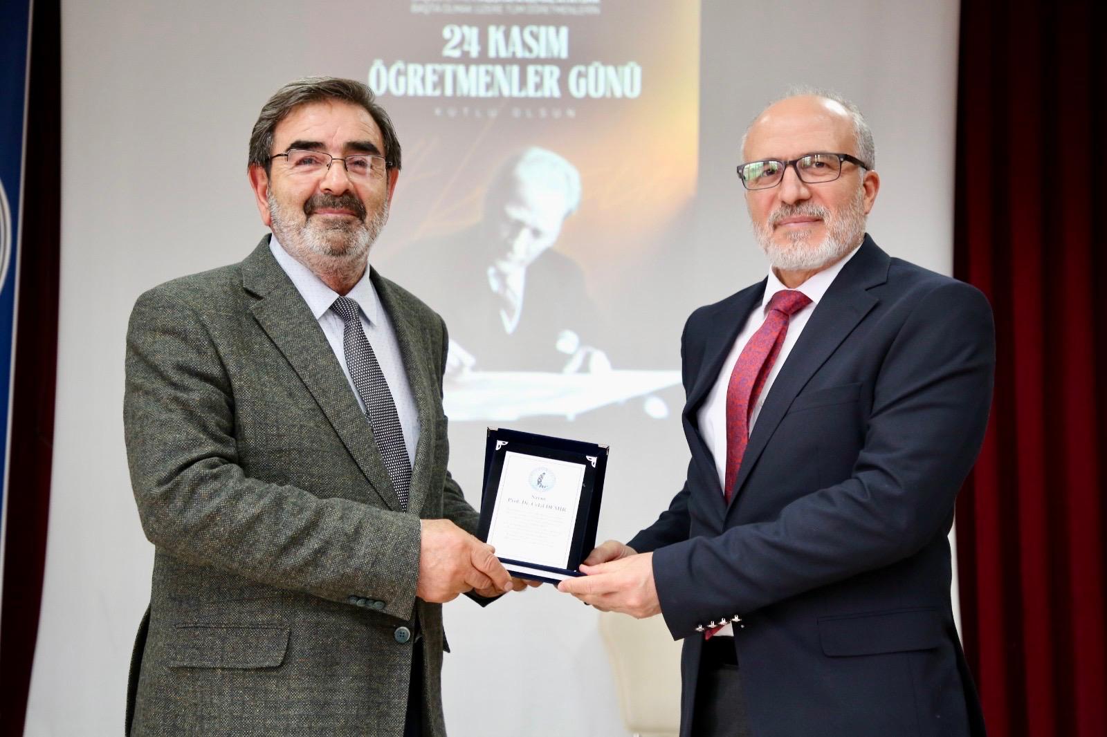 Prof. Dr. Peker, eğitimin öğrencisi, velisi, fiziki imkânları ve öğretmenleriyle bir bütün olduğunu belirterek, bu bütünün herhangi bir parçasının eksik olması durumunda sistemin sağlıklı işleyemeyeceğini ifade etti. Ayakları yere sağlam basan bir eğitim yapısına ihtiyaç olduğunu vurgulayan Peker, “Öğretmenin değerine paha biçilemez” dedi.