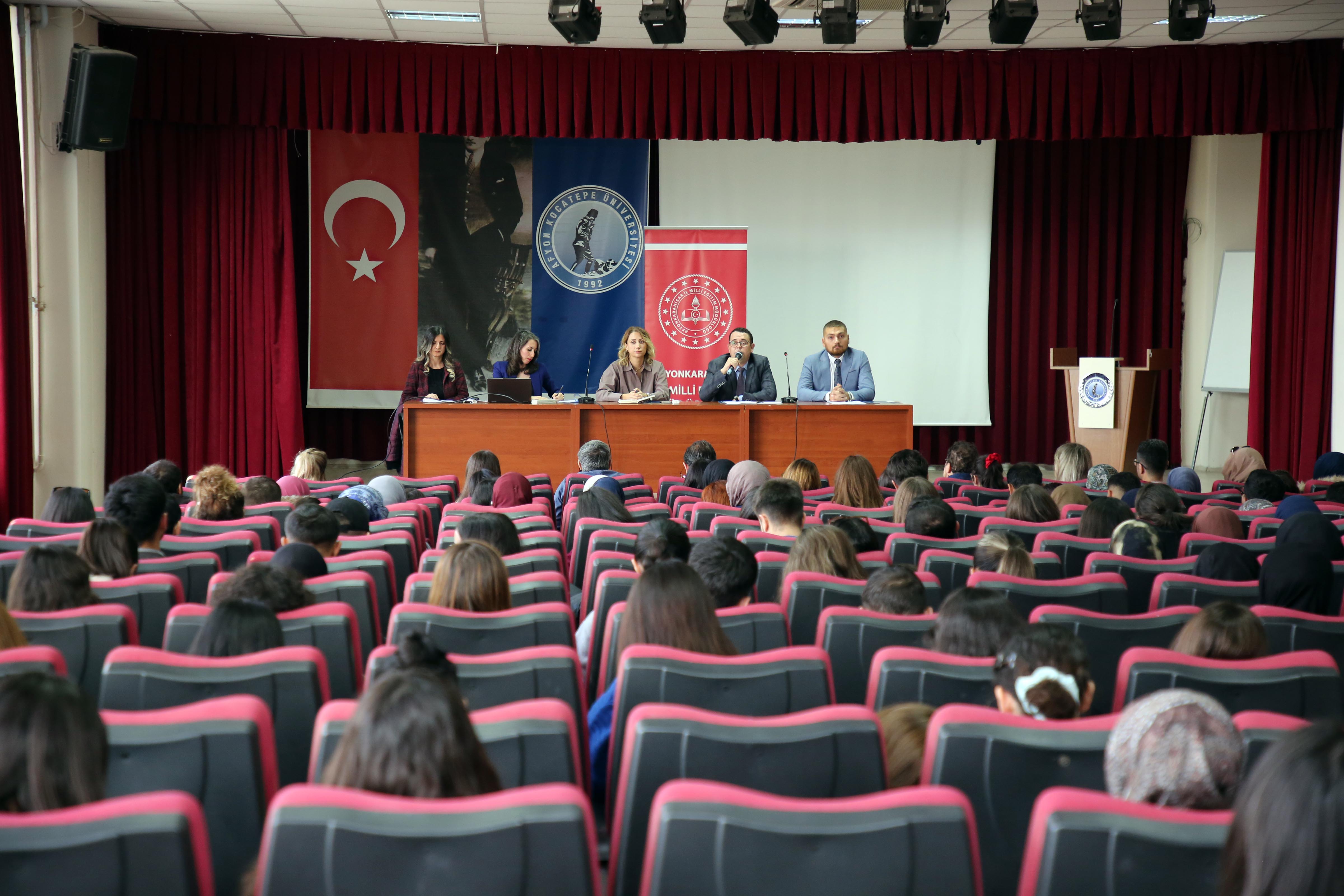 Abdullah Kaptan Konferans Salonunda Öğretmenler Cennet Kaya, Hayriye Akar, Meryem Fulya Görhan, Emre Uğur ve Mehmet Soyuçok’un konuşmacı olarak yer aldığı panele; Eğitim Fakültesi Dekan Yardımcısı Doç. Dr. Mehmet Erkol, İl Milli Eğitim Müdür Yardımcısı Musa Dinçgez ile akademisyen ve öğrenciler katıldı.