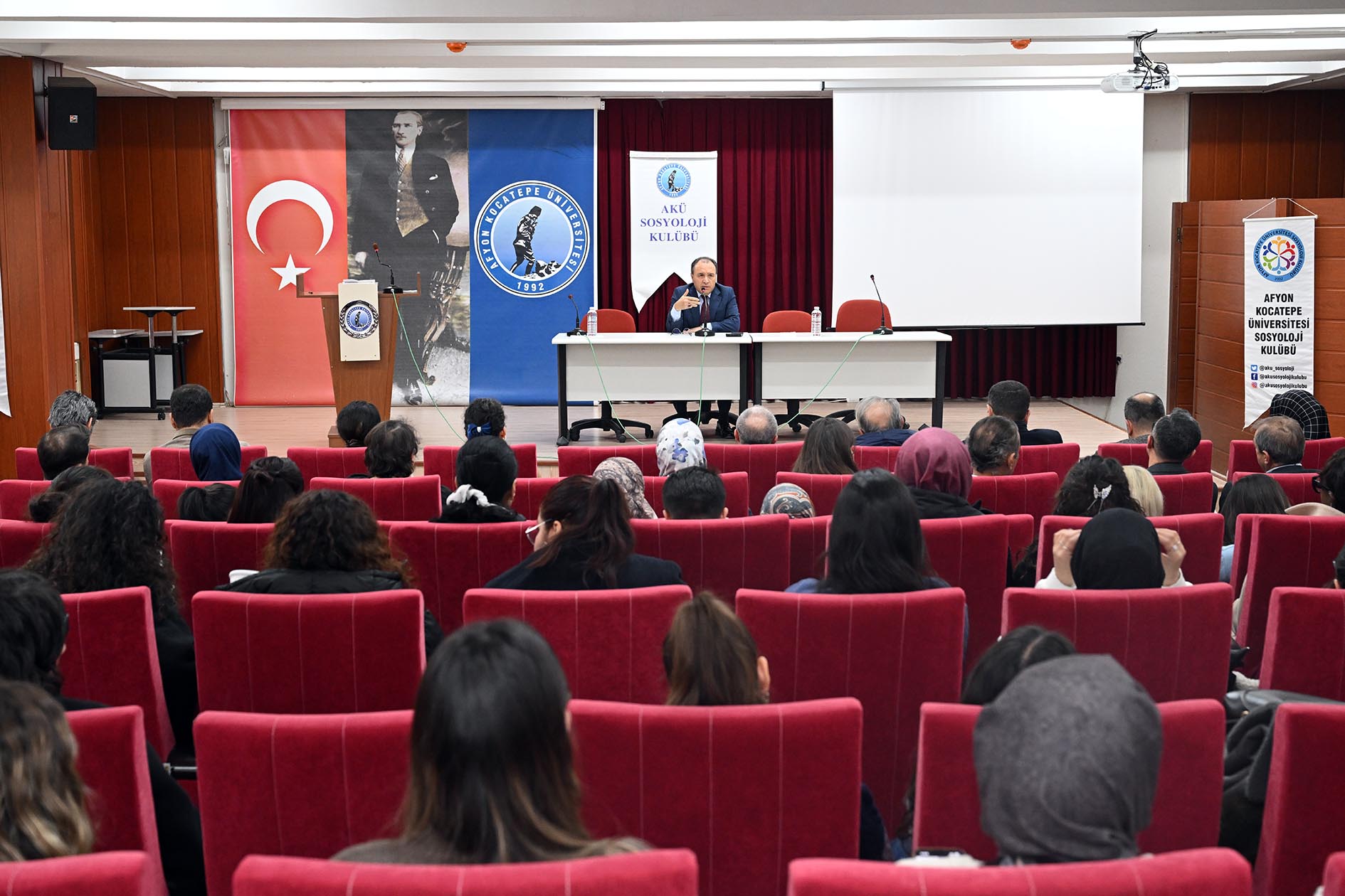 Afyon Kocatepe Üniversitesi (AKÜ) Prof. Dr. Mehmet Karakaş, Sosyoloji Kulübü tarafından düzenlenen “Sosyolojinin Dünü ve Bugünü” başlıklı konferansta sosyoloji biliminin tarihsel gelişimi, kavramsal temelleri ve günümüzde karşılaştığı yöntemsel sorunlara ilişkin değerlendirmelerde bulundu.
