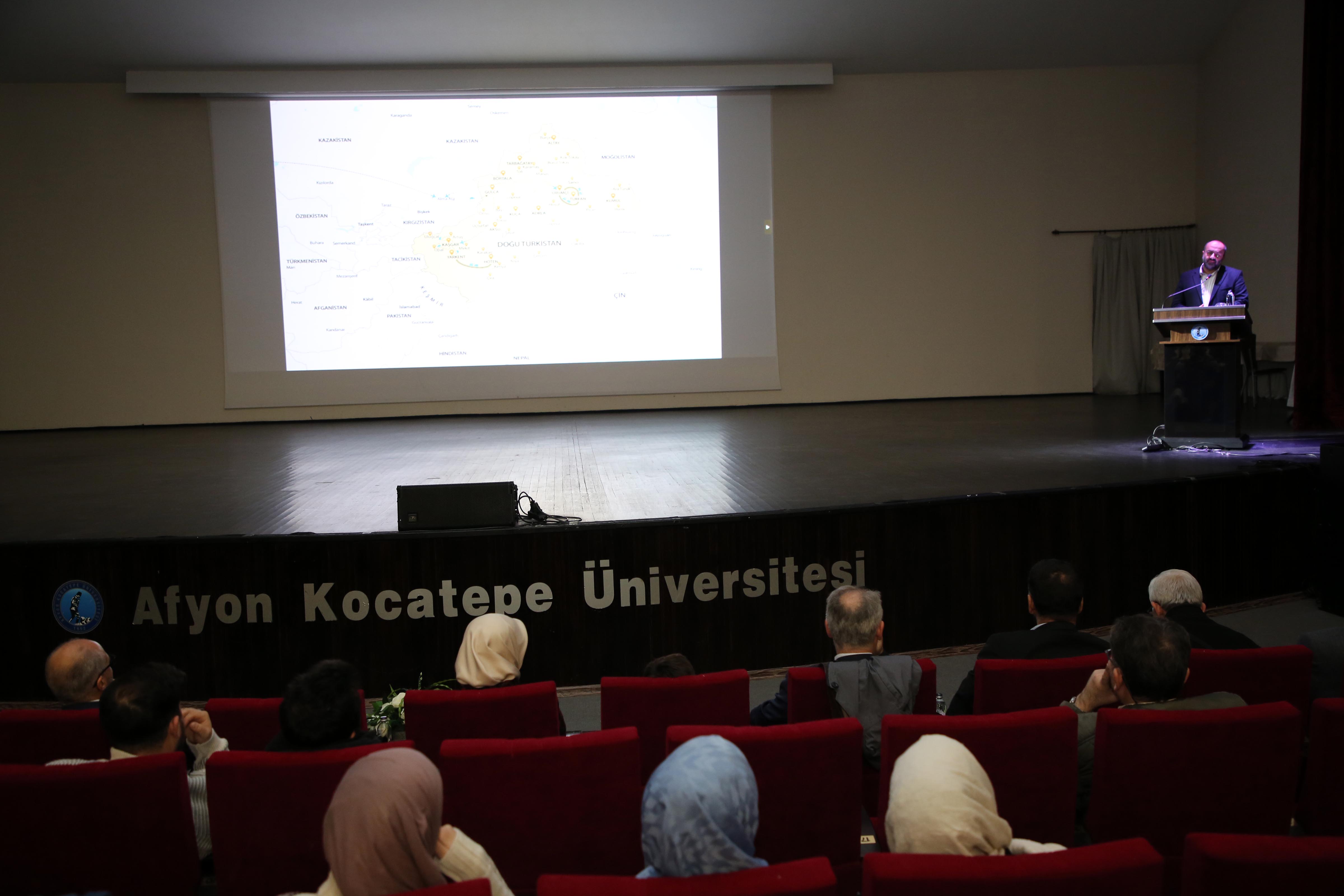 Afyon Kocatepe Üniversitesi (AKÜ) Öğrenci Kulüp ve Topluluklarının iş birliği ile “Kayıp Coğrafyanın İzinde: Doğu Türkistan Seyahatnamesi” temalı söyleşi düzenlendi.