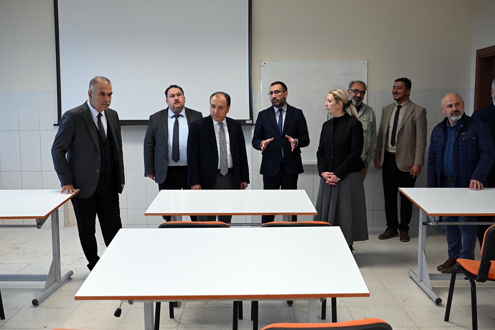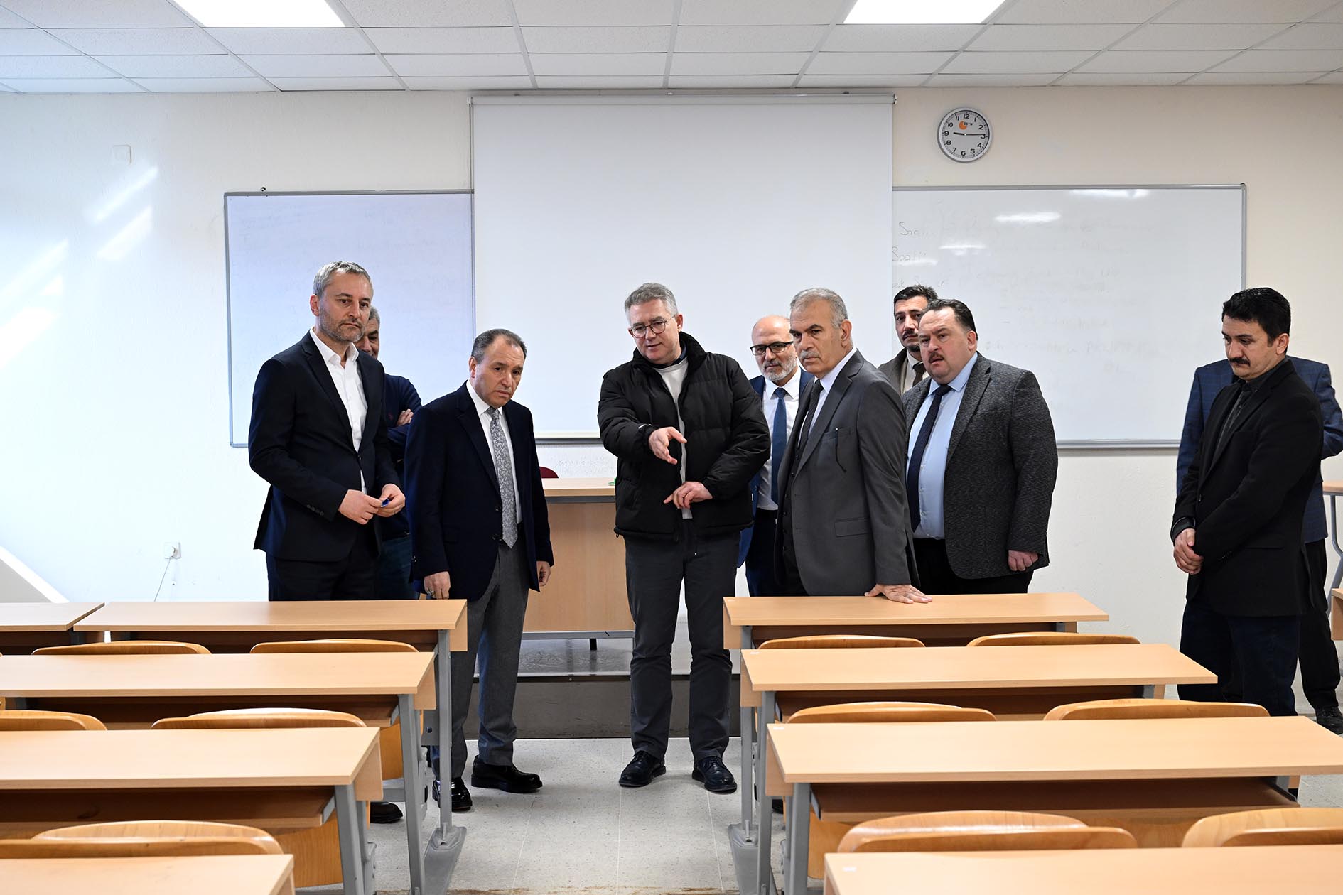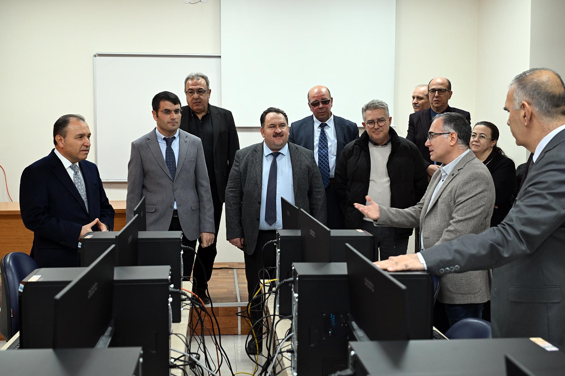 Rektör Karakaş ve beraberindeki heyet, laboratuvar açılışının ardından İİBF’de yer alan seminer ve konferans salonlarını ziyaret etti. Ziyaret sırasında Rektör Karakaş, akademik personel ve öğrencilerle bir araya gelerek görüş, talep ve önerilerini dinledi. Görüşmelerde, Yönetim Bilişim Sistemleri Bölümünde yürütülen; yazılım geliştirme, veri analitiği, iş zekâsı, veri tabanı yönetimi ve ağ yönetimi gibi uygulama ağırlıklı bilgi teknolojileri temelli dersler için, öğrencilerin kişisel cihazlarını kullanabilecekleri BYOD (Bring Your Own Device) destekli sınıf altyapısına ihtiyaç duyulduğu ifade edildi. Bu doğrultuda, BYOD uygulamasına uygun bir eğitim ortamının oluşturulabilmesi amacıyla 118 numaralı derslikte yapılması gereken düzenlemelere ilişkin değerlendirmelerde bulunuldu.