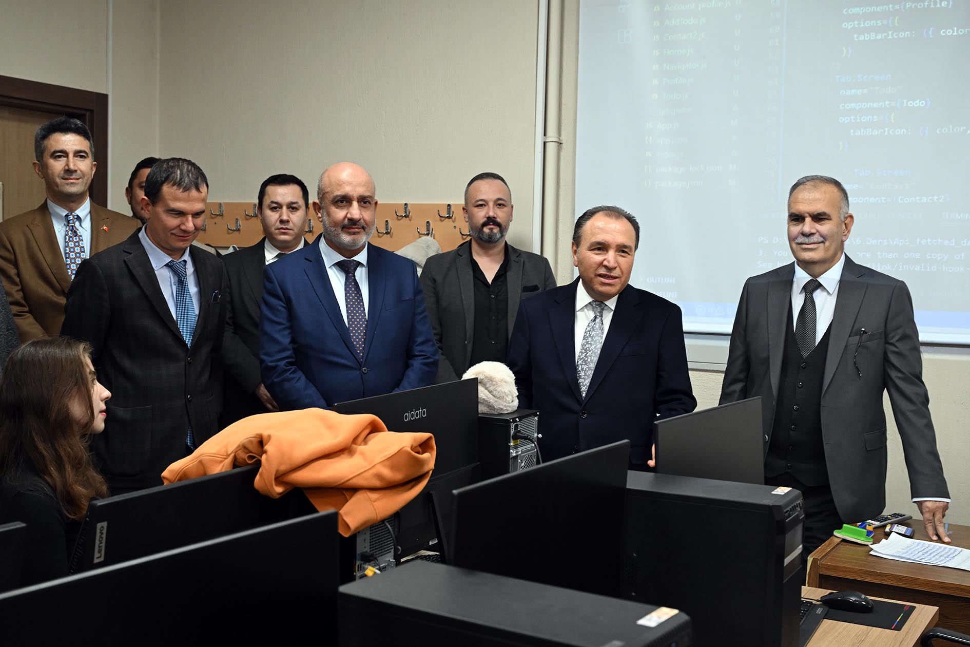 AKÜ Rektörü Prof. Dr. Karakaş, Bilişim Teknolojileri Meslek Yüksekokulunda yenilenen bilişim laboratuvarının açılışında açıklamalarda bulundu. Yükseköğretim Kurulu kararları doğrultusunda Uzaktan Eğitim Meslek Yüksekokulunun, Bilişim Teknolojileri Meslek Yüksekokuluna dönüştürüldüğünü hatırlatan Karakaş, bu süreçte Oyun Geliştirme Teknolojileri ile Büyük Veri Analistliği programlarının açıldığını ve öğrenci alımına başlandığını ifade etti. Söz konusu programlarda eğitim gören öğrencilerin nitelikli bir eğitim alabilmesi için güçlü bir bilişim altyapısının büyük önem taşıdığını vurgulayan Karakaş, bu kapsamda mevcut laboratuvarın tamamen yenilendiğini belirtti. Laboratuvarın 40 yeni bilgisayarla donatılarak modern bir yapıya kavuşturulduğunu söyleyen Karakaş, yenilenen laboratuvarın her iki programın ihtiyaçlarını karşılayacak şekilde hizmet vereceğini dile getirdi. Rektör Karakaş, laboratuvarın öğrenciler için derslerin verimli yapılmasına katkı sağlayacağını belirterek, “Yeni laboratuvarımızın üniversitemize ve öğrencilerimize hayırlı olmasını diliyorum” dedi.