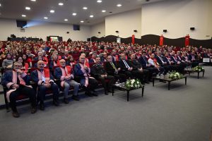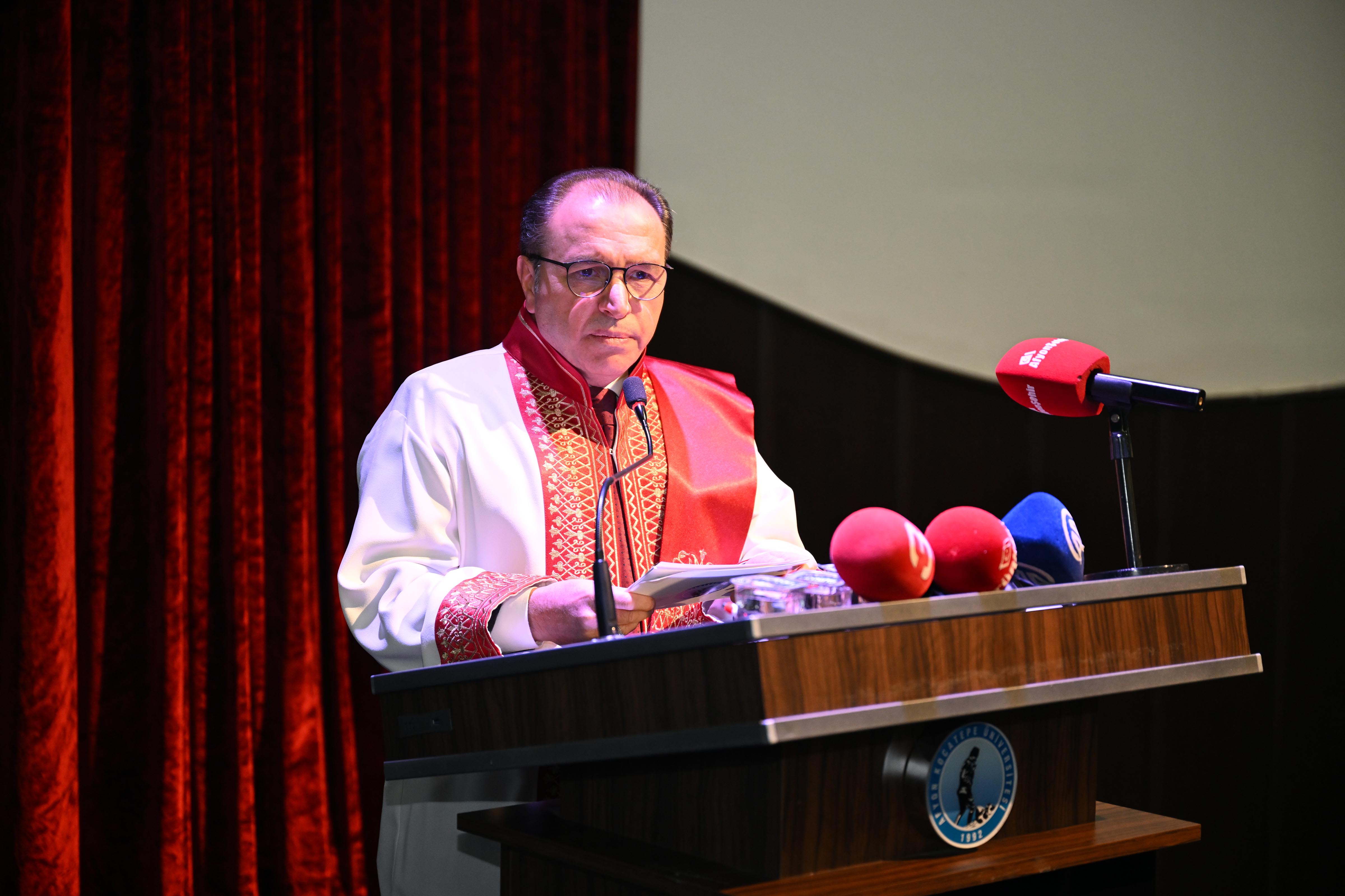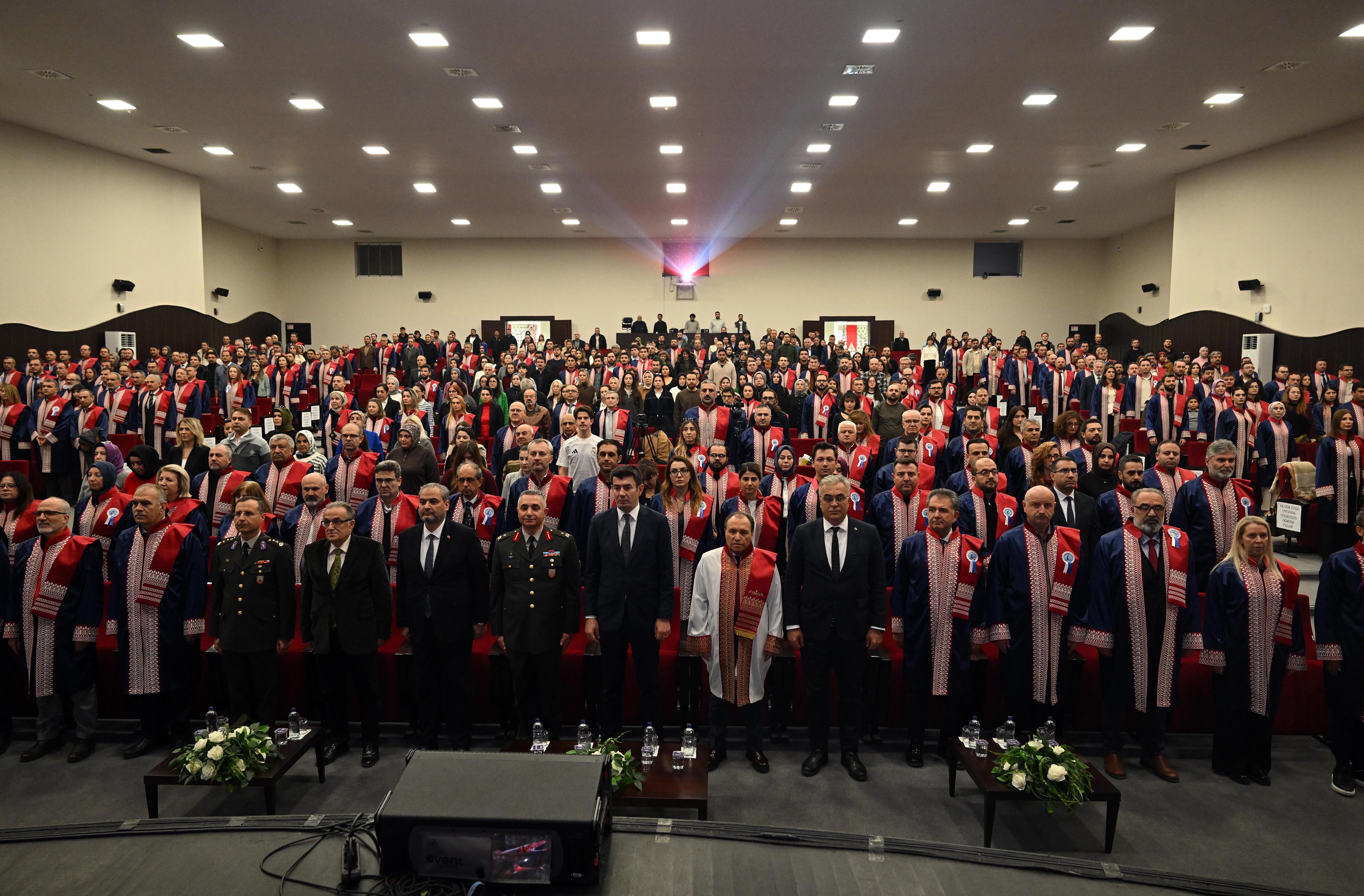“Bugün burada; akademik başarıların, emeklerin ve adanmışlığın kutlandığı, aynı zamanda ödüllendirildiği çok özel bir gün vesilesiyle bir araya geldik. Akademik yükseltme töreni; bilgi birikiminin, araştırma azminin ve öğrenme yolculuğundaki başarıların taçlandırılması anlamını taşımaktadır. Akademik hayat yalnızca bilgi üretmekten ibaret değildir; aynı zamanda topluma katkı sağlamak, geleceği şekillendirmek ve insan yetiştirmek gibi son derece önemli sorumlulukları da içerir. Bu anlamlı yolculukta bir üst akademik unvana yükselen değerli akademisyenlerimizi gönülden tebrik ediyorum. Saygıdeğer akademisyenlerimiz; bilim ve bilginin sınırlarını zorlayarak genç beyinlere ışık oldunuz, toplumsal gelişime önemli katkılar sundunuz. Elde ettiğiniz bu başarılar yalnızca üniversitemizin değil, aynı zamanda şehrimizin ve toplumumuzun da gurur kaynağıdır.”
