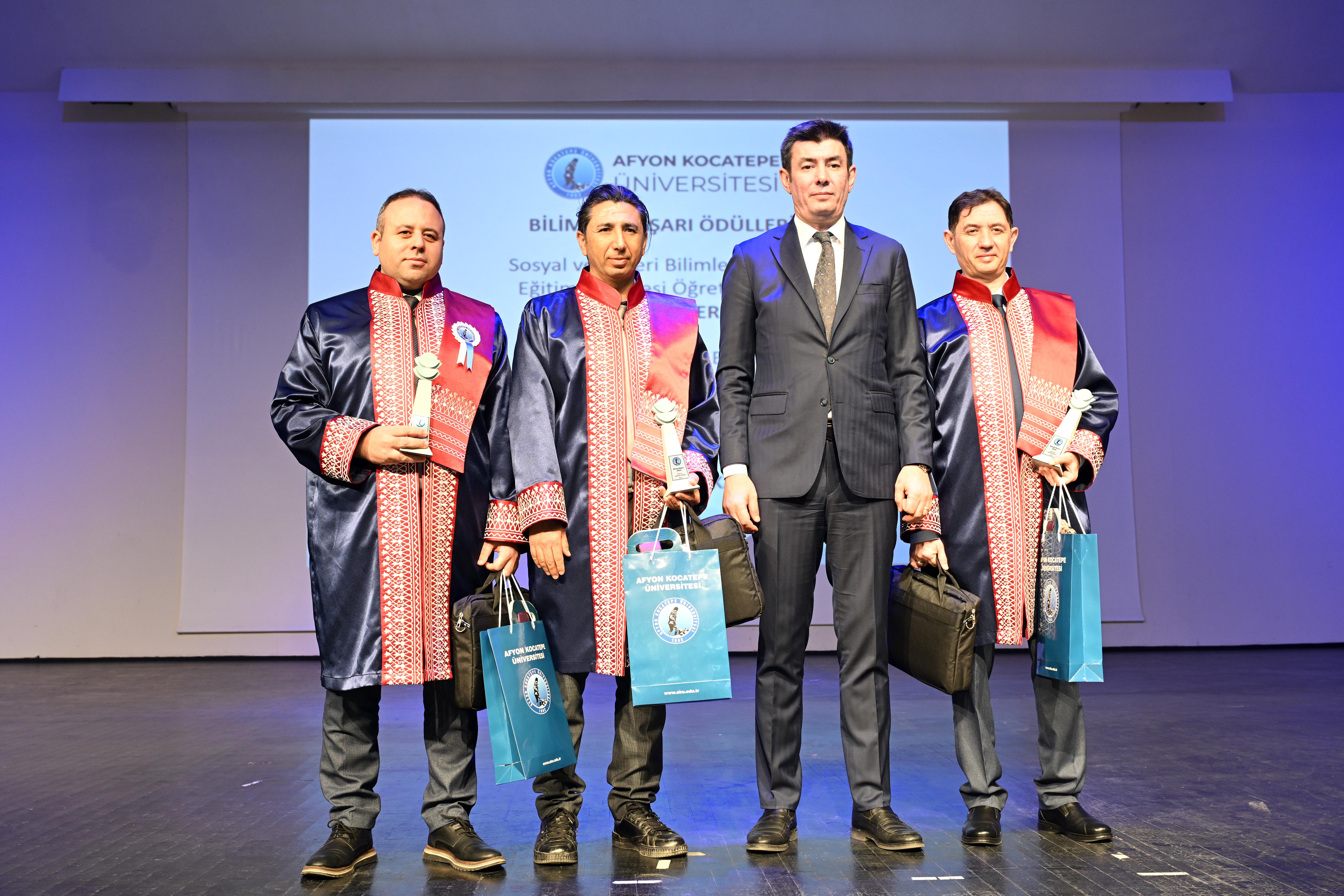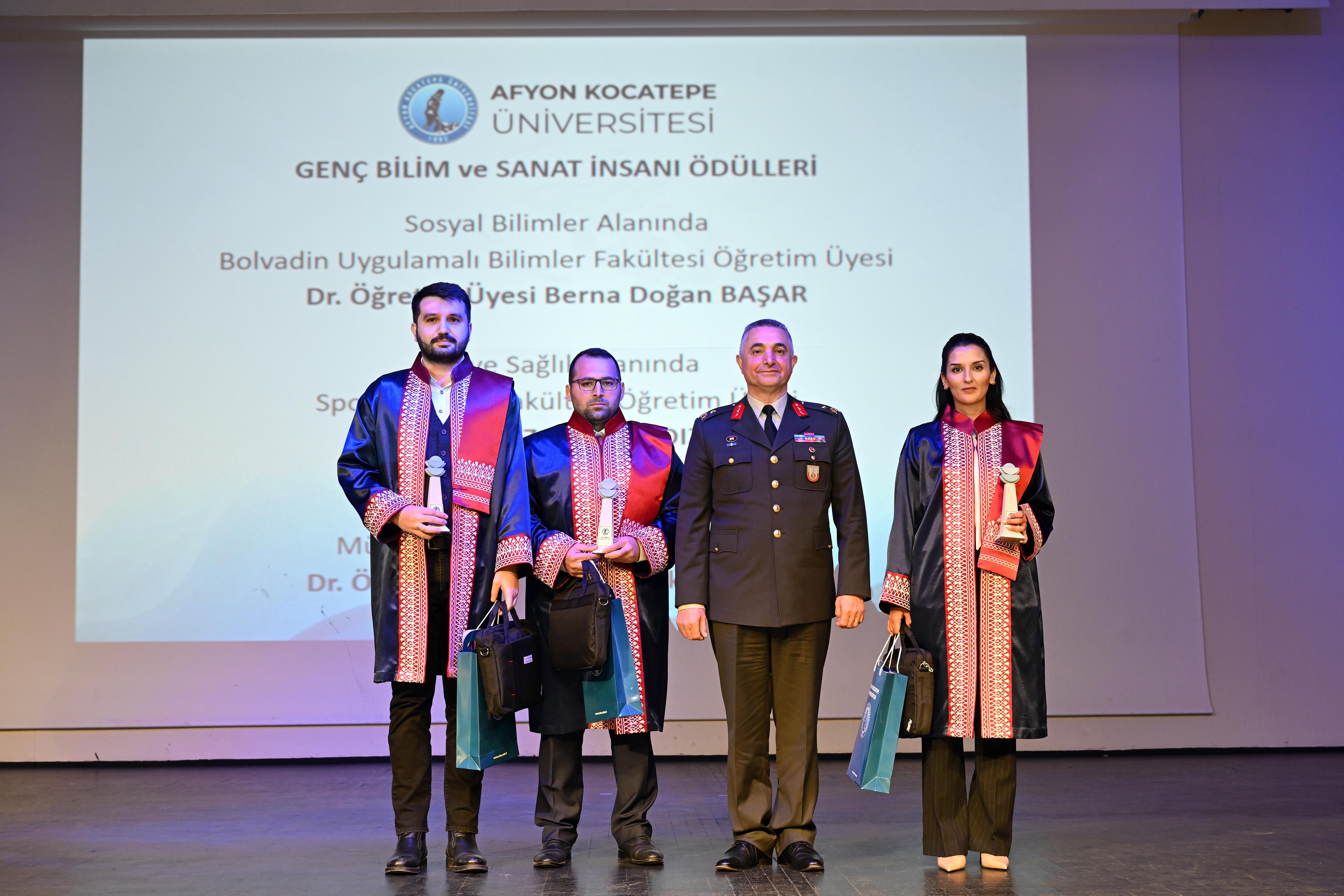 Genç Bilim ve Sanat İnsanı Ödülü için Fen ve Sağlık Alanında Spor Bilimleri Fakültesinden Doç. Dr. Zeki Akyıldız, Sosyal ve Beşerî Bilimler Alanında, Bolvadin Uygulamalı Bilimler Fakültesinden Dr. Öğr. Üyesi Berna Doğan Başer ve Fen Bilimleri Alanında Mühendislik Fakültesinden Dr. Öğr. Üyesi Ömer Gökberk Narin ödüle layık görüldü.
