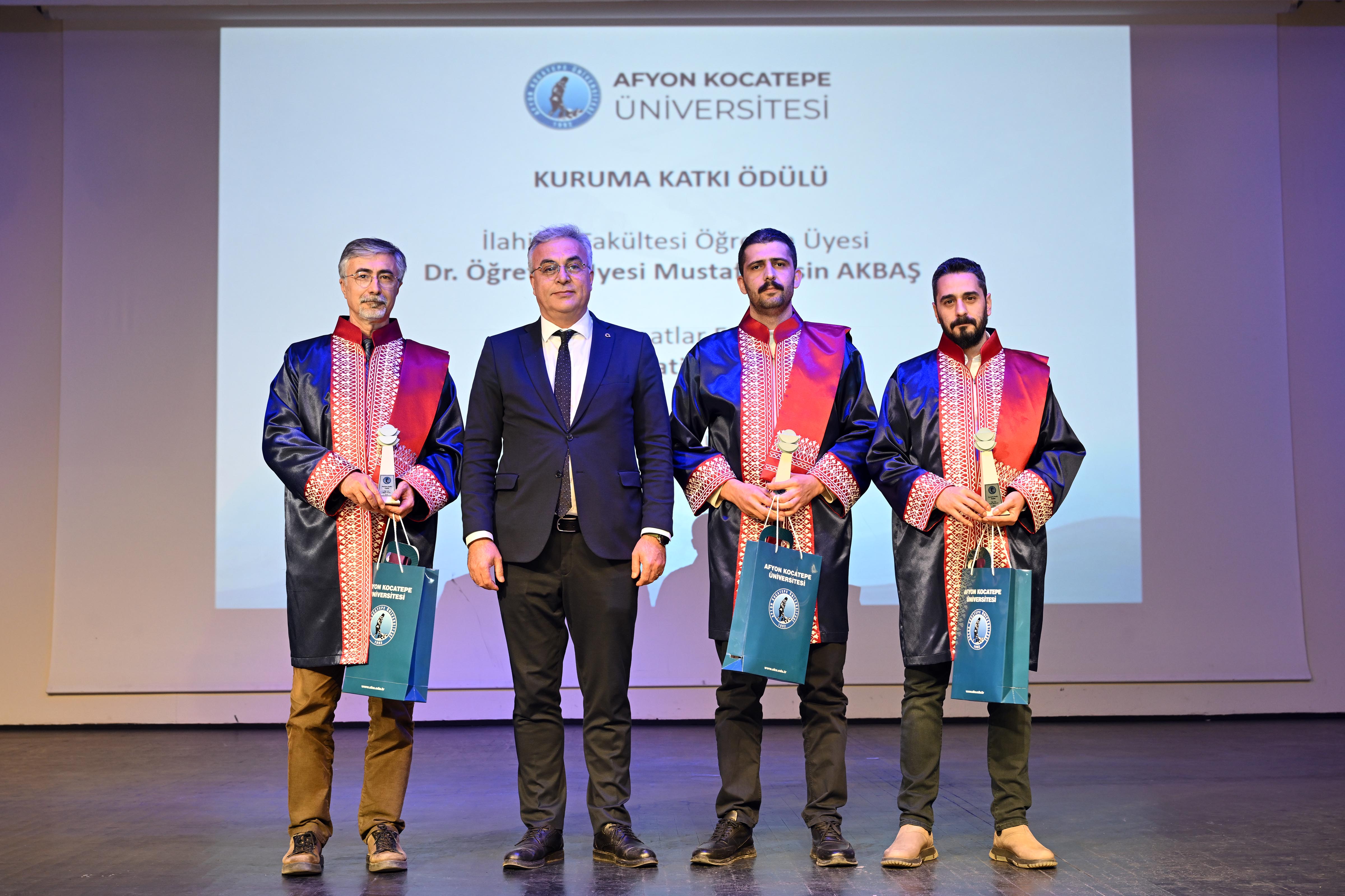 Kuruma Katkı Ödülü için İlahiyat Fakültesinden Dr. Öğretim Üyesi Mustafa Yasin Akbaş, Güzel Sanatlar Fakültesinden Öğr. Gör. Fatih Mazlum ve Afyon Meslek Yüksekokulundan Öğr. Gör. Erkan Çelik ödüle layık görüldü.