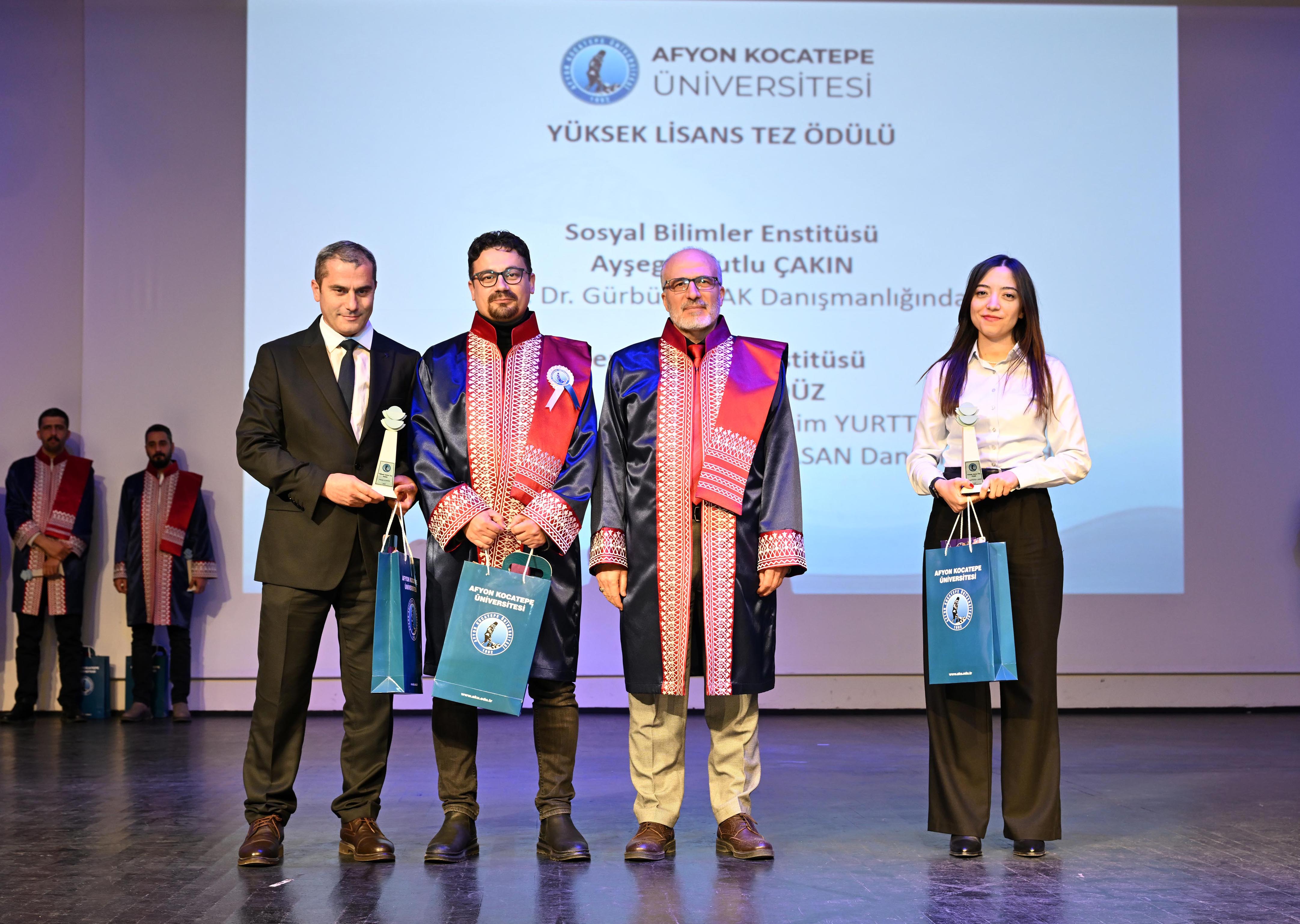 Sosyal Bilimler Enstitüsünden Ayşegül Kutlu Çakın, Prof. Dr. Gürbüz Ocak danışmanlığında hazırladığı “İlkokul 3. Sınıflarda İngilizce Öğretiminde Dijital Hikâye Kullanımı Üzerine Bir Araştırma” başlıklı teziyle, Fen Bilimleri Enstitüsünden Selçuk Gündüz ise Dr. Öğr. Üyesi Ahmet Haşim Yurttakal ve Dr. Öğr. Üyesi Fahrettin Horasan danışmanlığında hazırladığı “İşbirlikçi Tabanlı Tavsiye Sistemlerinde Yeni Bir Matris Ayrışım Tekniği” başlıklı teziyle En İyi Yüksek Lisans Tez Ödülüne layık görüldü.