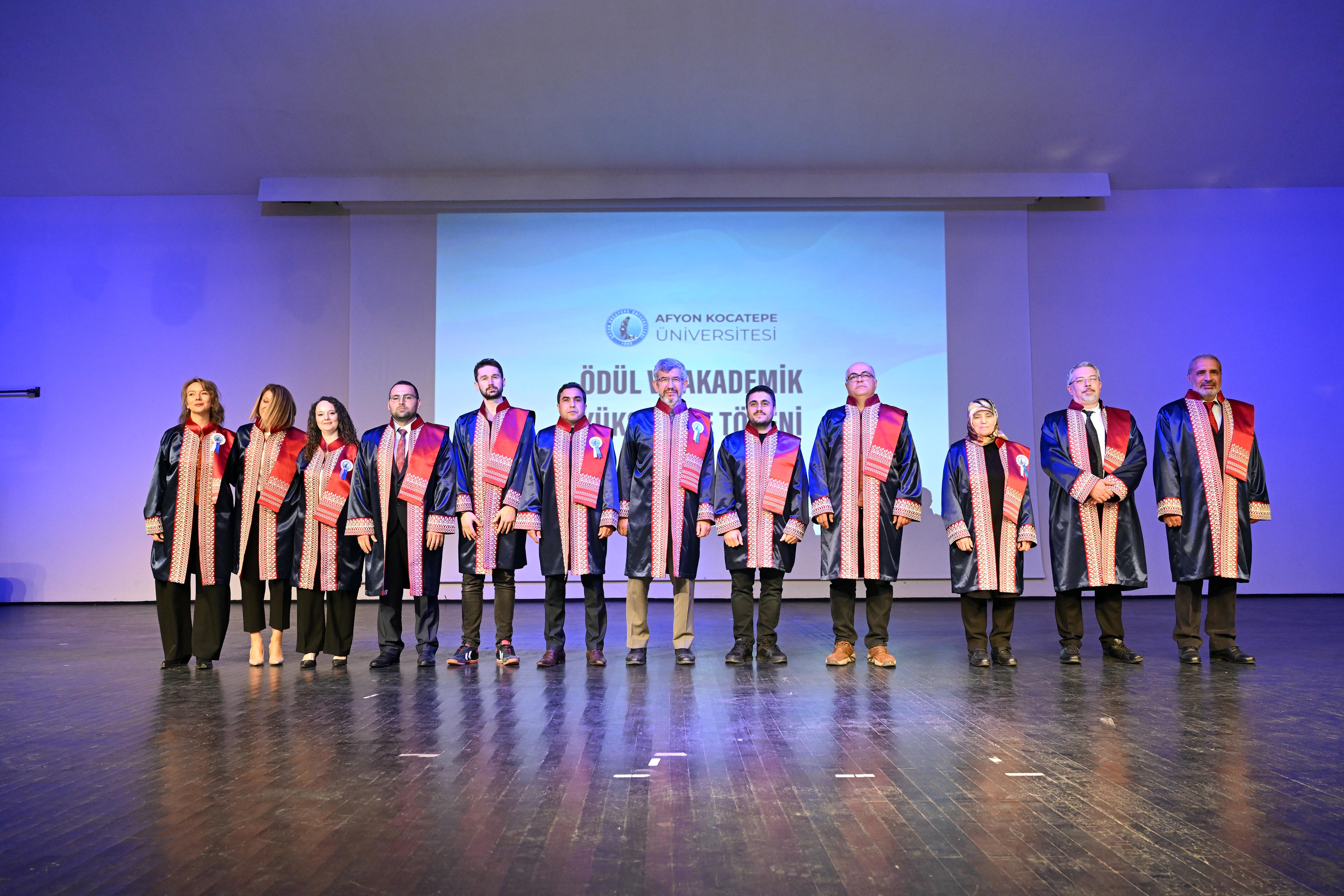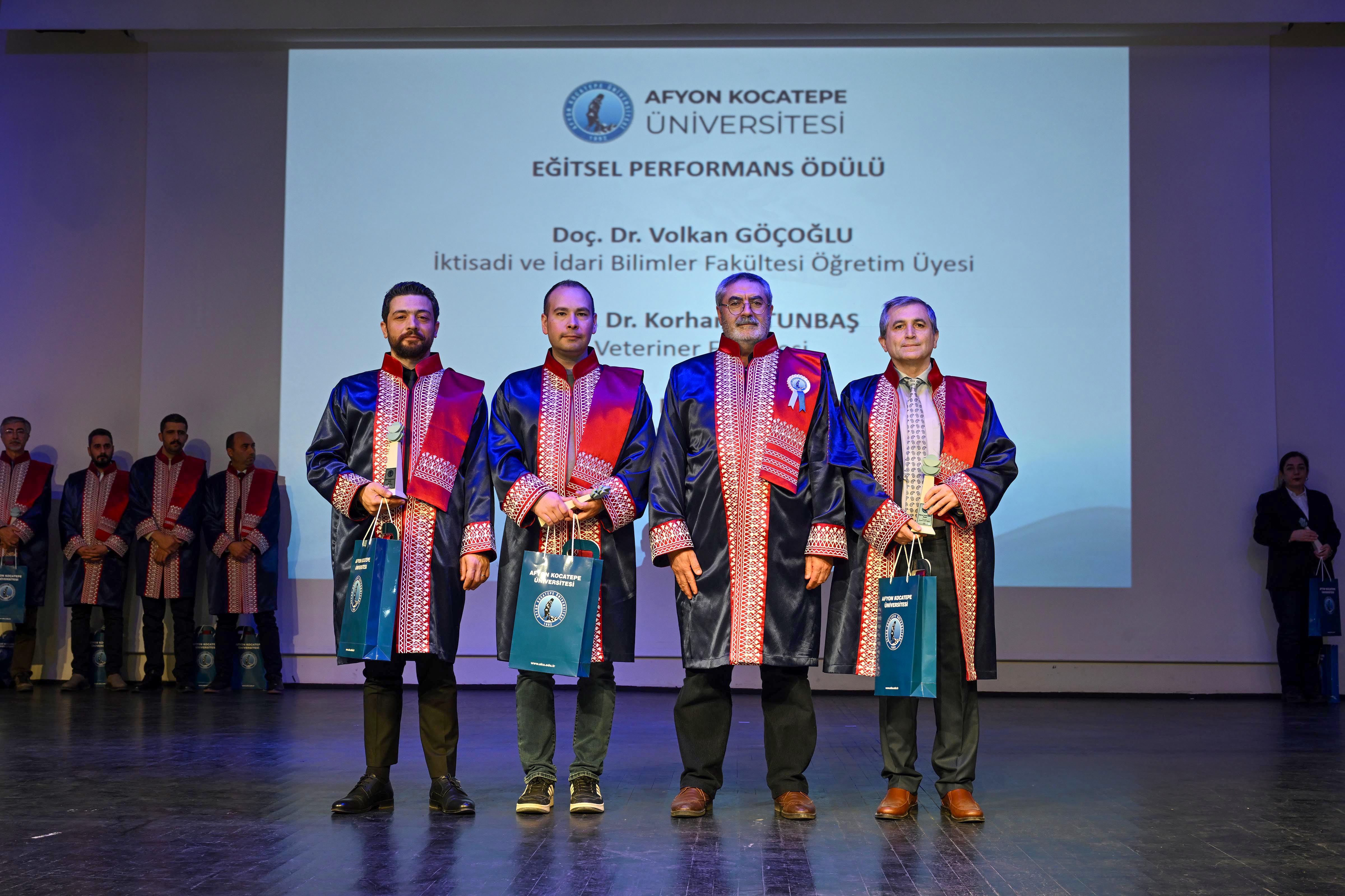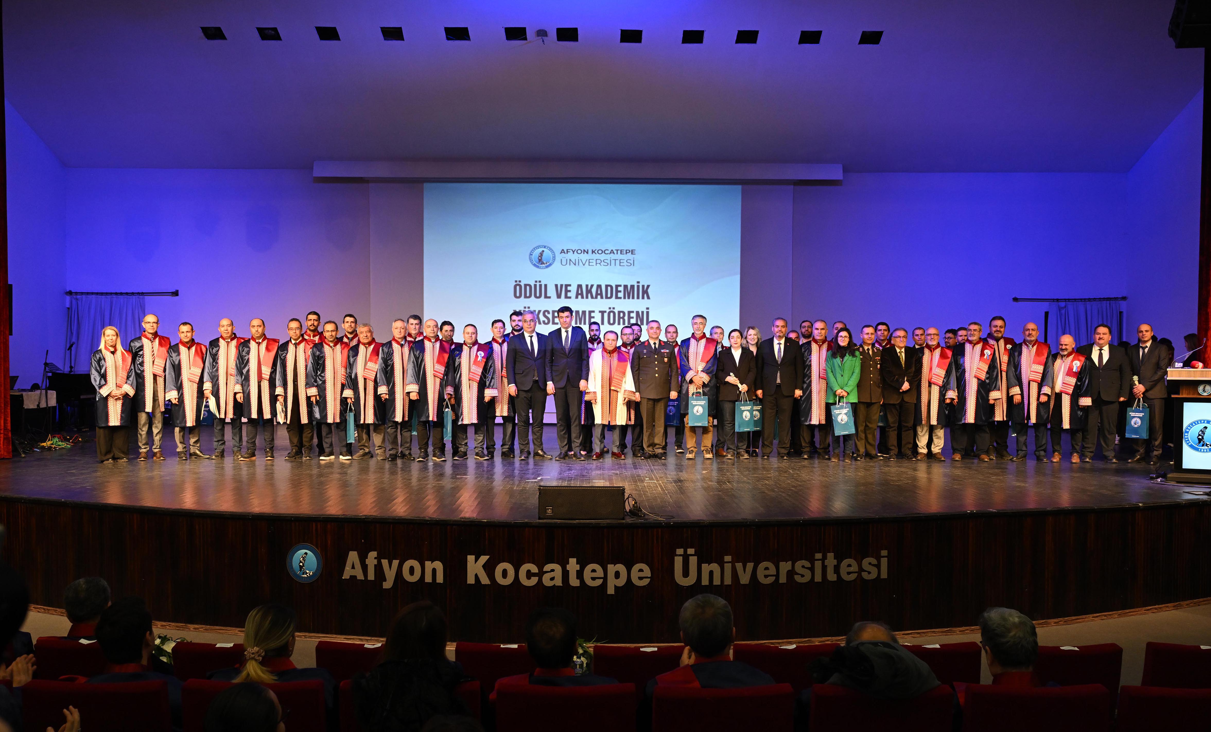 Protokol konuşmalarının ardından tören; Afyon Kocatepe Üniversitesi Ödül Yönergesi kapsamında yapılan değerlendirmeler sonucunda, Ödül Komisyonunca 8 farklı kategoride ödüle layık görülen akademik ve idari personele ödüllerinin takdimi, Profesörlük ataması yapılan öğretim üyelerinin profesörlük belgelerinin takdimi, Doçent ve Doktor Öğretim Üyeliğine atanan öğretim üyelerine ise şal takma merasimi ile devam etti.