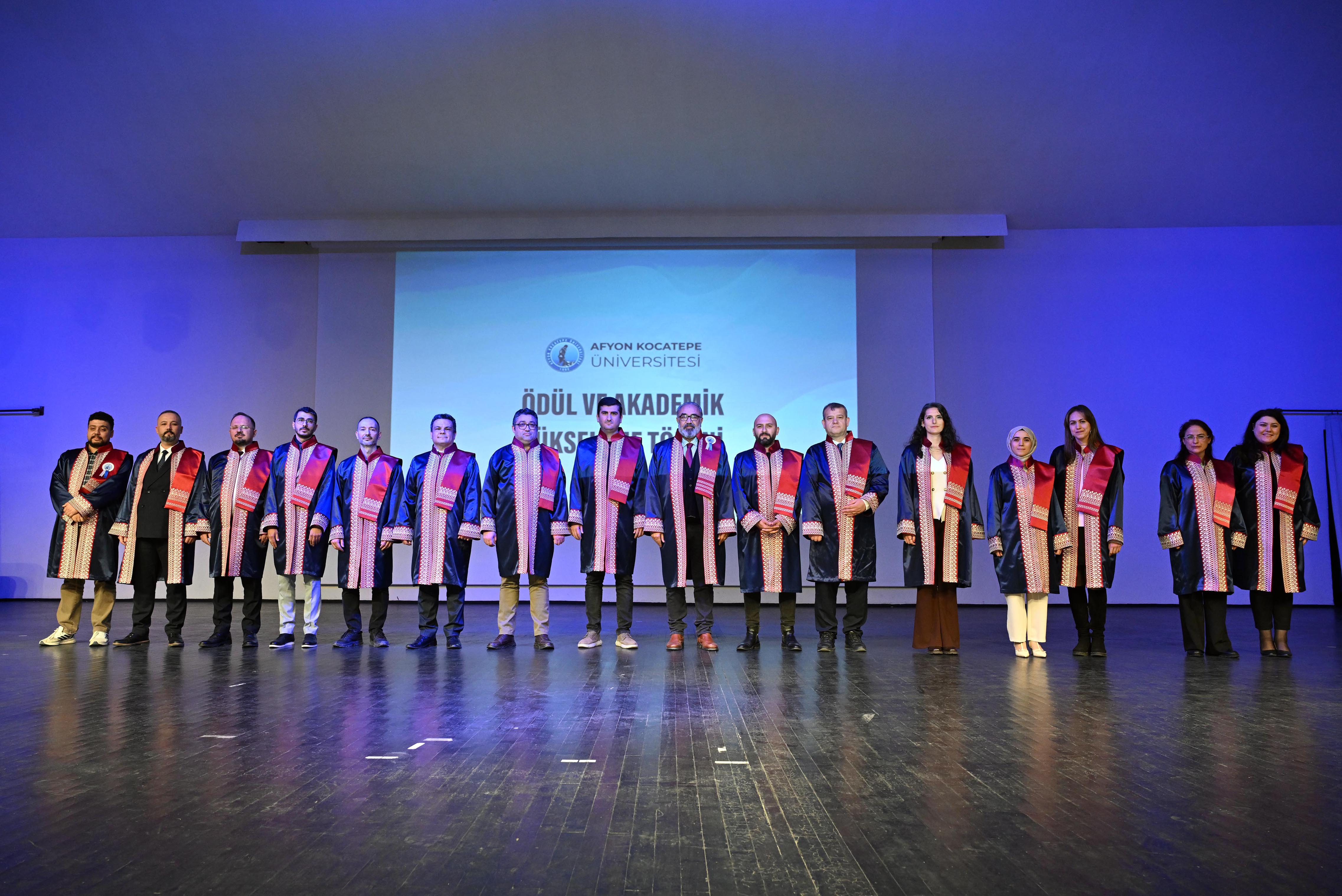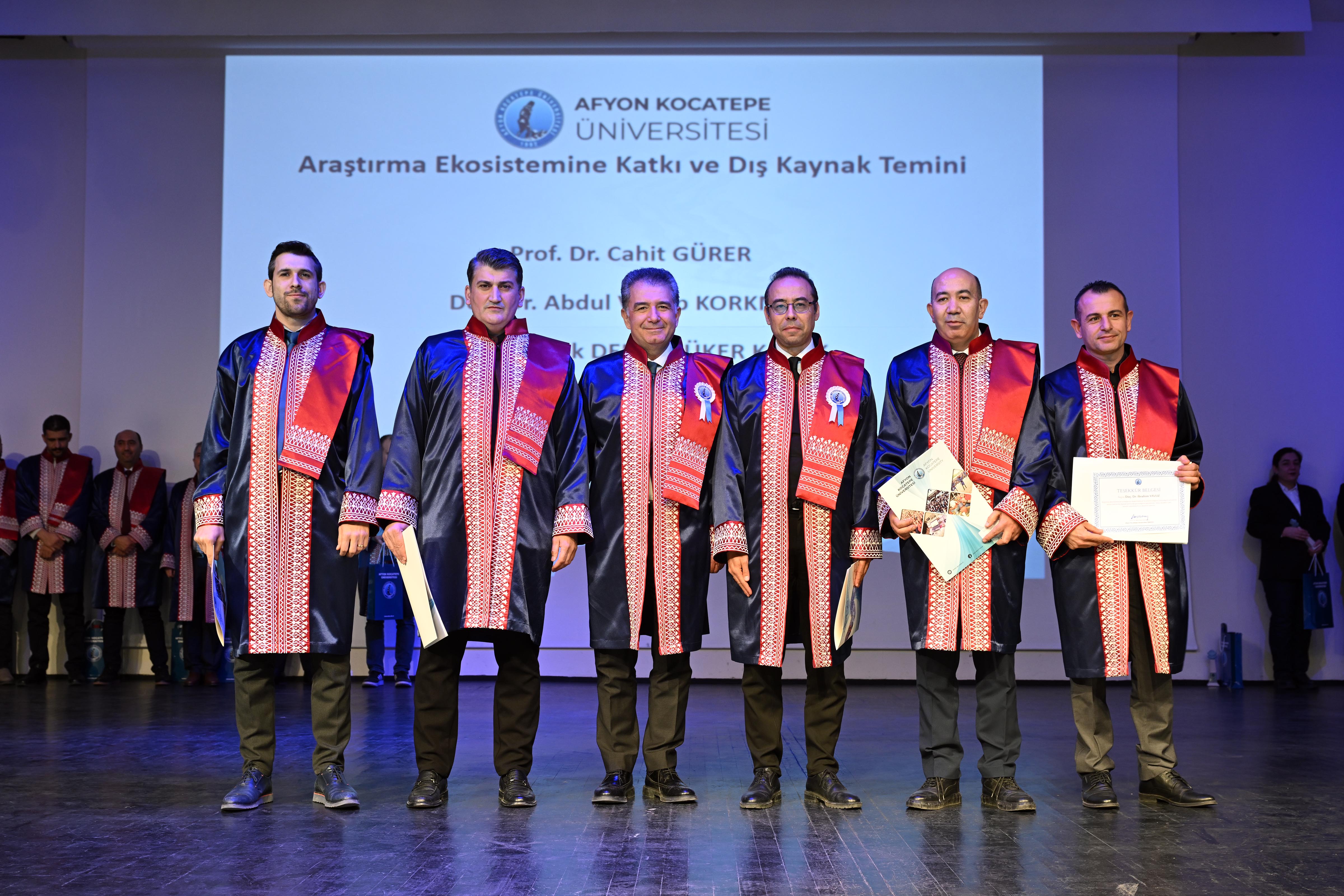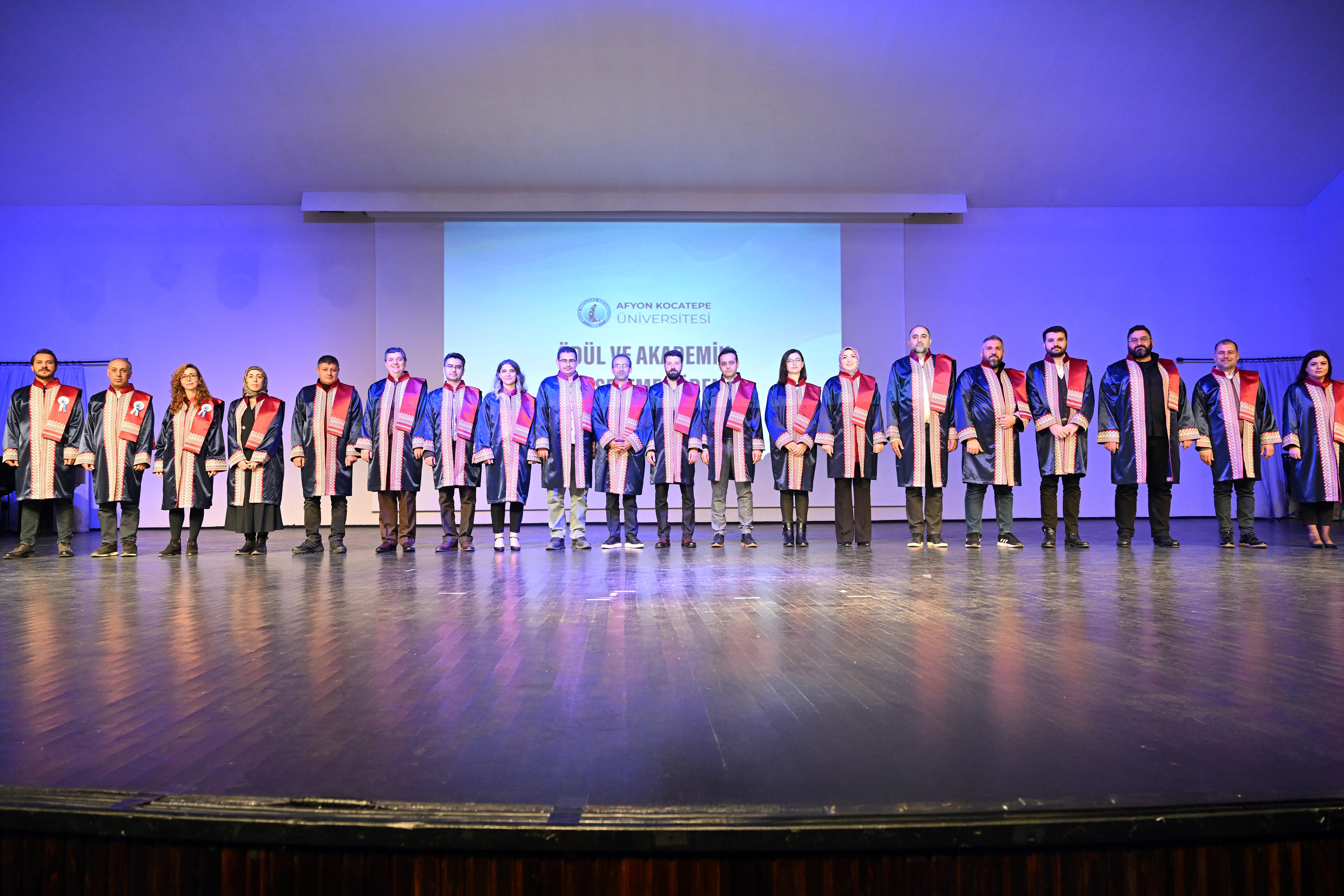 Protokol konuşmalarının ardından tören; Afyon Kocatepe Üniversitesi Ödül Yönergesi kapsamında yapılan değerlendirmeler sonucunda, Ödül Komisyonunca 8 farklı kategoride ödüle layık görülen akademik ve idari personele ödüllerinin takdimi, Profesörlük ataması yapılan öğretim üyelerinin profesörlük belgelerinin takdimi, Doçent ve Doktor Öğretim Üyeliğine atanan öğretim üyelerine ise şal takma merasimi ile devam etti.