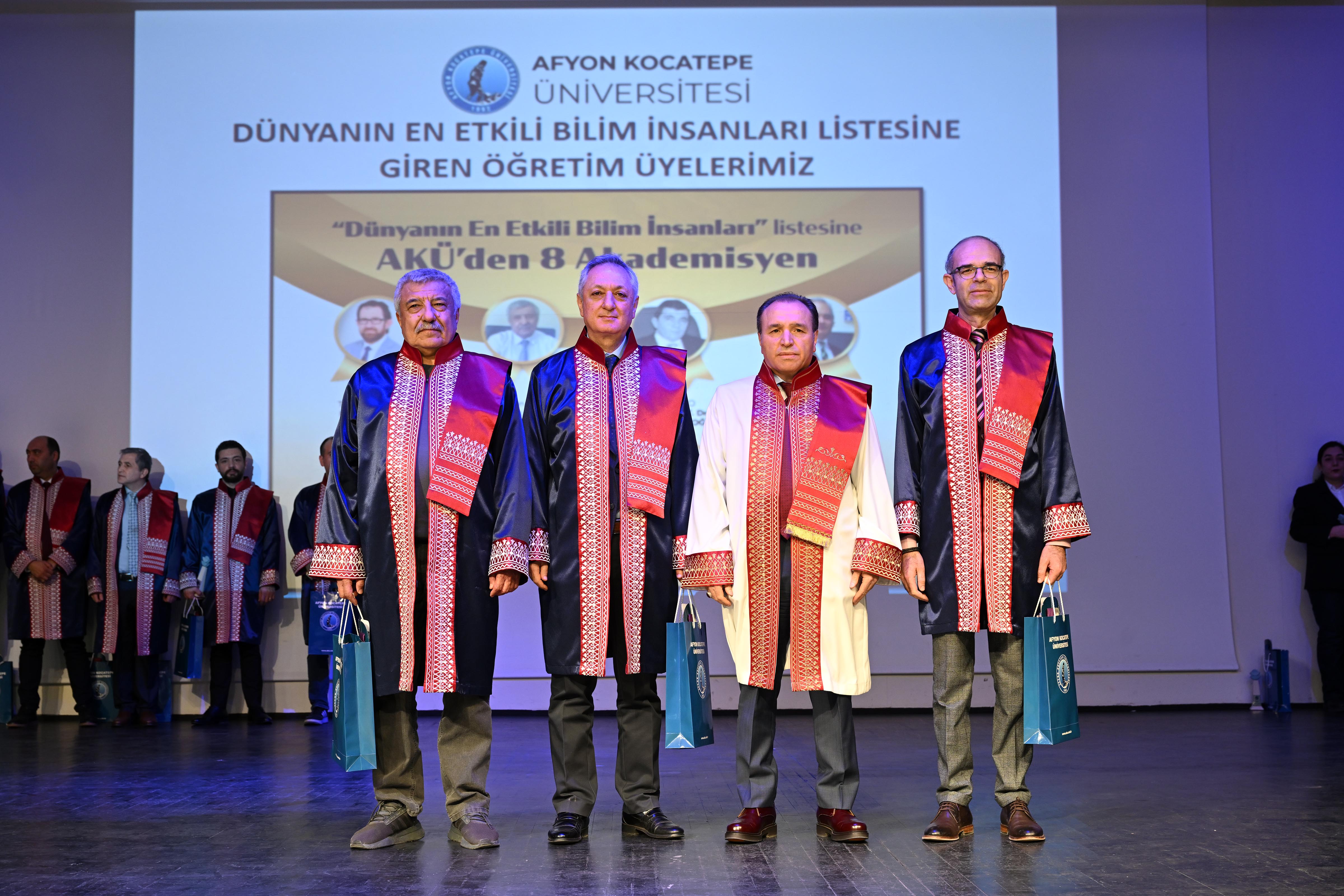 Dünyanın en etkili bilim insanları listesinde yer aldıkları için Teknoloji Fakültesinden Prof. Dr. Kubilay Aslantaş, Afyon MYO’ndan Prof. Dr. Mustafa Yavuz Çelik ve merhum Prof. Dr. Ömer Deperlioğlu, İktisadi ve İdari Bilimler Fakültesinden Prof. Dr. Fatih Ecer, Mühendislik Fakültesinden Prof. Dr. Taner Kavas, Prof. Dr. Eyüp Sabah, Prof. Dr. Tayfun Uygunoğlu ve Dr. Öğr. Üyesi Recep Kurtuluş ödüllendirildi.