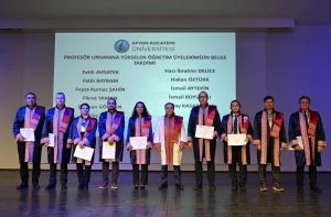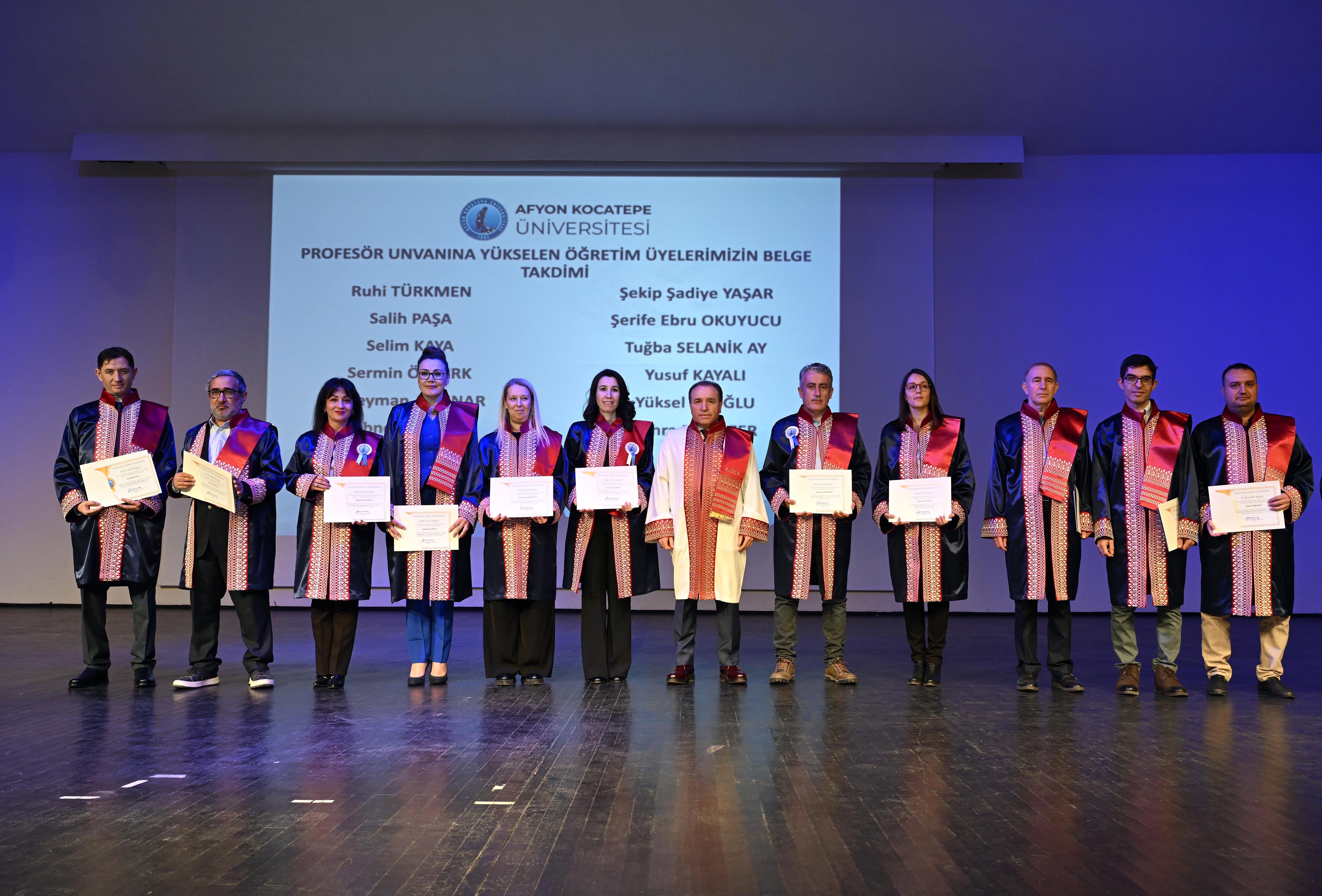 Tören; Profesörlük ünvanına yükseltilen öğretim üyelerine belge takdimi ile devam etti. Profesörlük ünvanına yükseltilen; Prof. Dr. Ahmet Altuncu, Prof. Dr. Ahmet Yönetken, Prof. Dr. Ahmet Emin Seyhan, Prof. Dr. Alper Başer, Prof. Dr. Ayşe Ulusoy Tunçel, Prof. Dr. Cahit Gürer, Prof. Dr. Ceyda Kükrer Mutlu, Prof. Dr. Çağhan Adar, Prof. Dr. Deniz Yeni, Prof. Dr. Emine Bulut, Prof. Dr. Erhan Bingölbali, Prof. Dr. Fatih Avdatek, Prof. Dr. Fatih Bayram, Prof. Dr. Feyza Kurnaz Şahin, Prof. Dr. Fikret Yaman, Prof. Dr. Gökhan Görhan, Prof. Dr. Gülay Çınar, Prof. Dr. Hacı İbrahim Delice, Prof. Dr. Hakan Öztürk, Prof. Dr. İsmail Aytekin, Prof. Dr. İsmail Koyuncu, Prof. Dr. Koray Kasapoğlu, Prof. Dr. Mebrure Doğan, Prof. Dr. Mehmet Yıldız, Prof. Dr. Mehmet Eyüp Kiriş, Prof. Dr. Murat Kelikli, Prof. Dr. Murat Özşahin, Prof. Dr. Murat Sırrı Akosman, Prof. Dr. Mustafa Kabu, Prof. Dr. Mustafa Uçar, Prof. Dr. Nuray Kurtdede Fidan, Prof. Dr. Özcan Zorlu, Prof. Dr. Özgün Uyanık Aktulun, Prof. Dr. Recep Kara, Prof. Dr. Ruhi Türkmen, Prof. Dr. Salih Paşa, Prof. Dr. Selim Kaya, Prof. Dr. Sermin Öztürk, Prof. Dr. Süleyman Akpınar, Prof. Dr. Şebnem Pamuk, Prof. Dr. Şekip Şadiye Yaşar, Prof. Dr. Şerife Ebru Okuyucu, Prof. Dr. Tuğba Selanik Ay, Prof. Dr. Yusuf Kayalı, Prof. Dr. Yüksel Eroğlu ve Prof. Dr. Zehra Nur Özer profesörlük belgelerini aldılar.