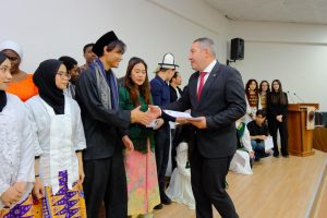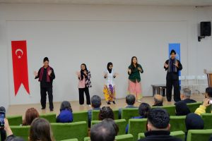 Afyon Kocatepe Üniversitesi (AKÜ) Dinar Meslek Yüksekokulunda (MYO), uluslararası öğrencilerin kültürel etkileşimini artırmaya ve yerel toplulukla üniversite arasındaki sosyal bağları güçlendirmeye yönelik “Uluslararası Öğrenci Kültür Buluşması” etkinliği düzenlendi. Program kapsamında AKÜ’de öğrenim gören Kırgızistan, Afganistan, Endonezya, Mısır, Kazakistan, Sudan, Fildişi Sahili, Burkina Faso ve Gine’den gelen 40 uluslararası öğrenci; kendi ülkelerine özgü dansları ve kültürel öğeleri katılımcılarla paylaştı.