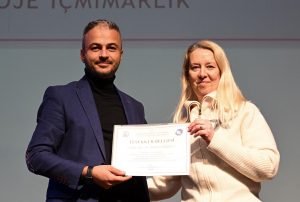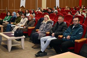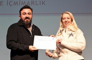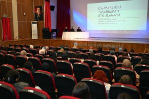 Malkoç, “İç Mimarlıkta Tasarımdan Uygulamaya” başlıklı sunumunda; iç mimarların çalışma alanları, tasarım ve uygulama sürecinde iç mimarlığın rolü ile resmî ve resmî olmayan prosedürler üzerine bilgilendirmelerde bulundu. İç mimarlığın yalnızca estetik üretime indirgenemeyeceğini belirten Malkoç; mekâna kimlik kazandırma, detay projeleriyle uygulama sürecini yönetme ve kullanıcı ihtiyaçlarını merkeze alan çözümler üretmenin mesleğin temel sorumlulukları arasında yer aldığını dile getirdi. Duvar, zemin ve tavan tasarımlarının güvenlik ve bütüncül tasarım yaklaşımı çerçevesinde ele alınması gerektiğini ifade eden Malkoç, iç mekânların kullanıcıya özel, konforlu ve işlevsel biçimde kurgulanmasının mesleki hedeflerin odağında bulunduğunu kaydetti.