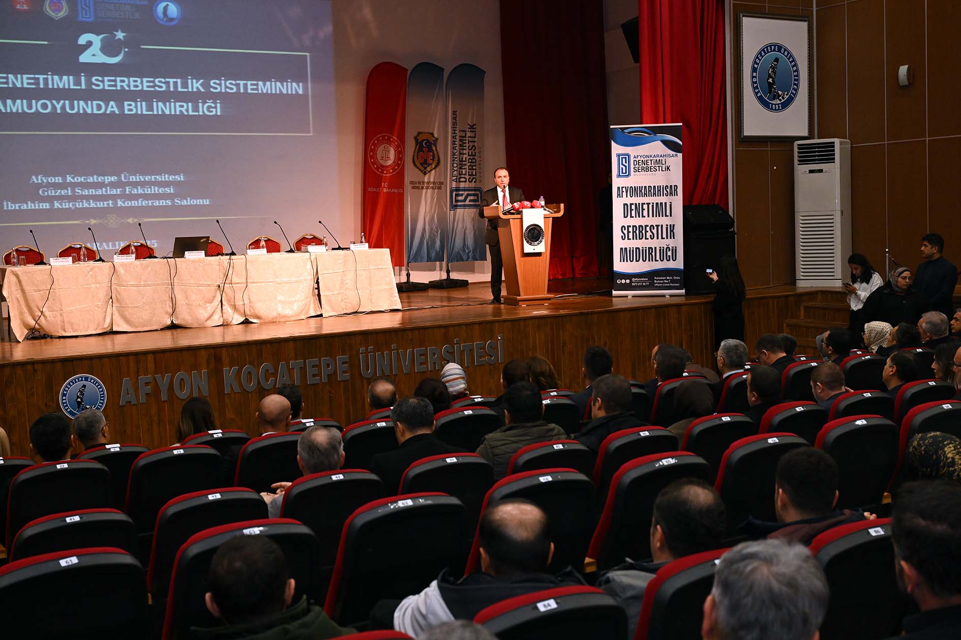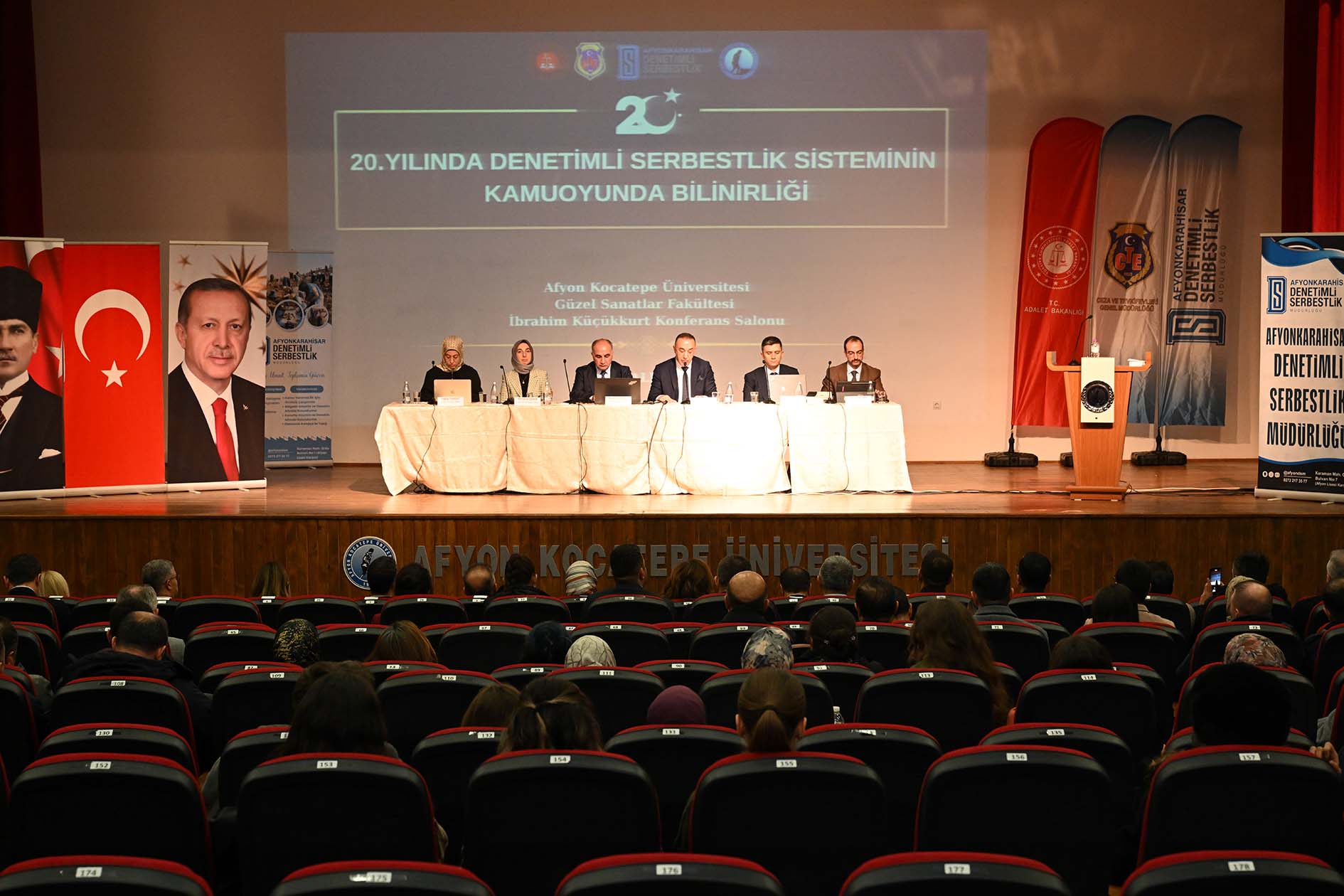 Afyon Kocatepe Üniversitesi (AKÜ), Afyonkarahisar Cumhuriyet Başsavcılığı ve Afyonkarahisar Denetimli Serbestlik Müdürlüğü iş birliğinde Türk adalet sistemine entegrasyonunun 20. yılı geride kalan Denetimli Serbestlik uygulamasının hukuki, sosyolojik ve toplumsal etkilerinin ele alındığı “20. Yılında Denetimli Serbestlik Sisteminin Kamuoyunda Bilinirliği” paneli düzenlendi.