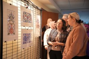 Açılışta sergi hakkında konuşan Doç. Dr. Şeyda Algaç, Tezhip Atölyesi dersi kapsamında hazırlanan çalışmalardaki desenlerin İznik kaynaklı olduğunu ve öğrenciler tarafından yeniden değerlendirildiğini ifade etti. Dekan Prof. Dr. Okuyucu’nun sergide emeği geçen öğrencilere ve dersin yürütücüsü Doç. Dr. Şeyda Algaç’a teşekkür etmesine müteakip, öğrencilere belgeleri takdim edildi.