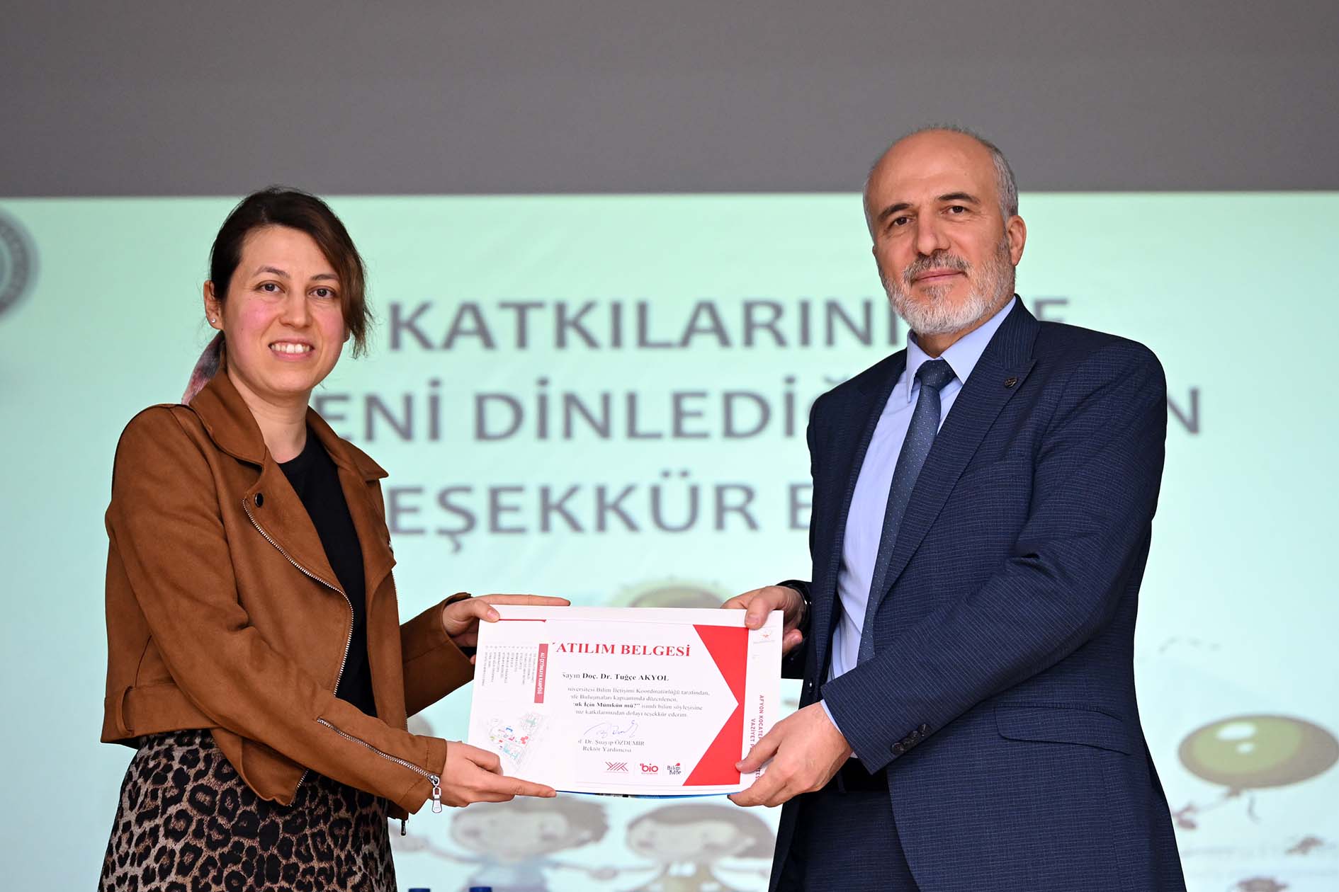 Doç. Dr. Tuğçe Akyol, sunumunda katılım hakkının çocuklara verilen bir ödül değil, doğuştan gelen bir hak olduğunu söyledi. “Çocuk Hakları Sözleşmesi” ve ulusal mevzuatlardan örnekler veren Akyol, “Çocukların karar verme süreçlerinde aktif yer alması ve yetişkinlerin onların görüşlerini dikkate alması önemli” dedi.  Akyol, aile temelli müdahale programlarının çocukların ve ailelerin görüşleri alınarak düzenlendiğinde ve bunların etkilerinin belirlenmiş olduğunda çocukların katılım haklarının etkili bir şekilde desteklenebileceğini ifade etti. Ailelerin ve eğitimcilerin sıklıkla düştüğü hatalara ilişkin bilgiler veren Akyol, “Aşırı korumacı tavır, çocukların ifade özgürlüğünü kısıtlayabilir” dedi.  Akyol,  “Katılım, çocuğun her dediğini yapmak demek değildir; çocukla birlikte düşünmek demektir. Bir çocuk konuşamıyor olabilir ancak bu onun bir görüşü olmadığı anlamına gelmez. İşaret dili, jestler, mimikler veya dijital araçlar da birer ifade biçimidir. Bazen sessizlik bile bir katılım tercihidir. Fiziksel olarak bir ortamda bulunmak, o çocuğun gerçekten sürece katıldığı anlamına gelmez. Çocuklar kararların konusu değil, öznesi olmalıdır” diye konuştu.