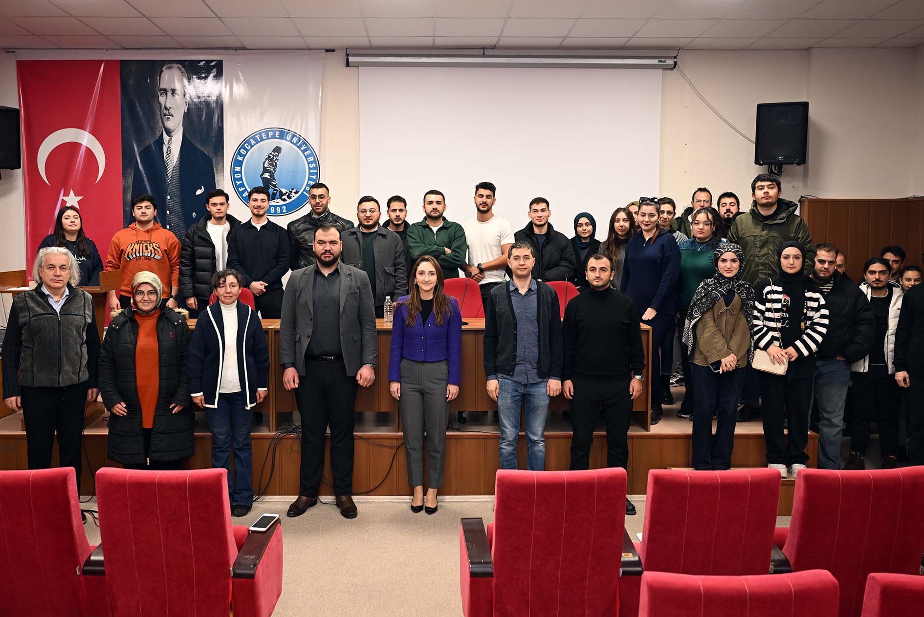 Prof. Dr. Sabri Bektöre Konferans Salonunda düzenlenen konferansa; İİBF Dekan Yardımcısı Dr. Öğretim Üyesi Hale Fulya Kaya ile birlikte akademik personel ve öğrenciler katıldı. “Mezunlar ile Kariyer Söyleşisi” etkinliğine konuk olan AKÜ mezunu ve Mars Lojistik Yurt İçi Dağıtım Kanalları (YDK) Operasyon Uzmanı Ahmet Enes Yılmazer, öğrencilere iş hayatındaki deneyimlerini, lojistik sektöründeki gelişmeleri ve kariyer planlamasında dikkat edilmesi gereken hususları paylaştı.2024 yılında Uluslararası Ticaret ve Finansman Bölümünden mezun olduğunu ve halihazırda tezli yüksek lisans eğitimine devam ettiğini belirtti.
