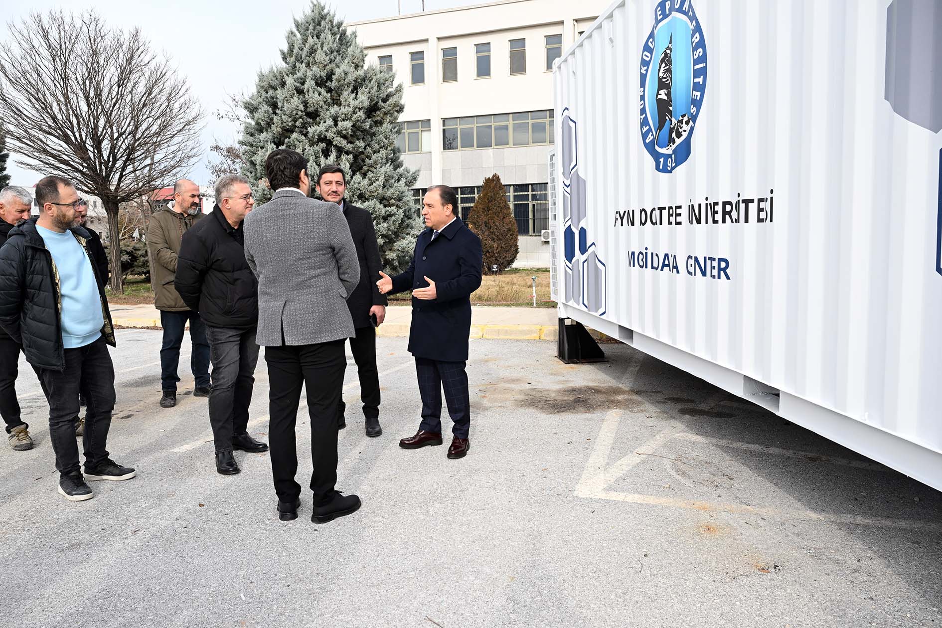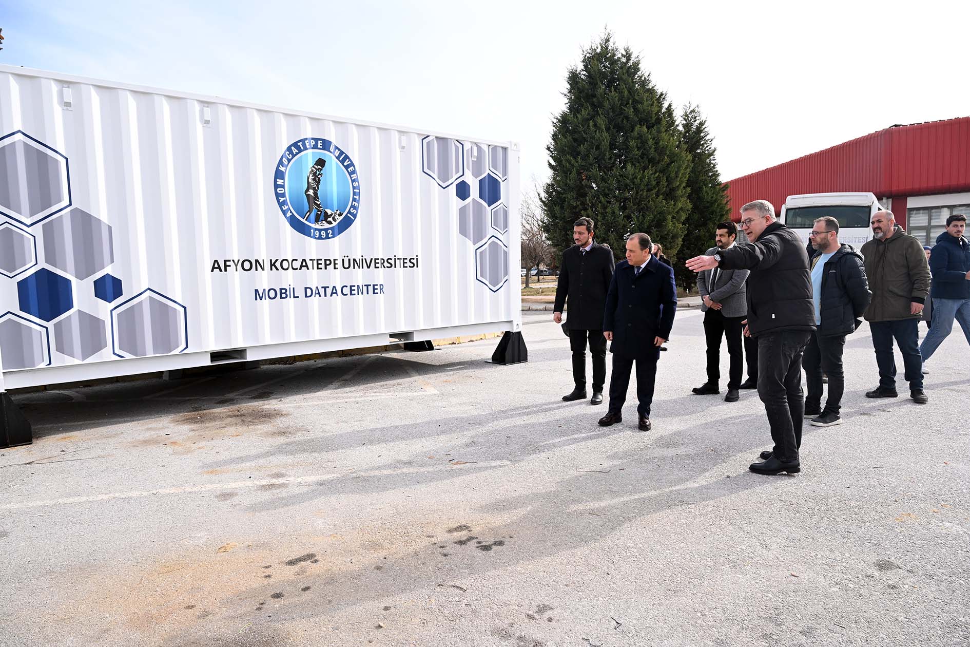 Rektör Prof. Dr. Mehmet Karakaş; deprem, yangın, sabotaj gibi olağanüstü durumların kurumların bilgi sistemlerinde hizmet kesintisine yol açabildiğini belirterek, “Bu tür senaryolarda Üniversitemizin ağ ve sistemlerinin, farklı bir lokasyonda konumlanan yedek altyapı üzerinden yeniden devreye alınmasını sağlayan Felaket Kurtarma Merkezimizi kurmuş ve hizmete almış bulunmaktayız. FKM’nin mobil yapısı sayesinde olası afet durumlarında verilerin korunmasının yanı sıra mobilize biçimde hizmet sunabilmesi nedeniyle kesintisiz hizmet verme imkânına kavuşmuş durumdayız” dedi. Afyonkarahisar’ın deprem kuşağında yer aldığına işaret eden Karakaş, dijital varlıkların güvenliği ve iş sürekliliğinin kurumsal açıdan kritik önemde olduğunu kaydetti. Karakaş, FKM’nin kurumsal verilerin güvenli ve kesintisiz biçimde saklanması, olası afet koşullarında hızlı geri dönüş ve iş sürekliliğinin sağlanması hedeflerine hizmet ettiğini de sözlerine ekledi.