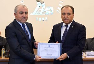 AKÜ akademik birimlerindeki akreditasyon sürecinde gösterdikleri liderlik ve özverili çalışmalarından dolayı Fen Edebiyat Fakültesi Dekanı Prof. Dr. Hüseyin Koçak, Kimya Bölüm Başkanı Prof. Dr. Ömer Hazman, Tarih Bölüm Başkanı Prof. Dr. Gürsoy Şahin, Mühendislik Fakültesi Dekanı Prof. Dr. İsmail Zorluer, Biyomedikal Mühendisliği Bölüm Başkanı Prof. Dr. Levent Özcan, İnşaat Mühendisliği Bölüm Başkanı Prof. Dr. Gökhan Görhan, Spor Bilimleri Fakültesi Dekanı ve Beden Eğitimi ve Spor Öğretmenliği Bölüm Başkanı Prof. Dr. Yücel Ocak, Turizm Fakültesi Dekanı ve Turizm Rehberliği Bölüm Başkanı Prof. Dr. Elbeyi Pelit, Gastronomi ve Mutfak Sanatları Bölüm Başkanı Prof. Dr. Mustafa Sandıkcı, Turizm İşletmeciliği Bölüm Başkanı Prof. Dr. Ahmet Baytok ile Veteriner Fakültesi Dekanı Prof. Dr. Turan Civelek’e teşekkür belgeleri AKÜ Rektörü Prof. Dr. Mehmet Karakaş tarafından verildi. FEDEK tarafından 2025 yılında ilk kez genel değerlendirmeleri yapılan Fen Edebiyat Fakültesi Matematik, Moleküler Biyoloji ve Genetik ile Sosyoloji programlarının Bölüm Başkanlarına da AKÜ Senatosu huzurunda teşekkür belgesi verildi. Rektör Karakaş, Matematik Bölüm Başkanı Prof. Dr. Mustafa Kemal Yıldız, Moleküler Biyoloji ve Genetik Bölüm Başkanı Prof. Dr. Ahmet Serteser ve Sosyoloji Bölüm Başkanı Prof. Dr. Hüseyin Koçak’ı, tebrik ederek teşekkür belgelerini takdim etti.