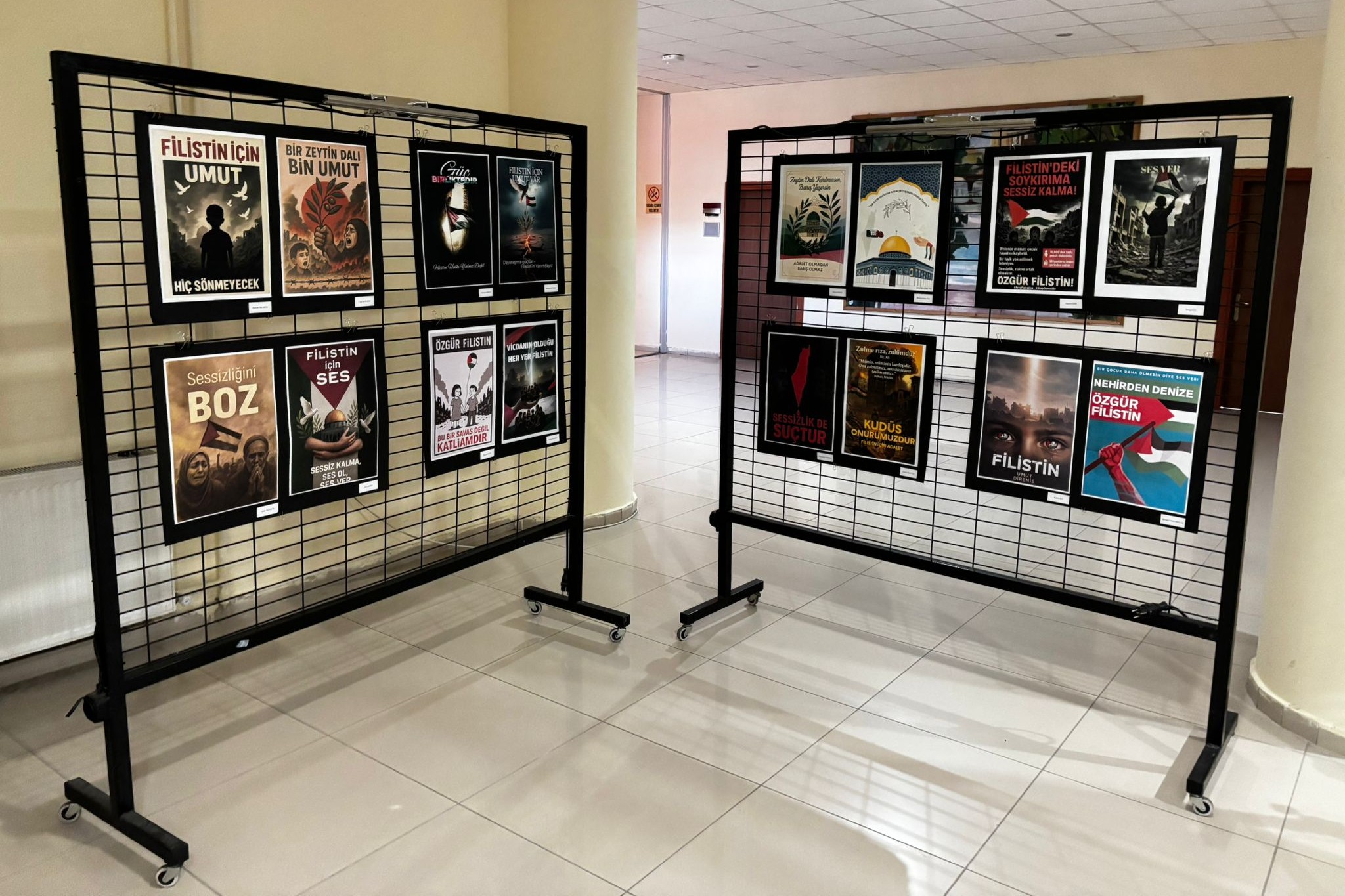 Afyon Kocatepe Üniversitesi (AKÜ) İç Mimarlık ve Çevre Tasarımı Kulübü tarafından 2025 yılı Ekim ayında AKÜ Güzel Sanatlar Fakültesi (GSF) bünyesinde açılan “Filistin için Empati” isimli afiş sergisi, 2025-2026 akademik yılı, güz yarıyılı boyunca AKÜ Ahmet Necdet Sezer Kampüsündeki farklı birimler içerisinde yer alan 13 ayrı noktada sergilendi.