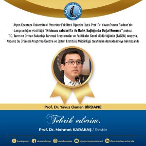 Afyon Kocatepe Üniversitesi (AKÜ) Veteriner Fakültesi Öğretim Üyesi Prof. Dr. Yavuz Osman Birdane’nin danışmanlığını yürüttüğü “Hibiscus Sabdariffa ile Balık Sağlığında Doğal Koruma” projesi, Tarım ve Orman Bakanlığı Tarımsal Araştırmalar ve Politikalar Genel Müdürlüğünün (TAGEM) onayıyla, Akdeniz Su Ürünleri Araştırma Üretme ve Eğitim Enstitüsü Müdürlüğü tarafından desteklenmeye hak kazandı.