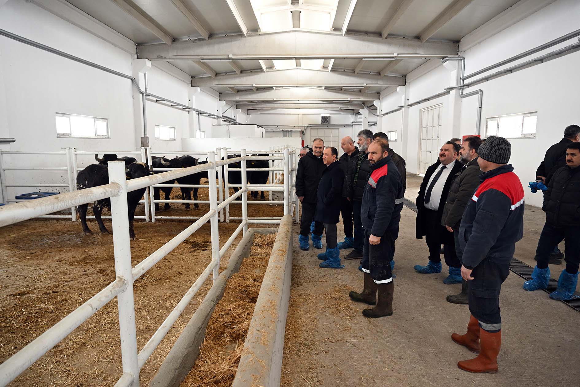 Karakaş Modern Manda Barınağı Tesisini, Küçükbaş Araştırma ve Uygulama Ağılını, Çiftlik bünyesine kazandırılan mandaları, yeni doğum yapan hayvanları ve Afyonkarahisar İl Özel İdaresine teslimi yapılacak hayvanları yerinde inceleyerek Çiftlik Müdürü Prof. Dr. Mustafa Tekerli’den bilgiler aldı.