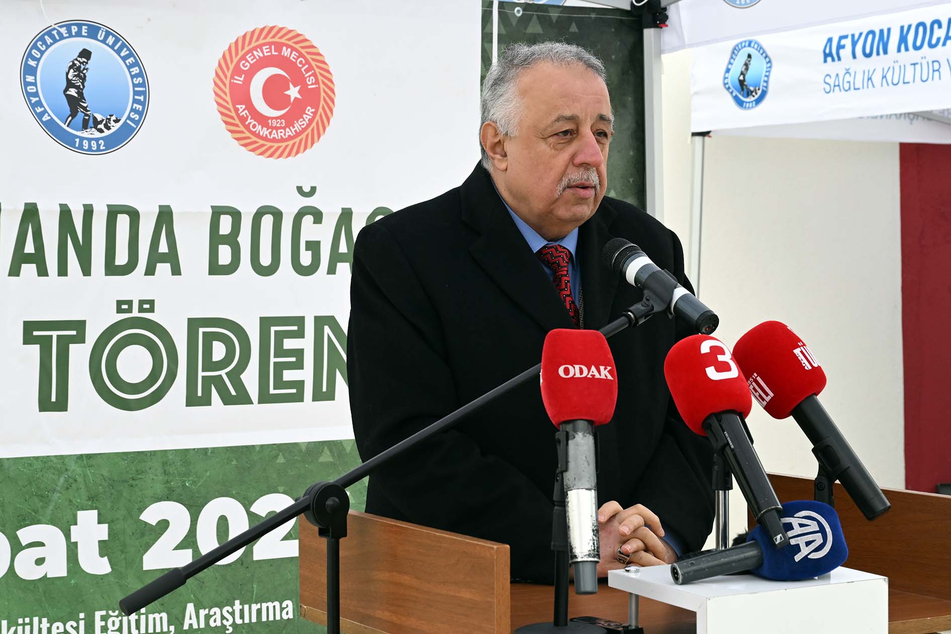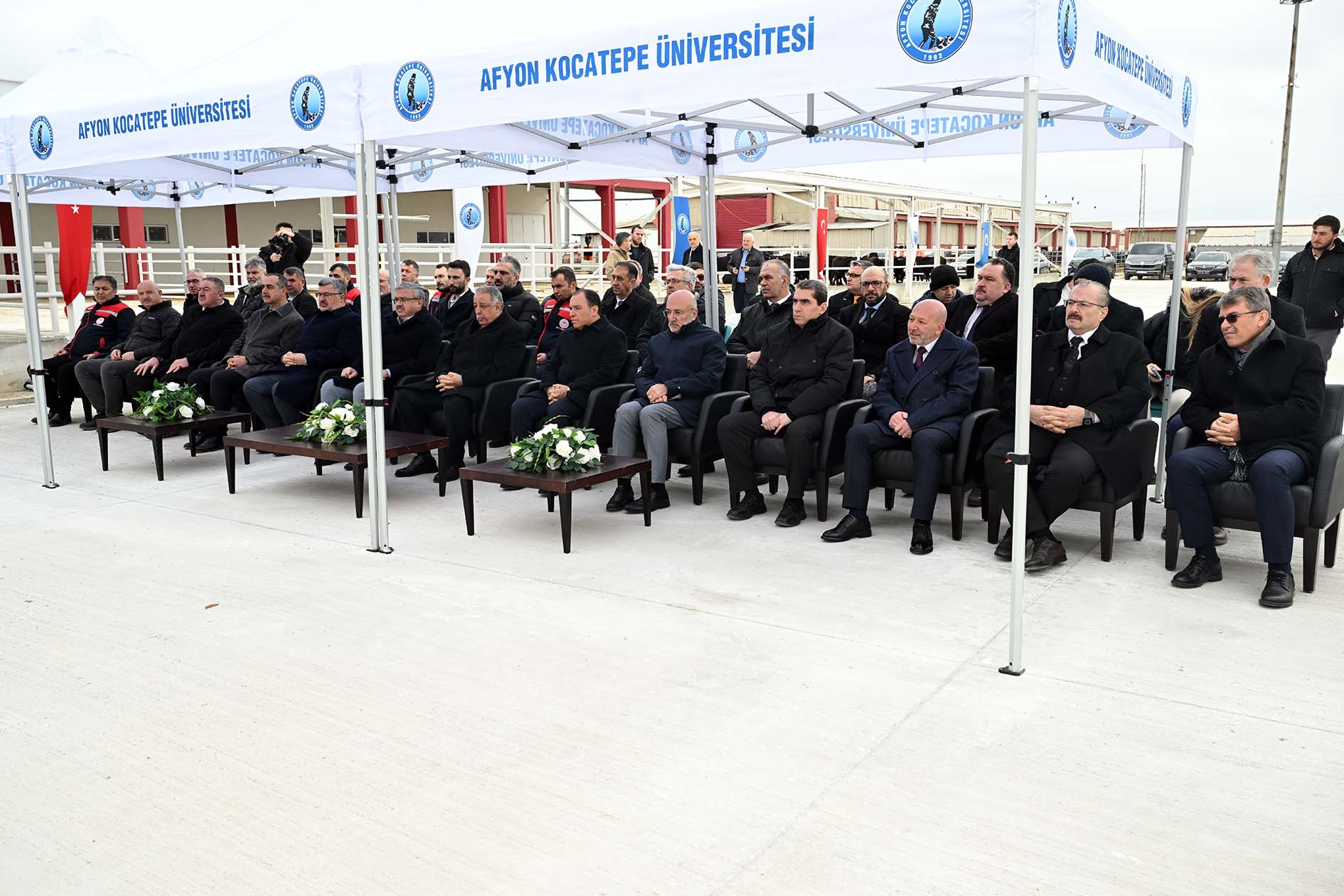 AKÜ Veteriner Fakültesi Eğitim, Araştırma ve Uygulama Çiftliğinde düzenlenen törene; Afyonkarahisar Vali Yardımcısı Celil Ateşoğlu, AK Parti Afyonkarahisar Milletvekilleri İbrahim Yurdunuseven ve Ali Özkaya, AKÜ Rektörü Prof. Dr. Mehmet Karakaş, Afyonkarahisar İl Genel Meclisi Başkanı Mehmet Siper, AKÜ Rektör Yardımcıları Prof. Dr. Şuayıp Özdemir ve Prof. Dr. Murat Peker, Afyonkarahisar Sağlık Bilimleri Üniversitesi Rektör Yardımcısı Prof. Dr. İbrahim Keleş, AK Parti Afyonkarahisar İl Başkanı Turgay Şahin, Afyonkarahisar Ticaret ve Sanayi Odası Meclis Başkanı Mustafa Ali Çelikten, Afyonkarahisar Ticaret Borsası Meclis Başkanı Ali Rıza Gürakar, Veteriner Fakültesi Dekan V. Prof. Dr. Zeki Gürler, Eğitim, Araştırma ve Uygulama Çiftliği Müdürü Prof. Dr. Mustafa Tekerli, Genel Sekreter Hasan Düzgün ile birlikte kurum, kuruluş ve sektör temsilcileri katıldı.