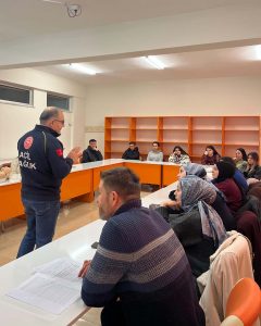 Öğrencilerin mesleki yetkinliklerini artırmak ve sektörel donanımlarını güçlendirmek amacıyla düzenlenen eğitim, Afyonkarahisar İl Sağlık Müdürlüğü eğitmenleri Dr. Onur Yerlikaya ile Acil Tıp Teknikeri Hasan Gümüş tarafından verildi.