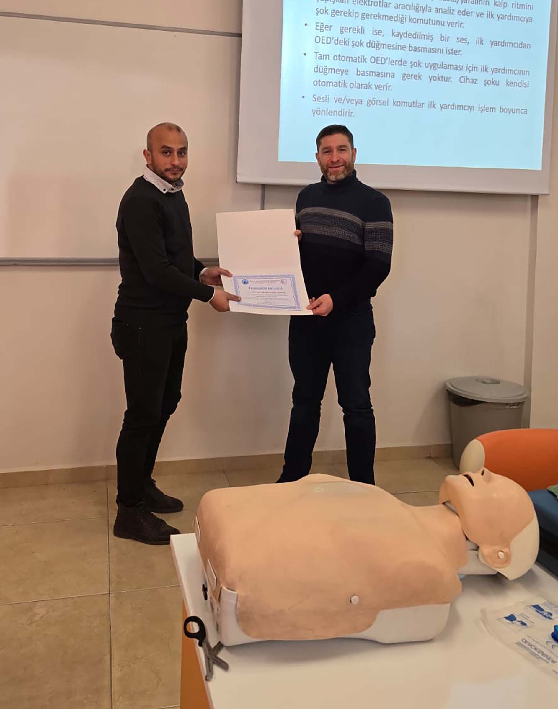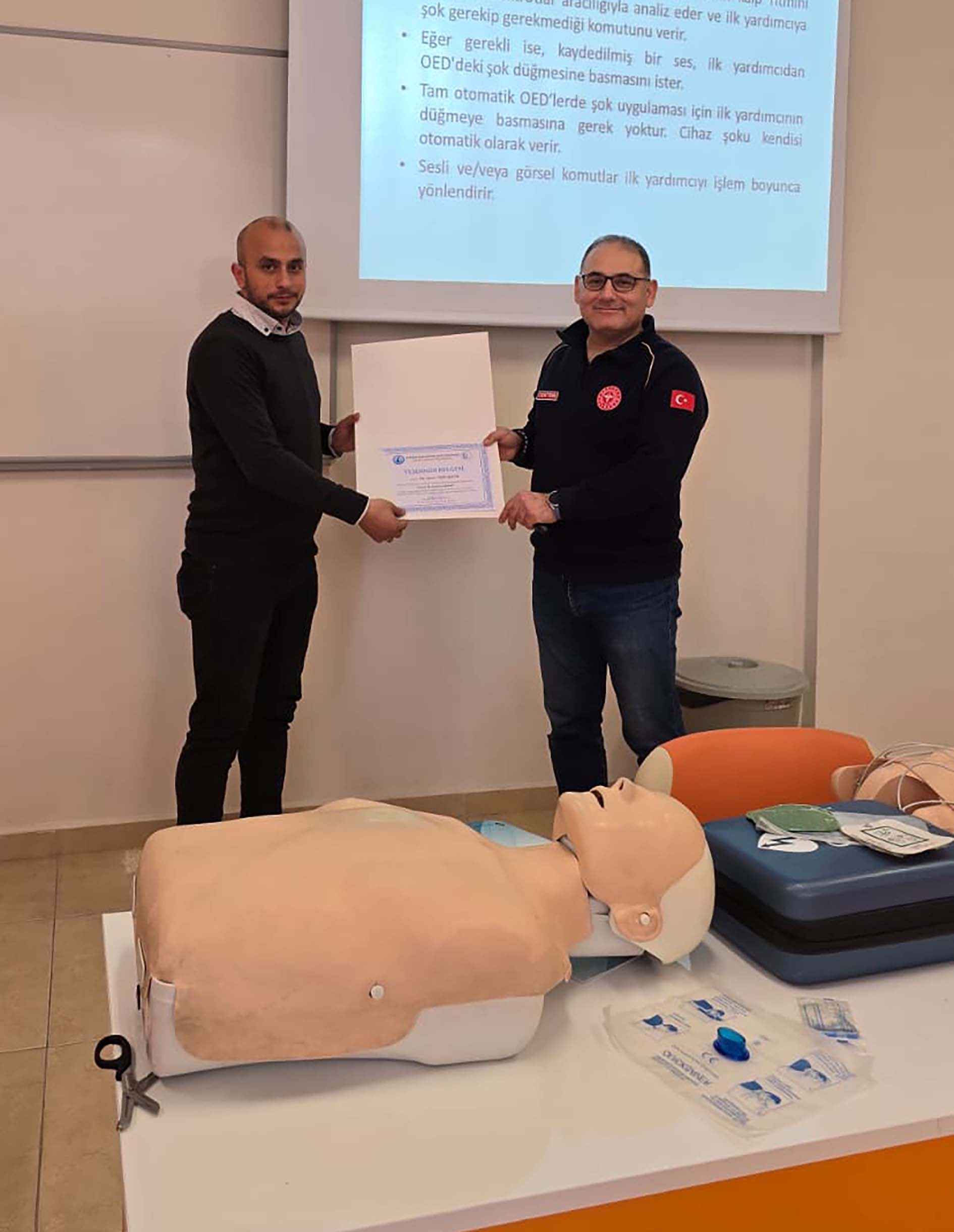 Program, Afyonkarahisar İl Sağlık Müdürlüğü eğitmenleri Dr. Onur Yerlikaya ve Acil Tıp Teknikeri Hasan Gümüş’e teşekkür belgelerinin takdim edilmesinin ardından sona erdi.