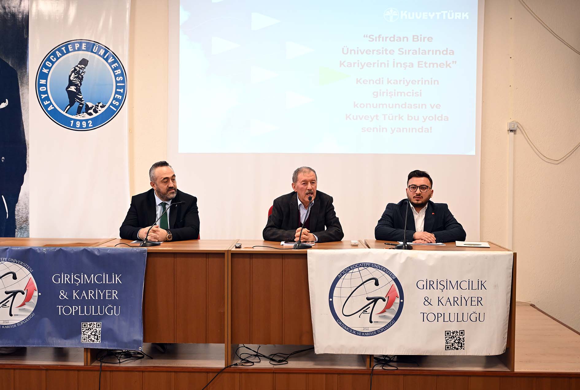 Afyon Kocatepe Üniversitesi (AKÜ) İktisadi ve İdari Bilimler Fakültesi (İİBF) İşletme Bölümü ile Girişimcilik ve Kariyer Topluluğu (GİKAT) tarafından “Katılım Bankacılığı ve Kariyer Konferansı” konferansı düzenlendi. Prof. Dr. Sabri Bektöre Konferans Salonunda düzenlenen konferansa; İİBF Dekanı Prof. Dr. Gökhan Demirtaş ile akademik personel ve öğrenciler katıldı.