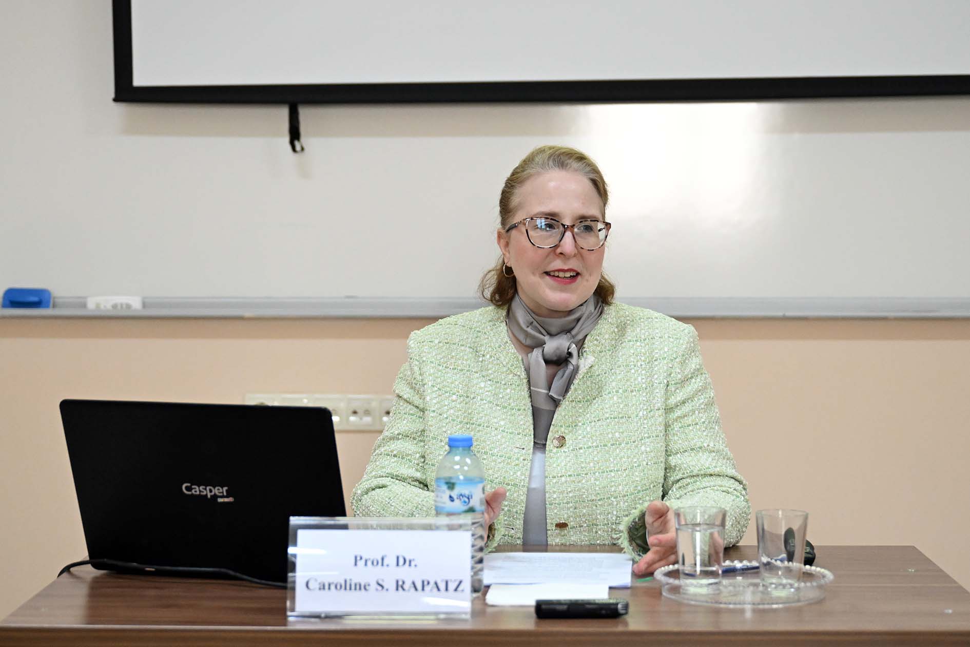 Afyon Kocatepe Üniversitesi (AKÜ) Hukuk Fakültesi tarafından düzenlenen, Prof. Dr. Caroline S. Rapatz’ın devletlerin egemenliği dışında kalan sınır ötesi alanlarda uygulanacak hukuka ilişkin değerlendirmelerde bulunduğu çalıştaya; Hukuk Fakültesi Dekanı Prof. Dr. İhsan Cemil Demir’in yanı sıra akademik personel ve lisansüstü öğrenciler katıldı.