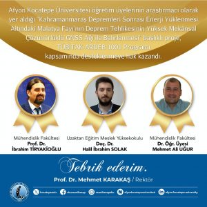 Afyon Kocatepe Üniversitesi (AKÜ) öğretim üyelerinin yer aldığı, Kahramanmaraş depremleri sonrası Malatya Fayı’ndaki enerji yüklenmesini ve deprem riskini inceleyecek proje, TÜBİTAK tarafından destek kapsamına alındı.