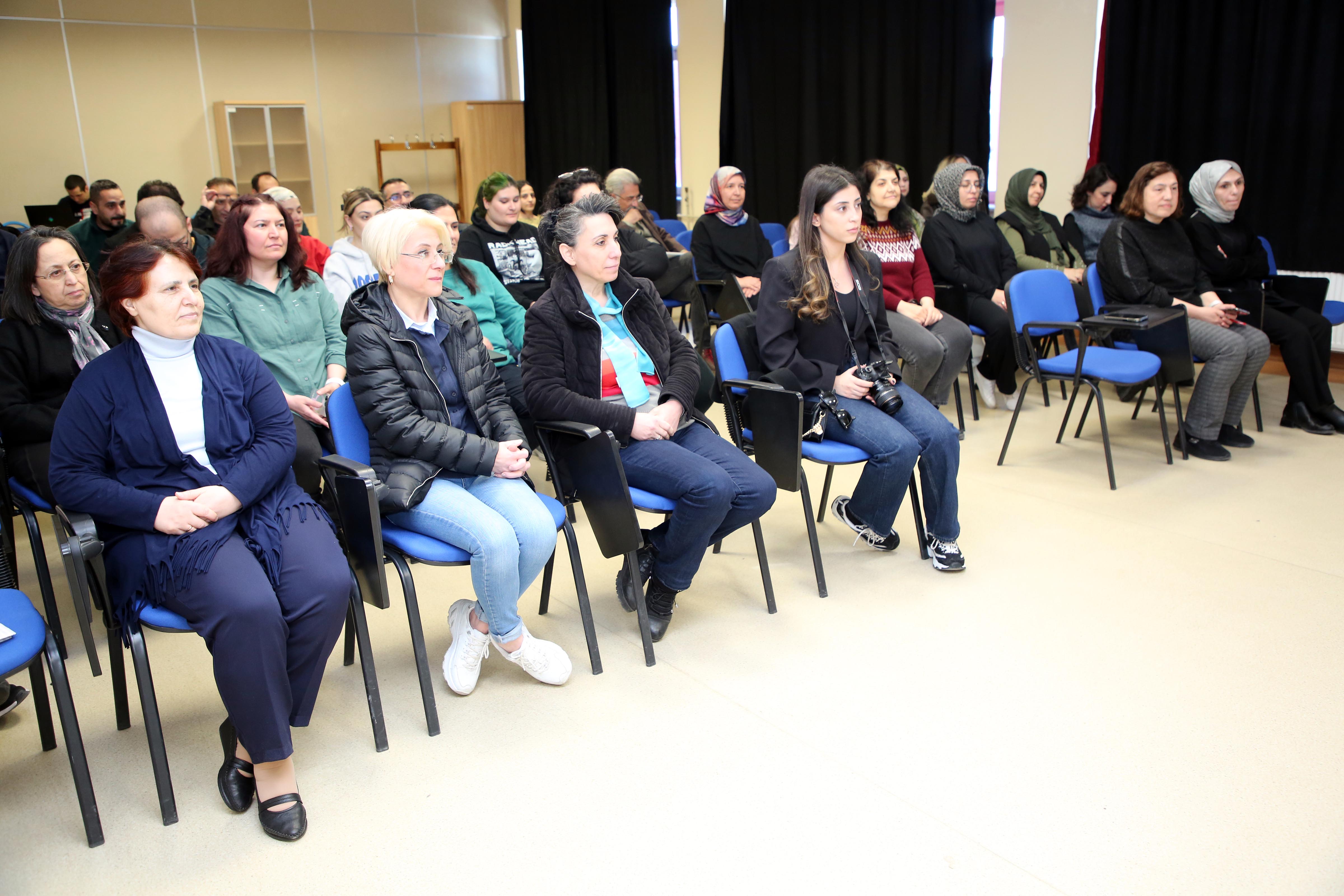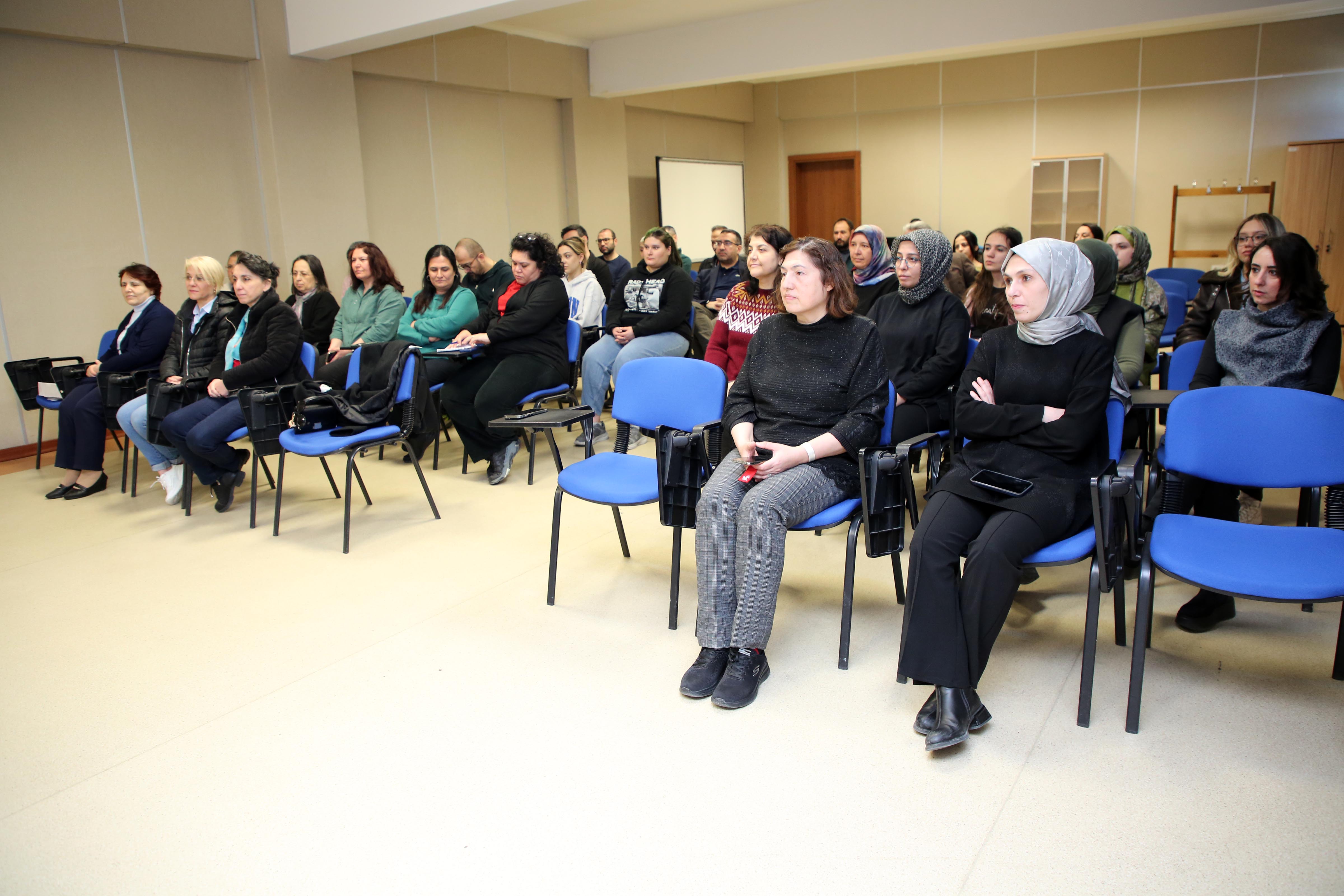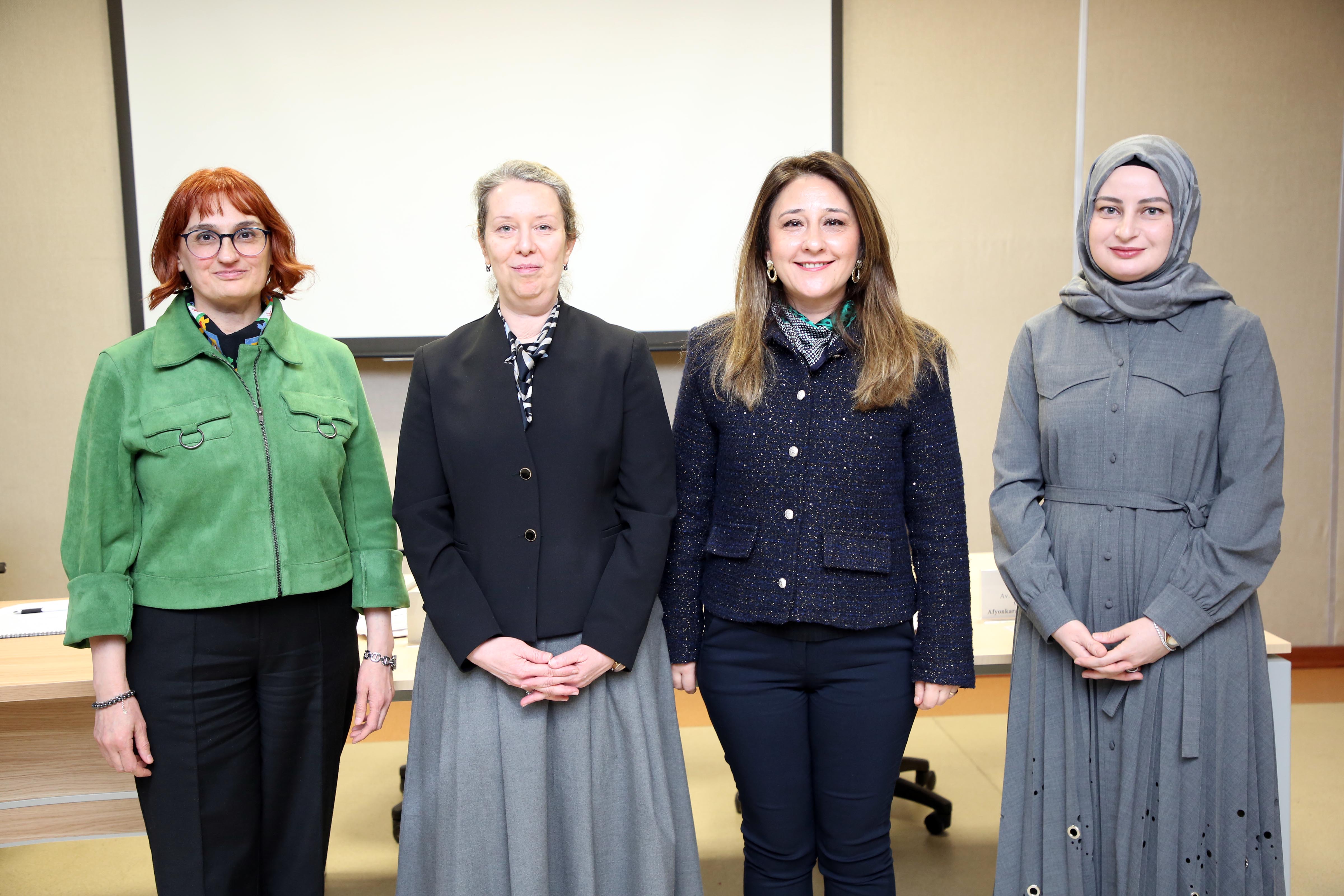 GSF Film İzleme Salonunda moderatörlüğünü GSF İç Mimarlık ve Tasarım Bölümü Arş. Gör. Merve Çiftçi’nin yaptığı panelde; Afyonkarahisar Baro Başkanı Av. Melahat İpek Yılmaz Göktürk ve AKÜ Personel Daire Başkanı Naciye Gülay Utkugün konuşmacı olarak yer aldı. Panele GSF Dekanı Prof. Dr. Şerife Ebru Okuyucu, Dekan Yardımcıları Dr. Öğretim Üyesi Sena Coşkun, fakülte sekreterleri, öğrenciler ile akademik ve idari personel katıldı.