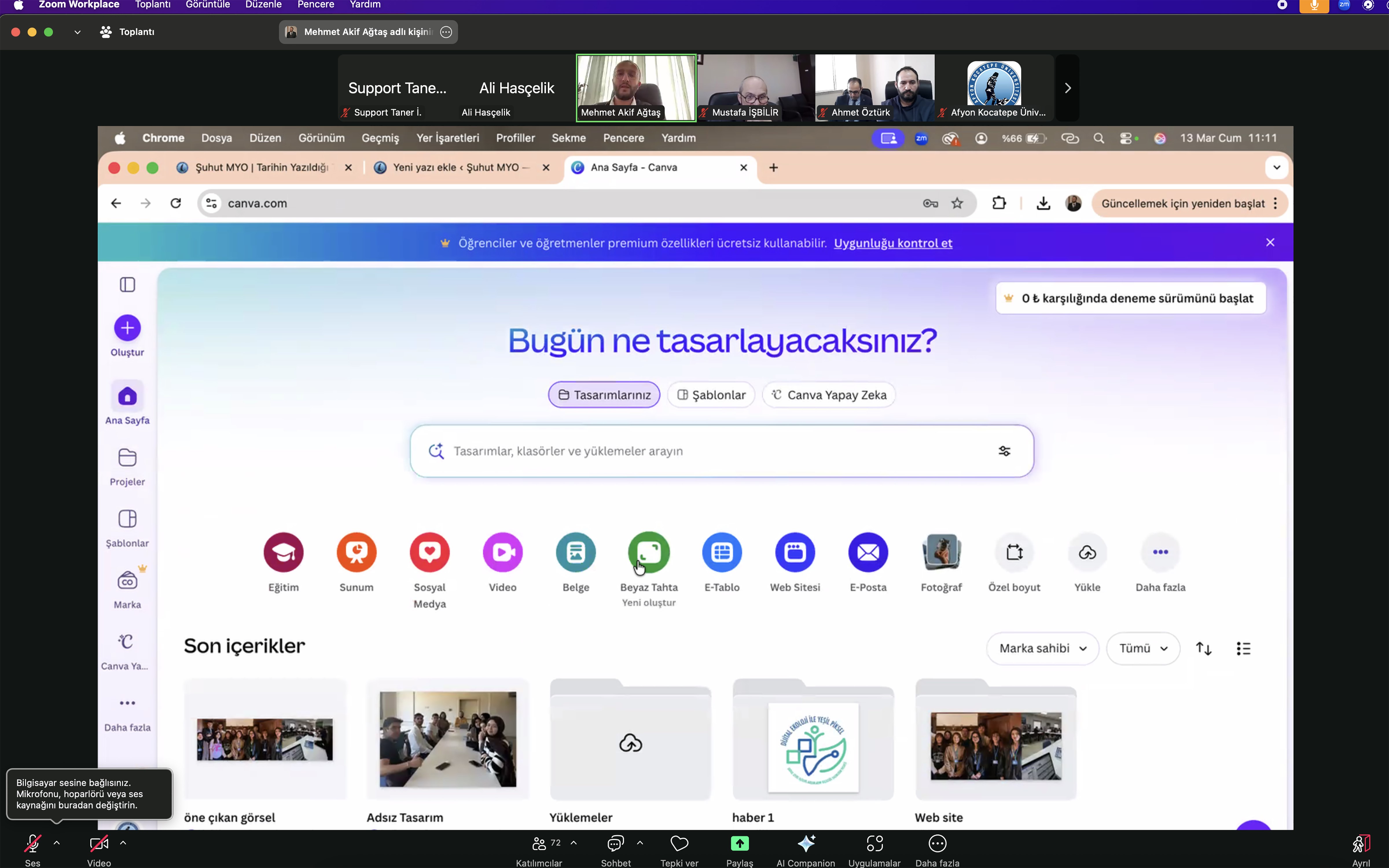 Afyon Kocatepe Üniversitesinde (AKÜ) WEB sayfası yöneticilerine yönelik çevrim içi “Canva ile Kurumsal WEB Tasarımı” eğitimi düzenlendi.