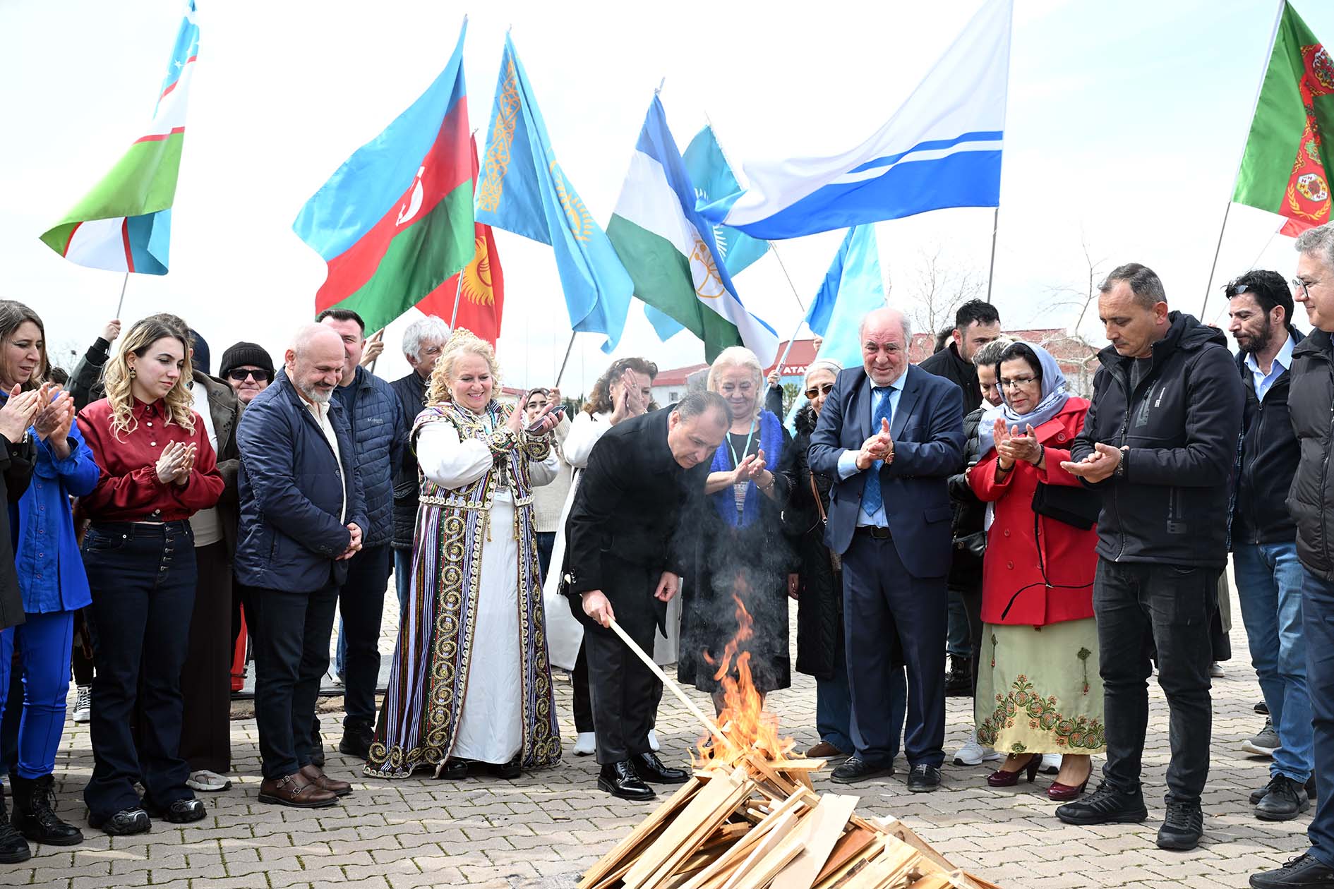 Program, AKÜ Rektörü Prof. Dr. Mehmet Karakaş’ın Nevruz Ateşi’ni yakmasının ardından Nevruz Ateşi üzerinden atlama ile devam etti. Programın açış konuşmasını yapan ASKEF Genel Başkanı Savaş Ünal, 41. Uluslararası Türk Dünyası Kültür ve Sanat Şöleni kapsamında Afyonkarahisar’daki etkinliklerin bir ayağını Afyon Kocatepe Üniversitesi ile gerçekleştirdiklerini söyledi. Ünal, “Bu etkinlik, Türk için son derece önemlidir. Türk bayrakları aslında birdir ve tek bir bayrağı temsil eder. Bu durum bizim için büyük bir anlam taşımaktadır. Çünkü Türk tarihi, 4 bin 663 yıl önce Ergenekon’da yazılmıştır. Bizler, dağları delerek ve demiri eriterek ortaya çıkmış bir milletiz. Bu nedenle Türk tarihi, dünyanın en önemli tarihlerinden biri olarak kabul edilmektedir” dedi. AKÜ ve STK’lar olarak güzel bir program hazırladıklarını ifade eden Ünal, “Bulgaristan, Kazakistan, Kırgızistan, Azerbaycan, Fransa ve daha birçok ülkeden gelen sanatçı ve şair dostlarımızı sizlerle buluşacak. Üniversite gençlerimiz bizim geleceğimizdir; bu yüzden onlara büyük önem veriyoruz. Türk dünyasına ve Turan’a sahip çıkmaya devam etmelerini temenni ediyoruz” diye konuştu.