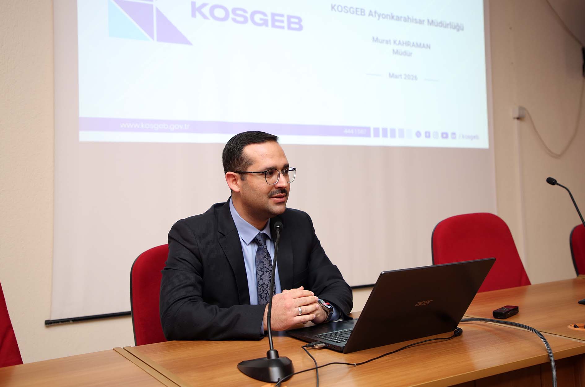 Afyon Kocatepe Üniversitesi (AKÜ) Uluslararası Ticaret ve Finansman (UTF) Bölümü tarafından “Girişimcilikte KOSGEB’in Yeri” konulu seminer düzenlendi.