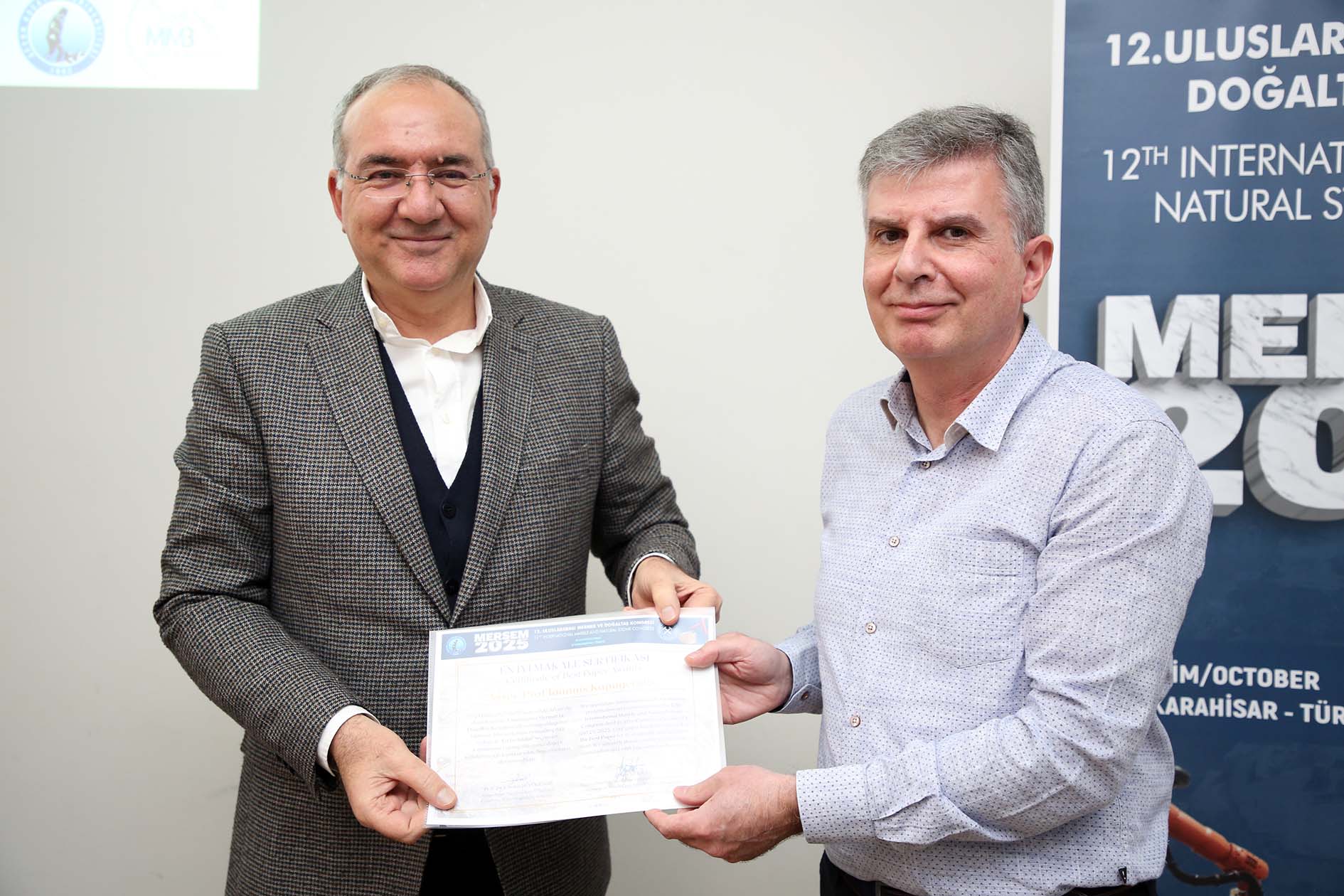 Konferans, Prof. Dr. Ioannis Kapageridis’e MERSEM 2025’te kazandığı “En İyi Makale Ödülü” ve teşekkür belgelerinin takdimi ile sona erdi.