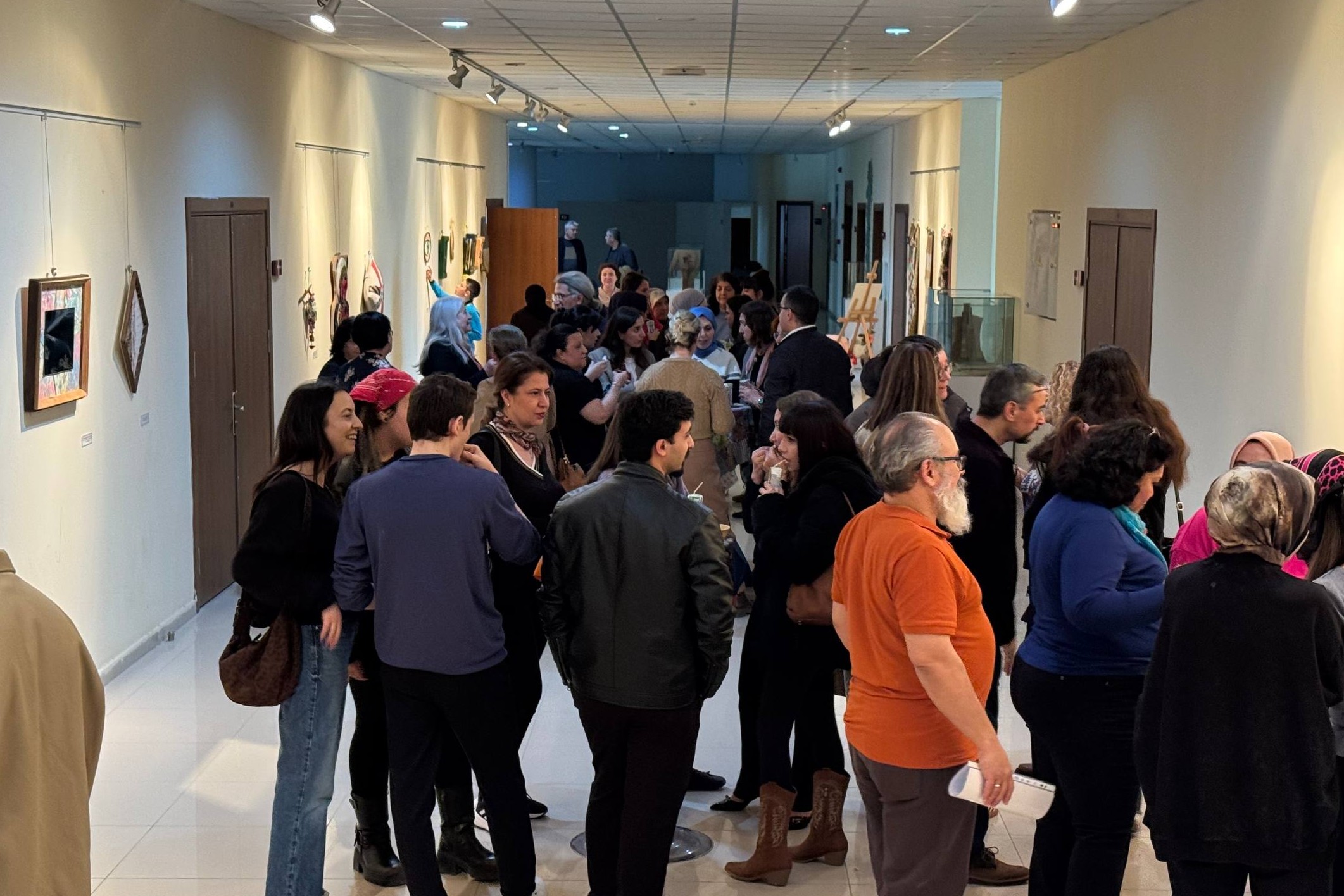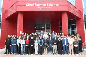 İMÇT Bölümü öğrencilerinin 2025-2026 Akademik Yılı Güz Yarıyılı ders çıktılarından oluşan “Bağlam-1” isimli karma sergi ise, GSF birinci katında açıldı. Sergi açılışında GSF ve İMÇT Bölüm Başkanı Prof. Dr. Şerife Ebru Okuyucu, Dekan Yardımcıları Dr. Öğretim Üyesi Sena Coşkun, Dr. Öğretim Üyesi Fevzi Nuri Kara, Bölüm Başkanları, GSF Danışma Kurulu üyesi Gülenay Yalçınkaya, öğretim elemanları ve öğrenciler yer aldı.