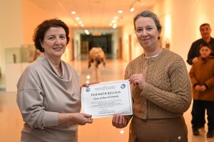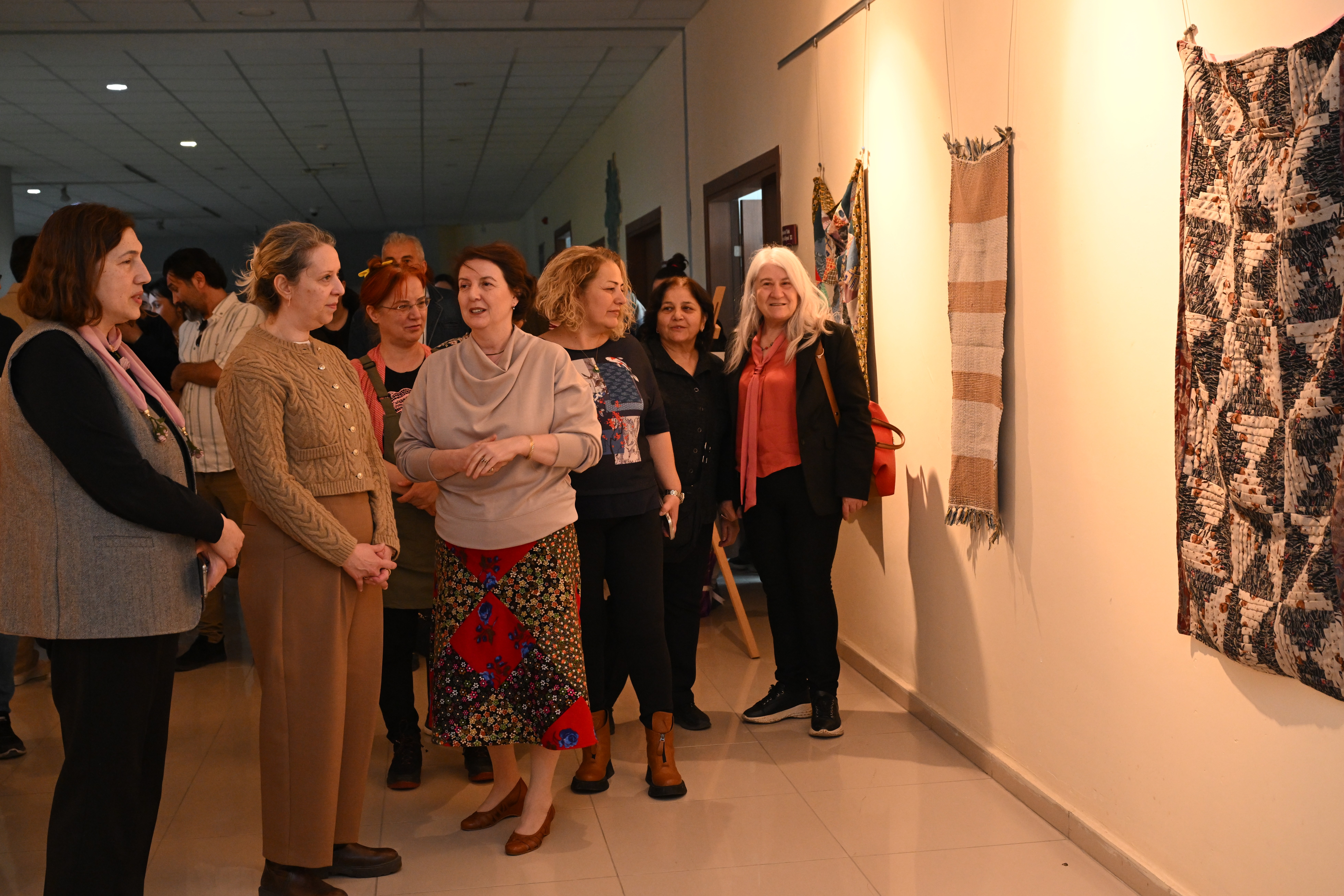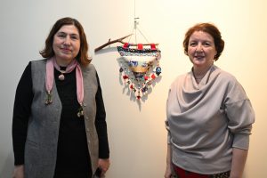 Fakülte binasında gerçekleştirilen sergilerden ilki GTS Bölümü son sınıf öğrencisi Gülhan Öztabak tarafından yürütülen “Geleneksel Sanatlarda Atık Kumaşın İleri Dönüşüm Malzemesi Olarak Kullanımının Araştırılması” başlıklı TÜBİTAK 2209-A projesi kapsamında açıldı.