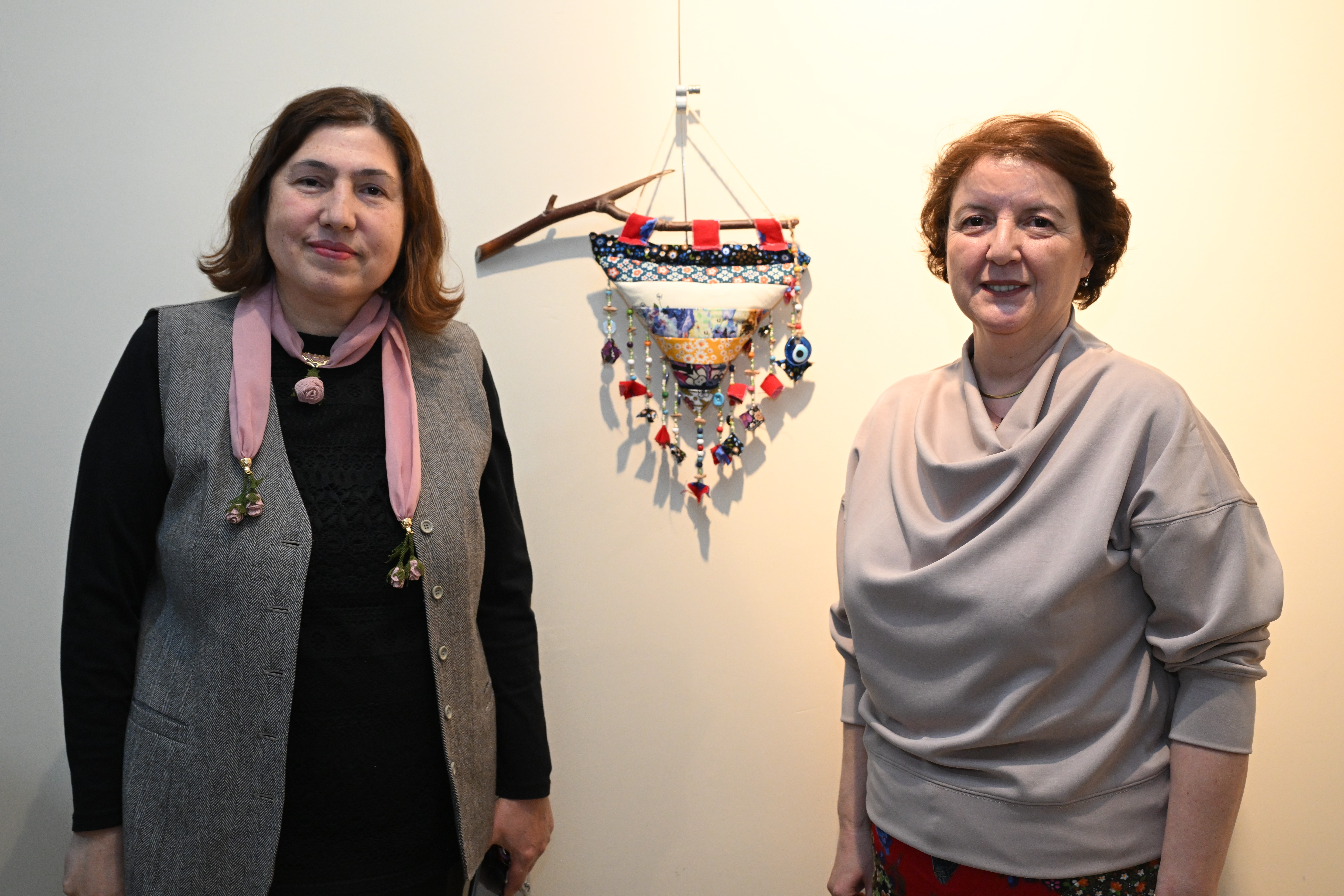 Sürdürülebilirlik konusunda farkındalık yaratmak amacıyla kumaş atıkları, fermuar, ayna, düğme, keçe, kilim ipleri, geçmişten gelen ve hatırası olan gelinlik parçaları, kot kumaşları, örtüler, danteller ve deri parçalarının yanı sıra ahşap kasnak ve dal parçaları kullanılarak dikiş, dokuma, örme, dövme keçe tekniği ve ebru sanatından yararlanılarak oluşturulan 24 adet çalışma, 10 Nisan tarihine kadar GSF zemin katında görülebilecek.