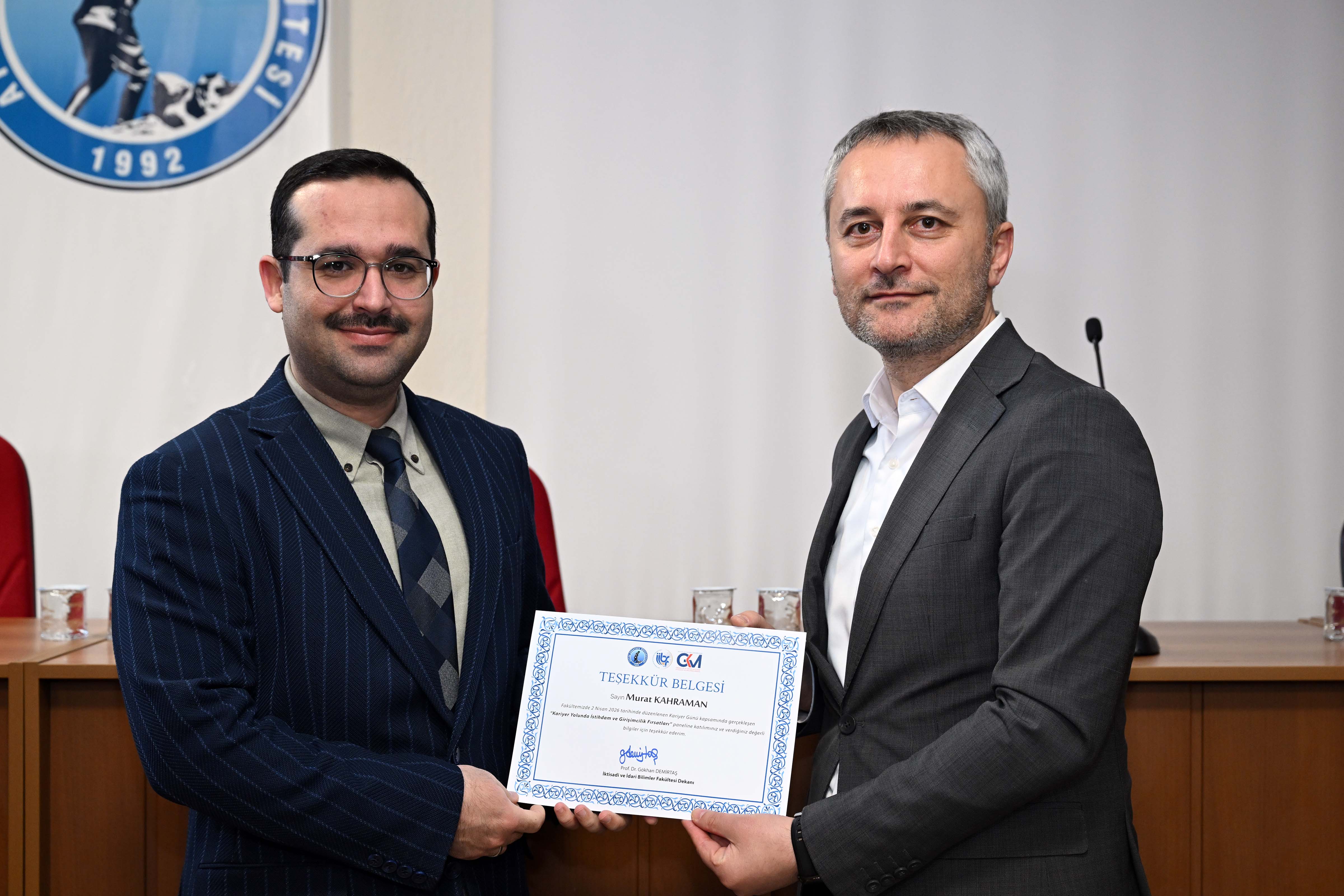 Devlet Denetleme Kurulu Baş Müfettiş ve AKÜ İİBF Maliye Bölümü 2006 mezunu Yasin Kulaksız da gerçekleştirdiği söyleşide KPSS A Grubu Kariyer Meslekleri hakkında öğrencilere bilgi verdi. Kulaksız, başarılı bir kariyer için net hedefler belirlemenin ve bu hedeflere yönelik ilerlemeyi düzenli olarak gözden geçirmenin kritik önemde olduğunu ifade etti. Kulaksız ayrıca İİBF’de aldığı eğitimin ve öğretim üyelerinin sağladığı rehberliğin kariyerindeki başarısında önemli bir rol oynadığını belirtti. Kulaksız, öğrencilerin bu süreçte sunulan imkânları etkin şekilde değerlendirmeleri gerektiğini de sözlerine ekledi.